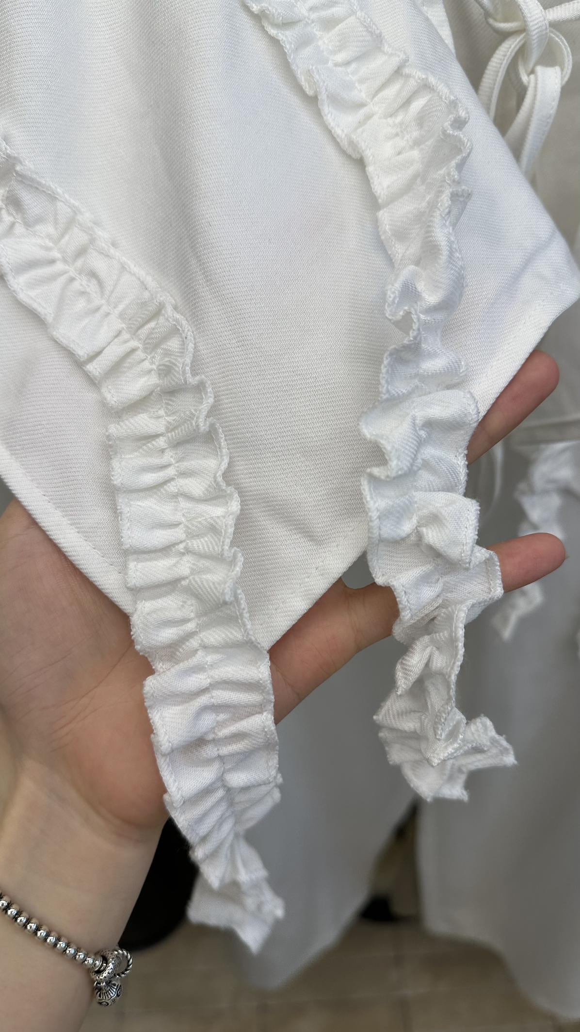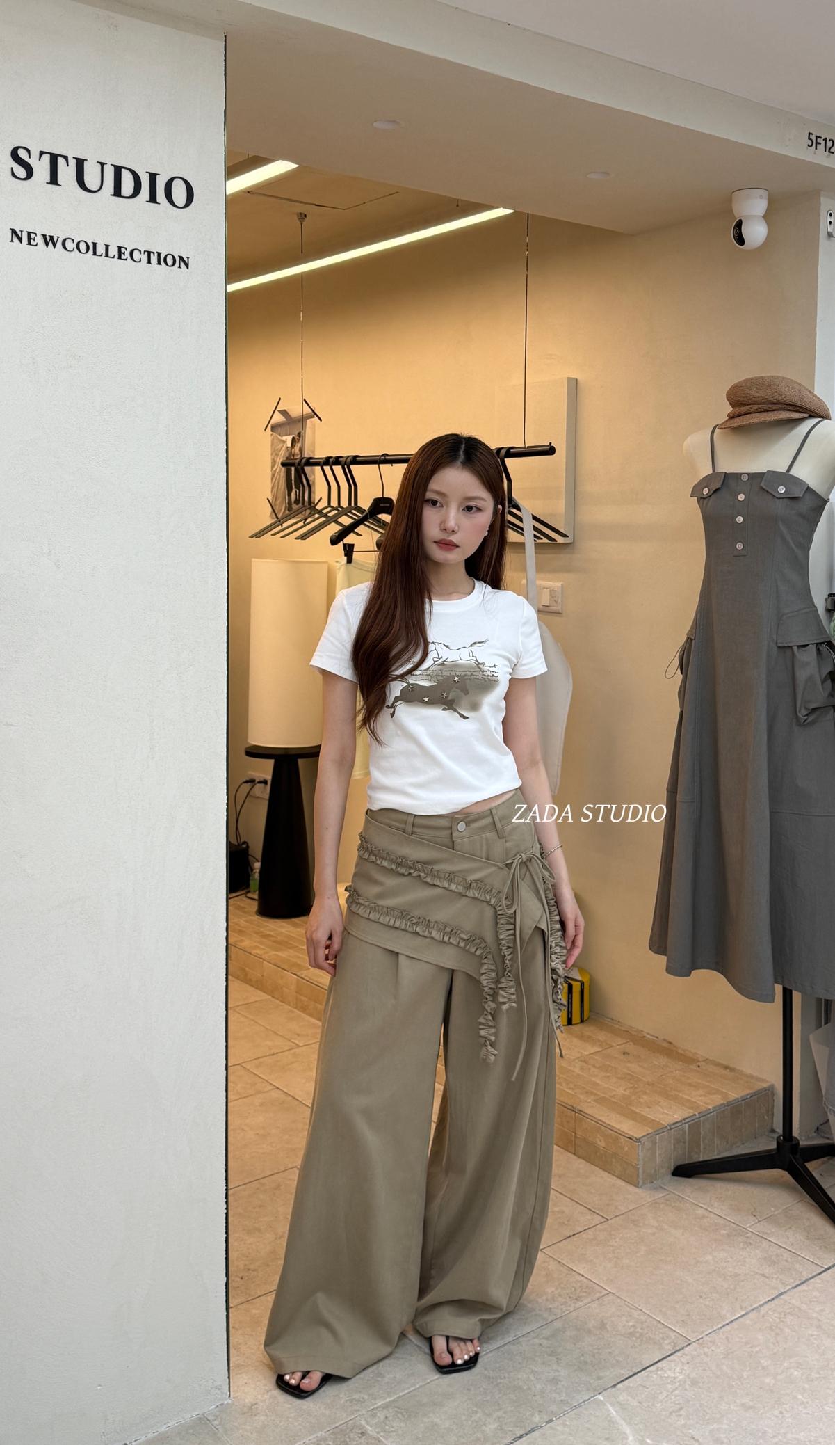 【C9331】好特別的屁簾~不規則木耳邊闊腿舒適休閒褲(配屁簾)(不含上衣)