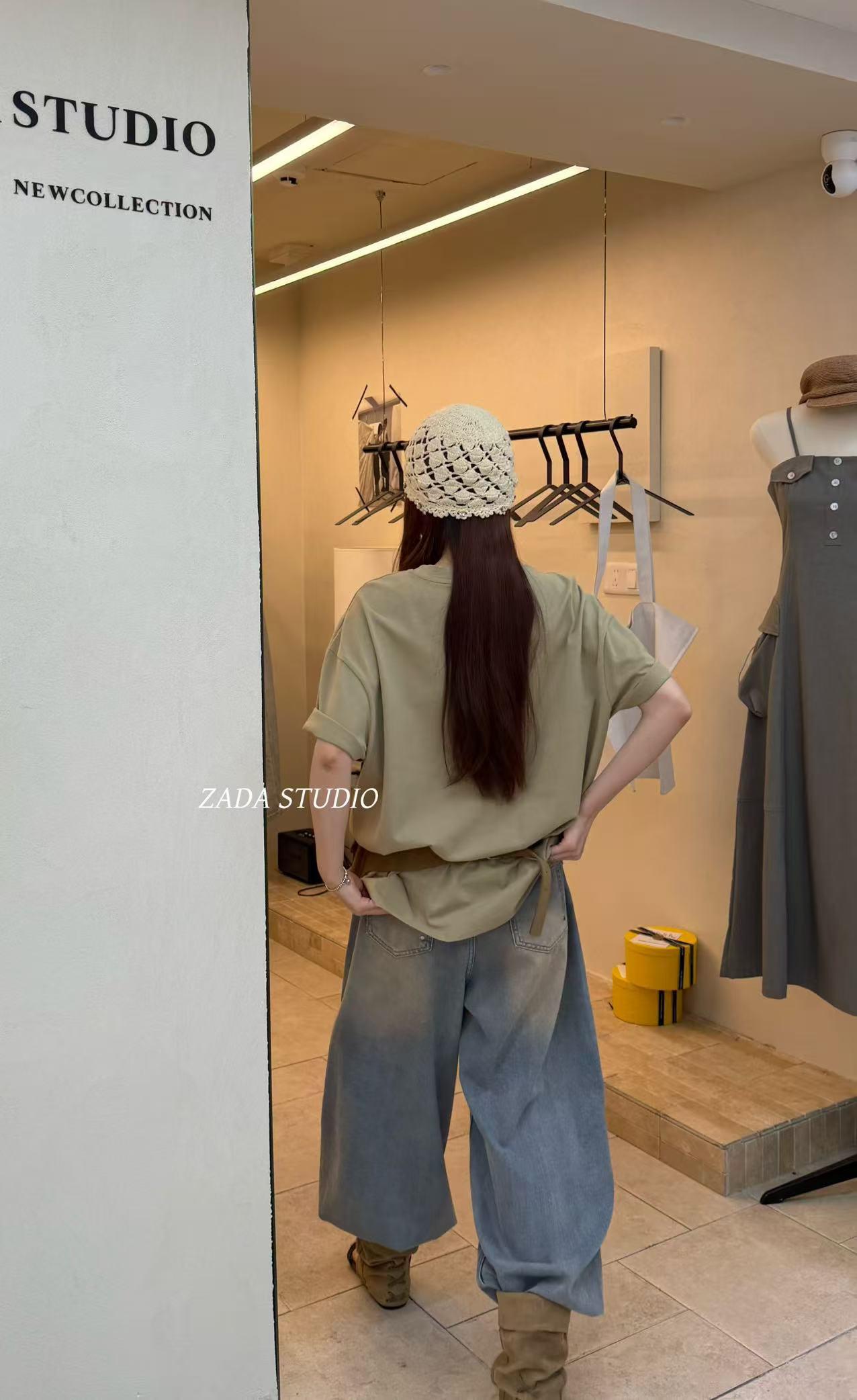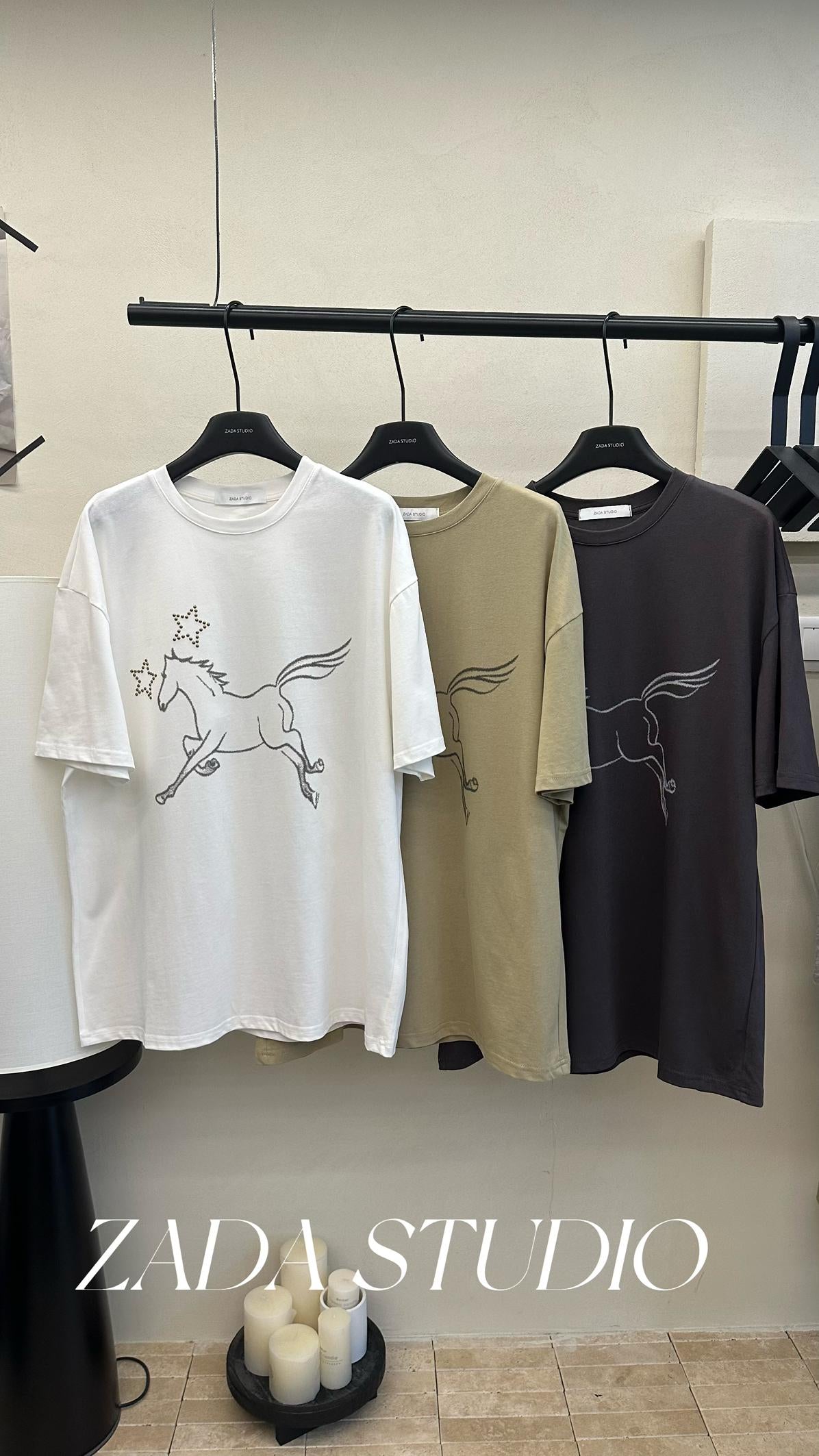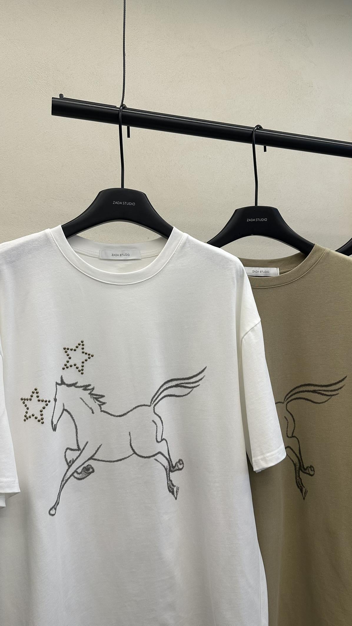 【C9333】夏日本命鬆弛T~燙鑽五角星線條小馬T短袖T恤(不配腰包)
