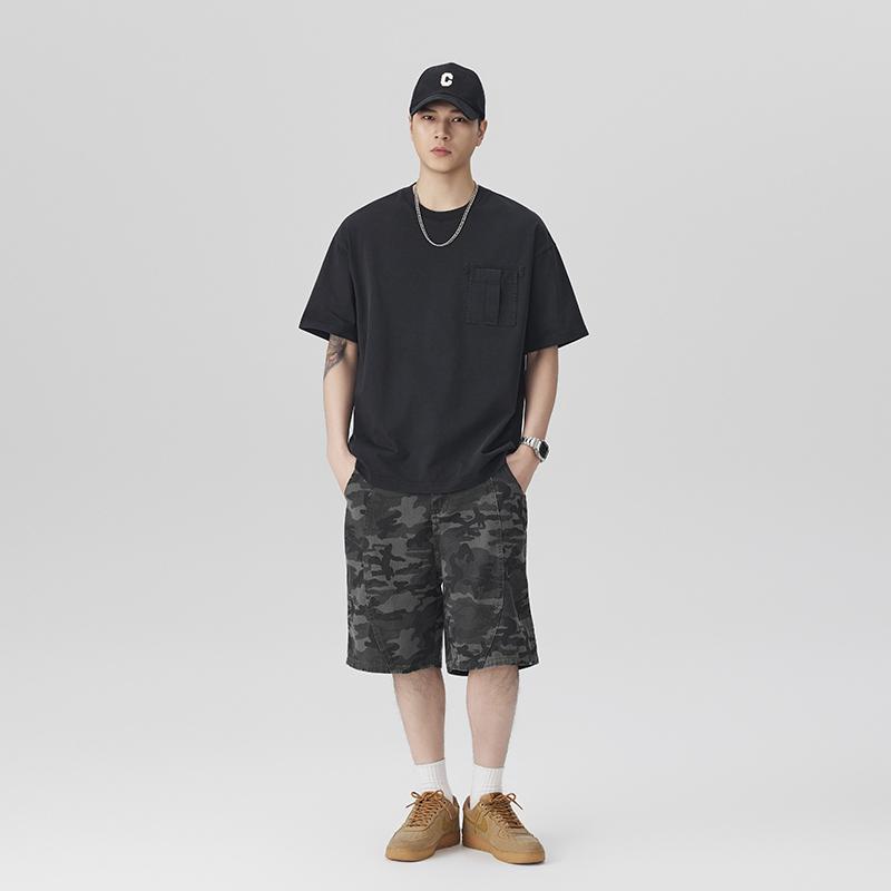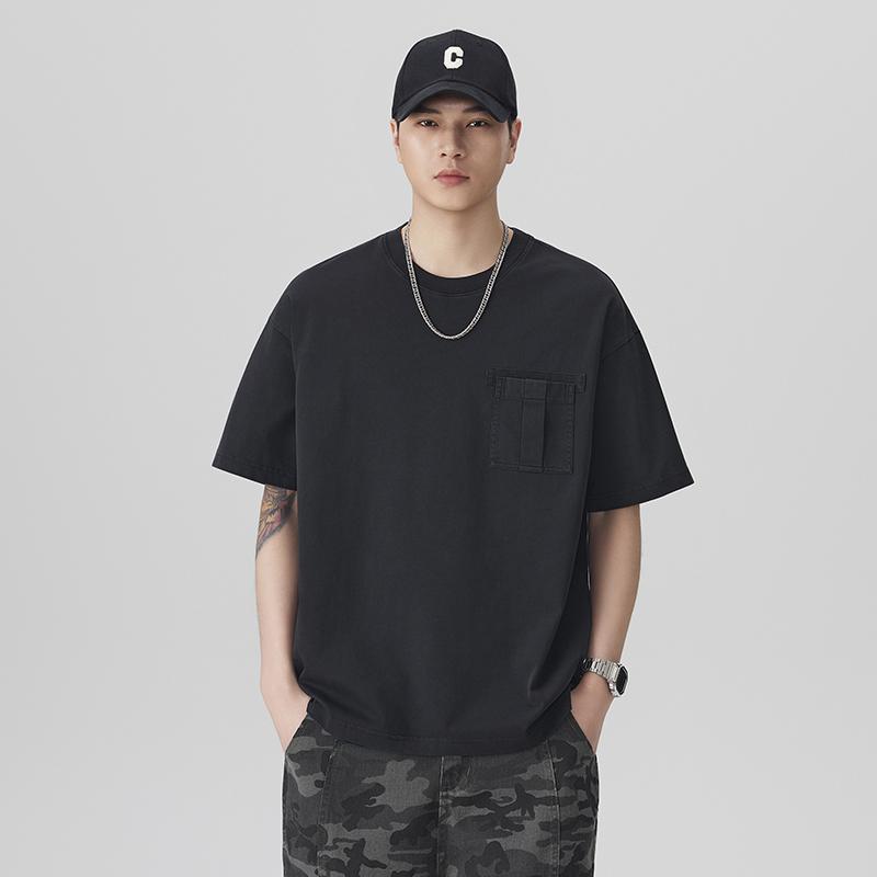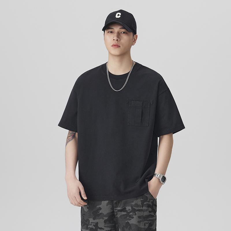【YS3032】潮牌簡約純色口袋寬鬆中性短袖T恤