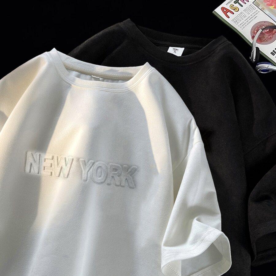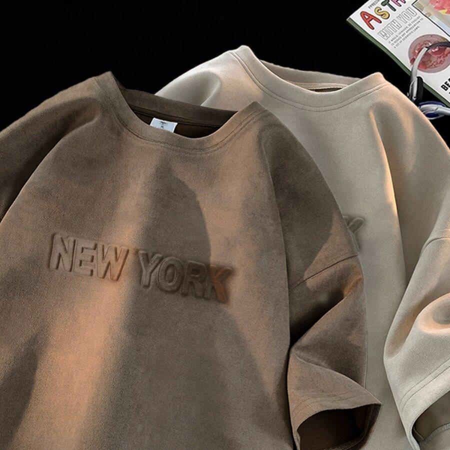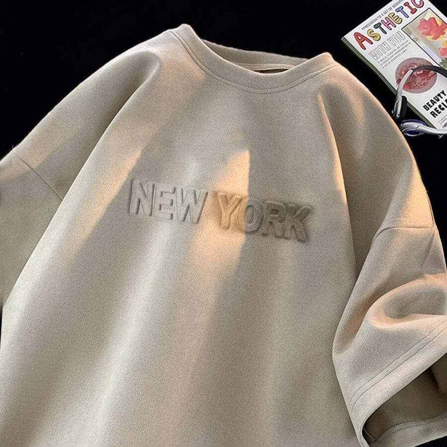【YS3037】鋼印麂皮絨短袖T恤夏寬鬆休閒七分半袖短袖T恤