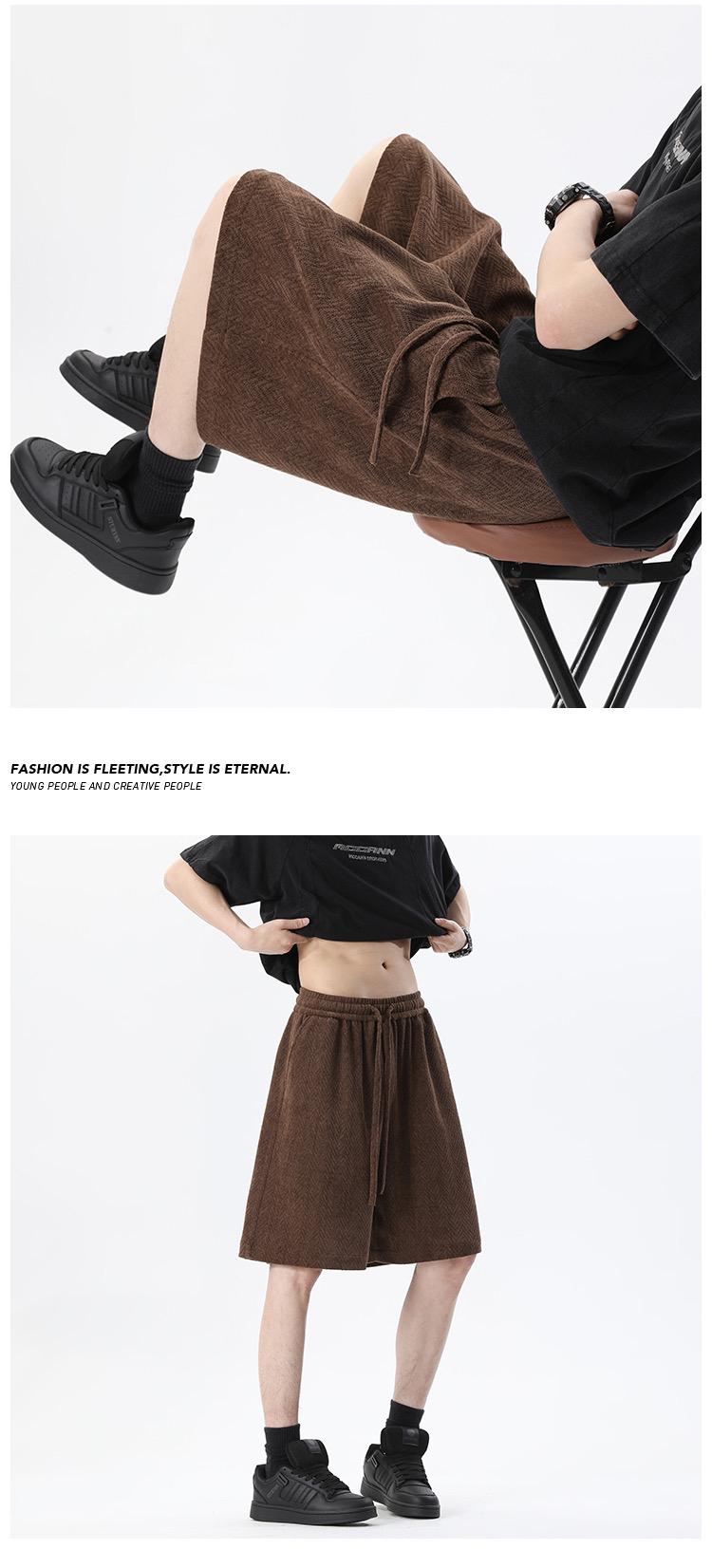 【YS3049】簡約百搭潮流爆款人紋提花休閒短褲