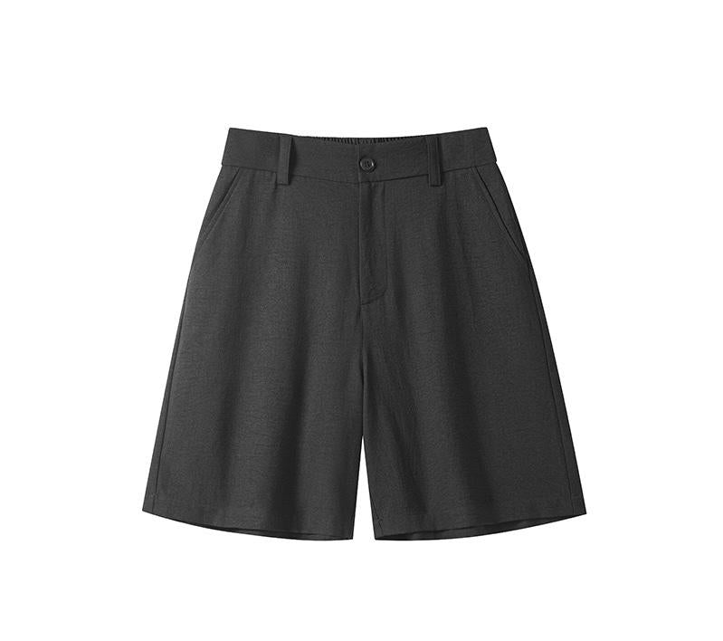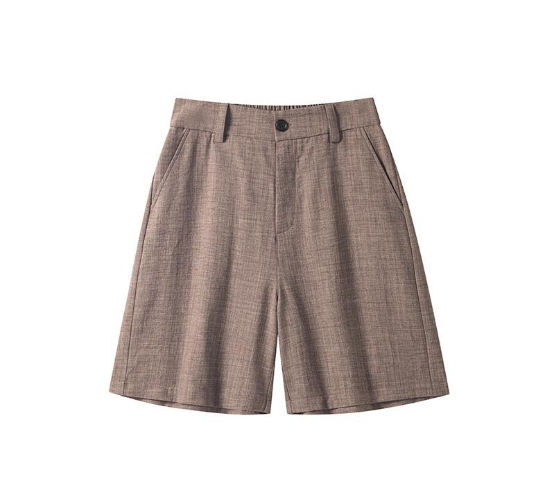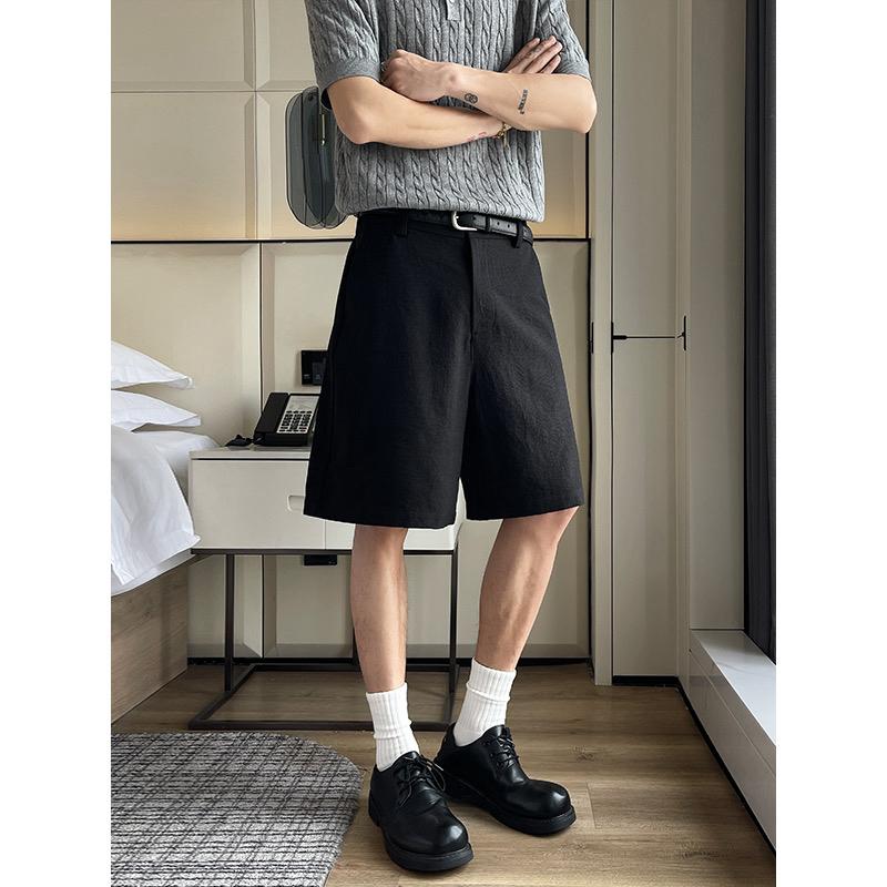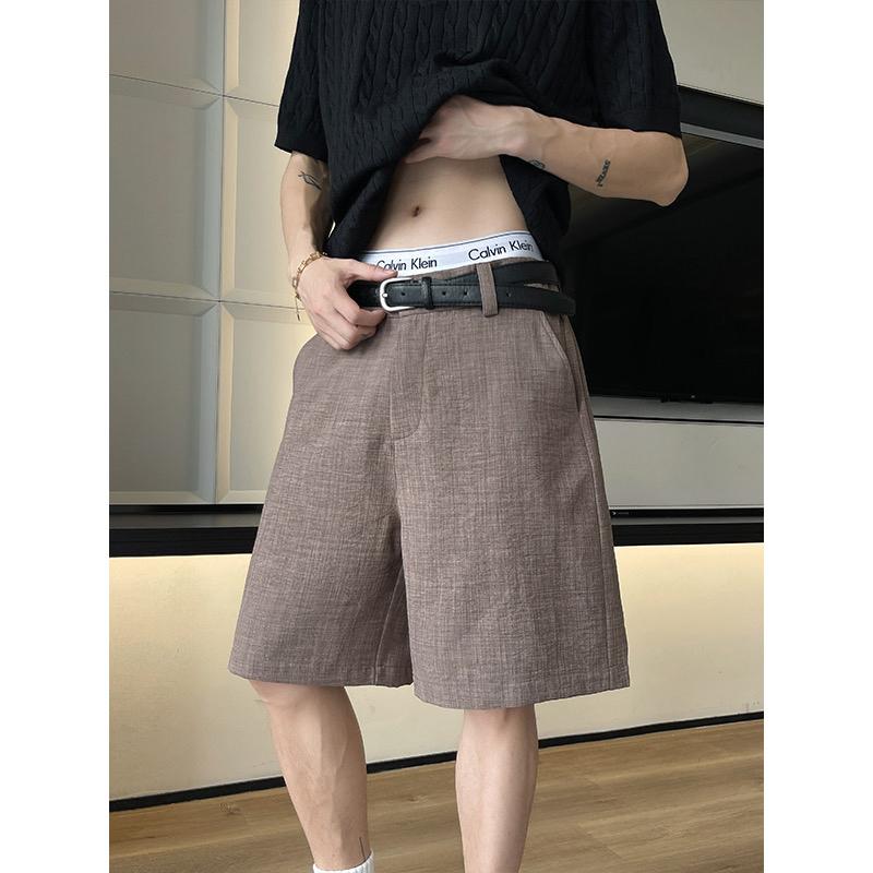 【YS3051】潮牌簡約仿麻基礎百搭中褲五分休閒短褲(不配腰帶)