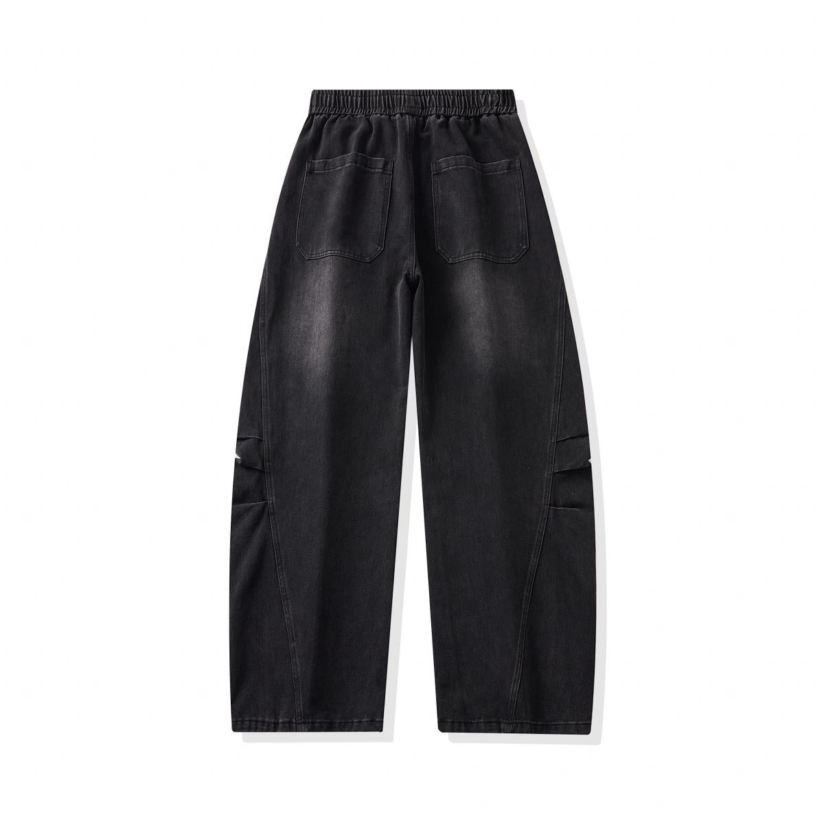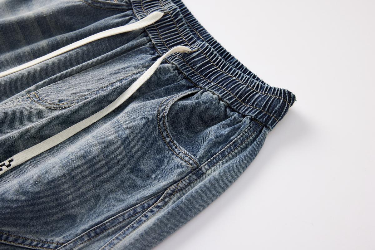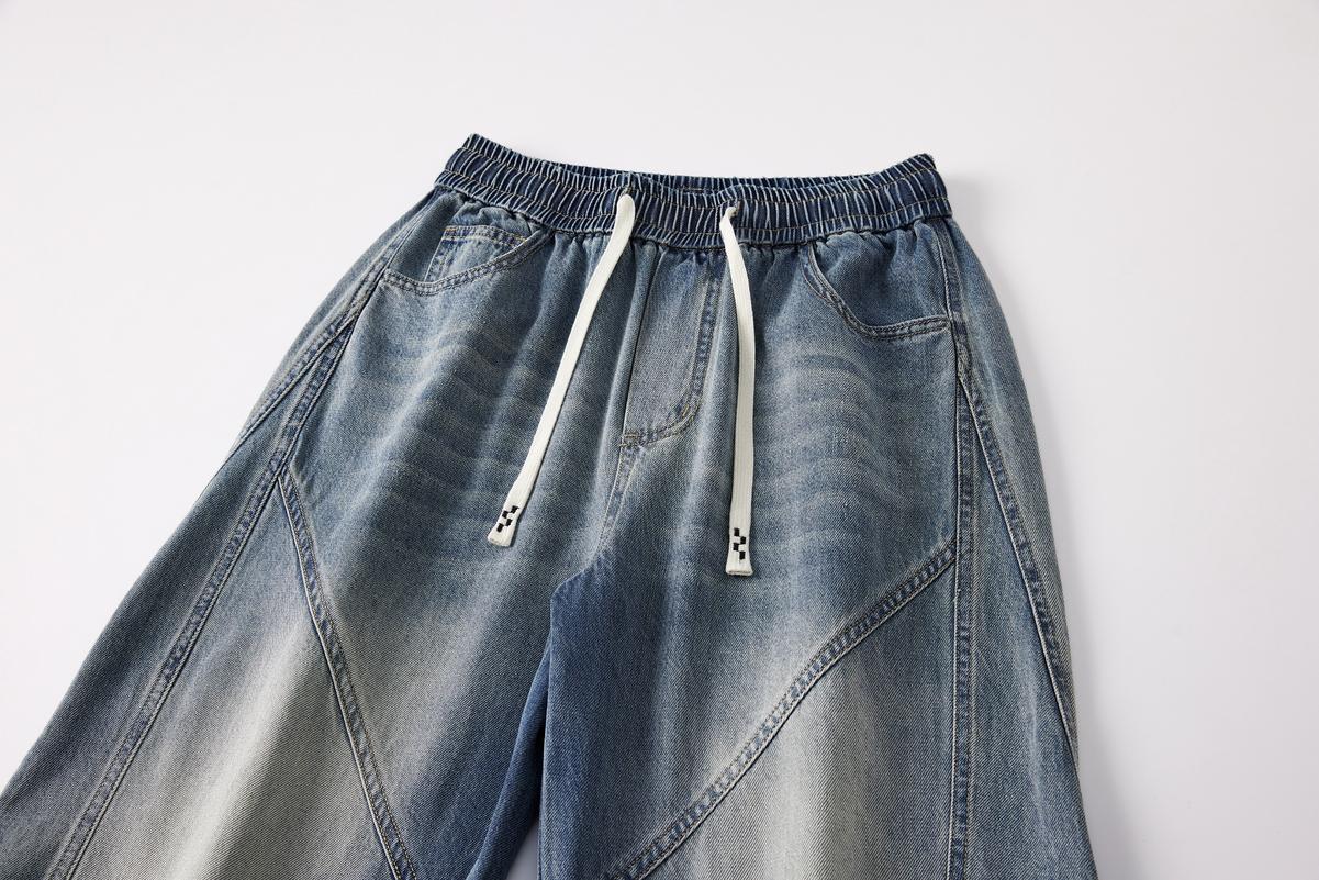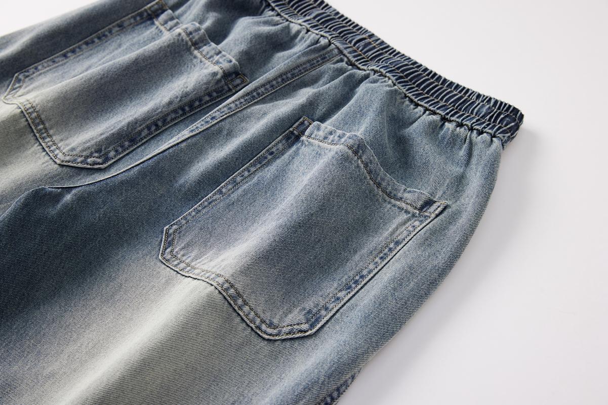 【YS3053】潮牌彎刀版寬鬆青少年水洗鬆緊腰牛仔褲
