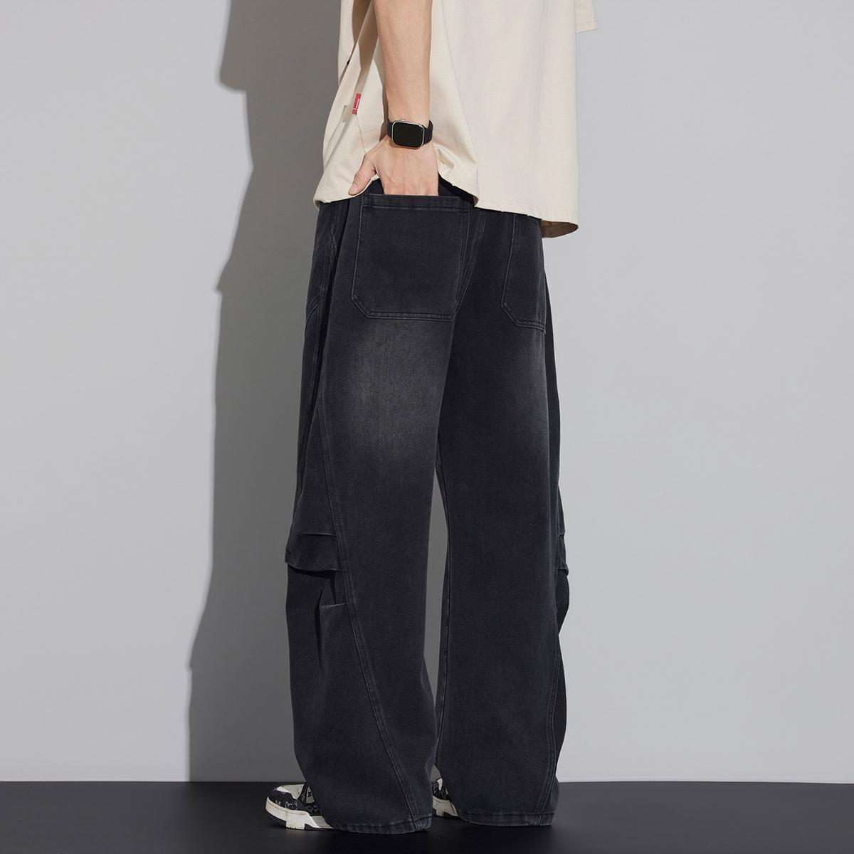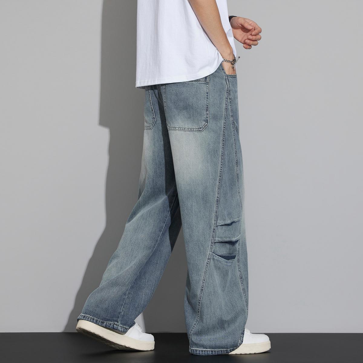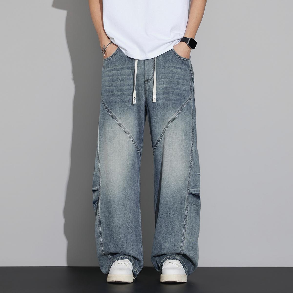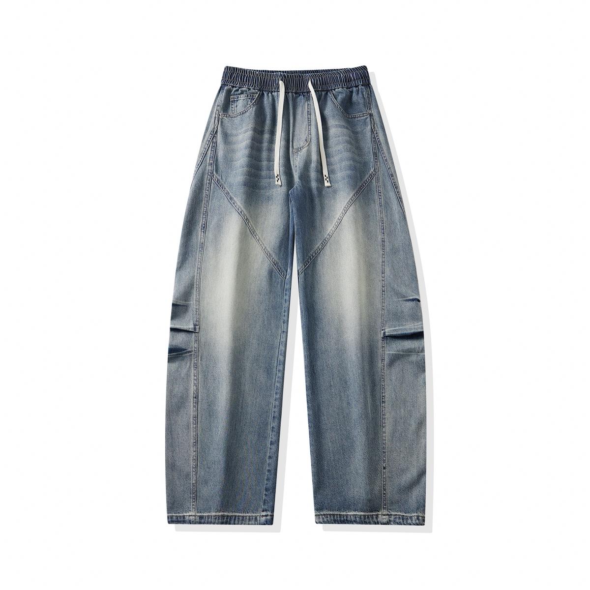【YS3053】潮牌彎刀版寬鬆青少年水洗鬆緊腰牛仔褲