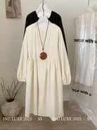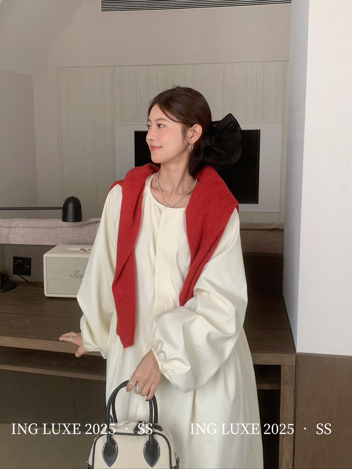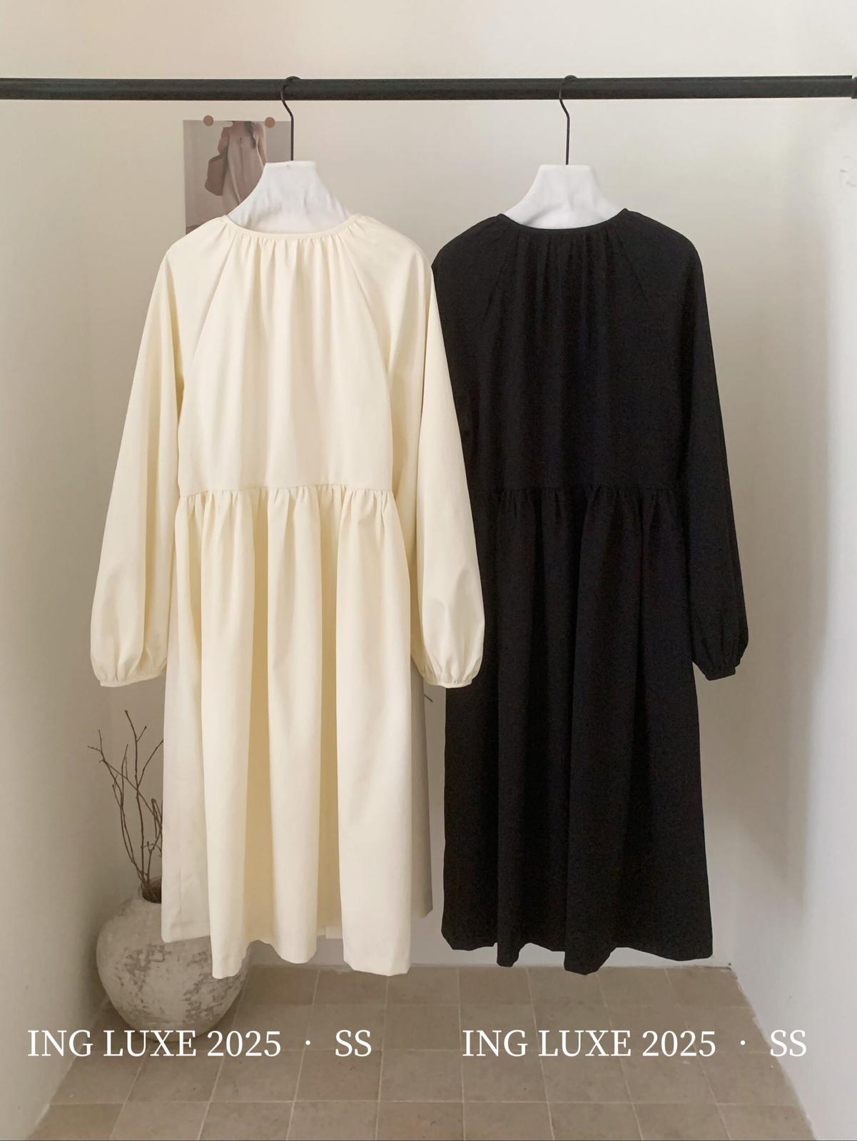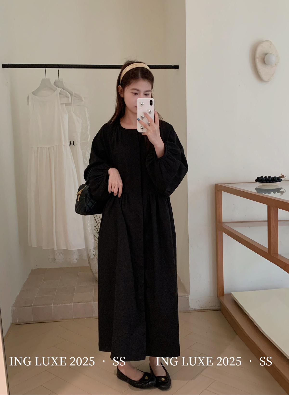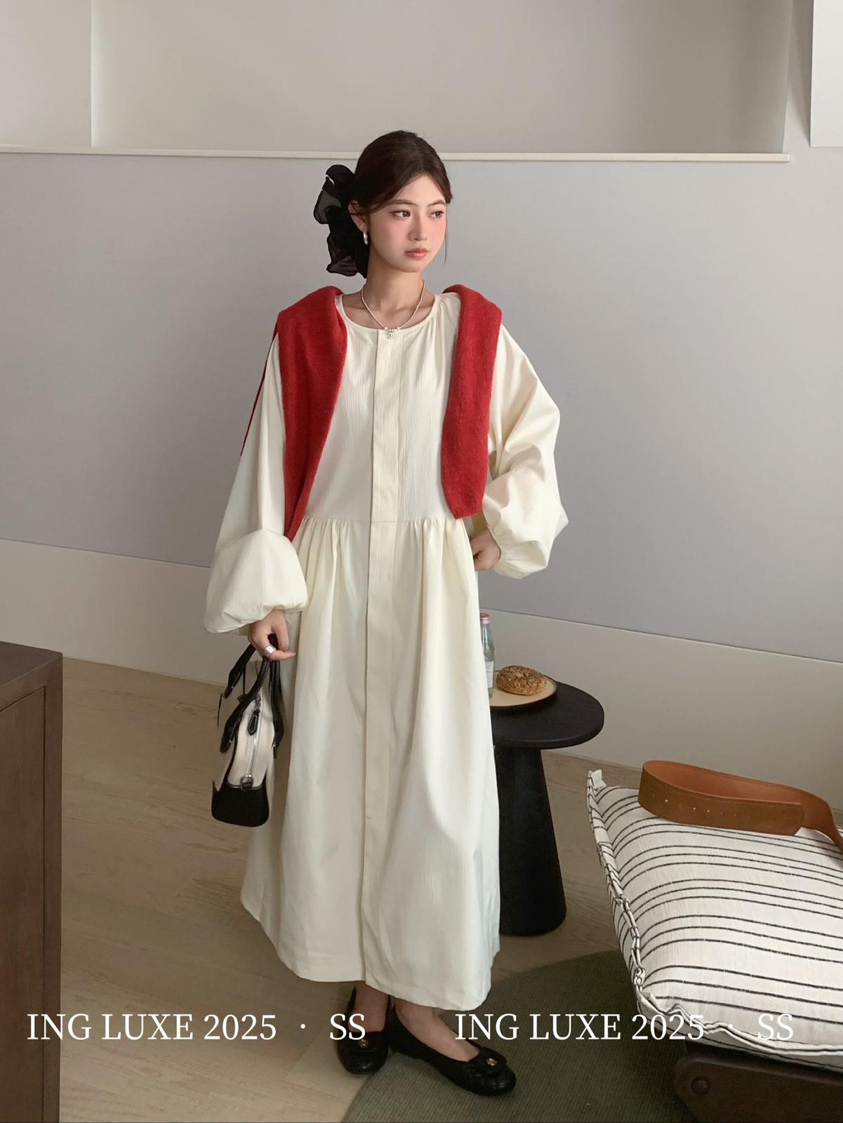 3. 【C6992】溫柔甜美風長袖女秋季新款減齡寬鬆顯瘦百搭泡泡袖長款連衣裙