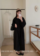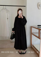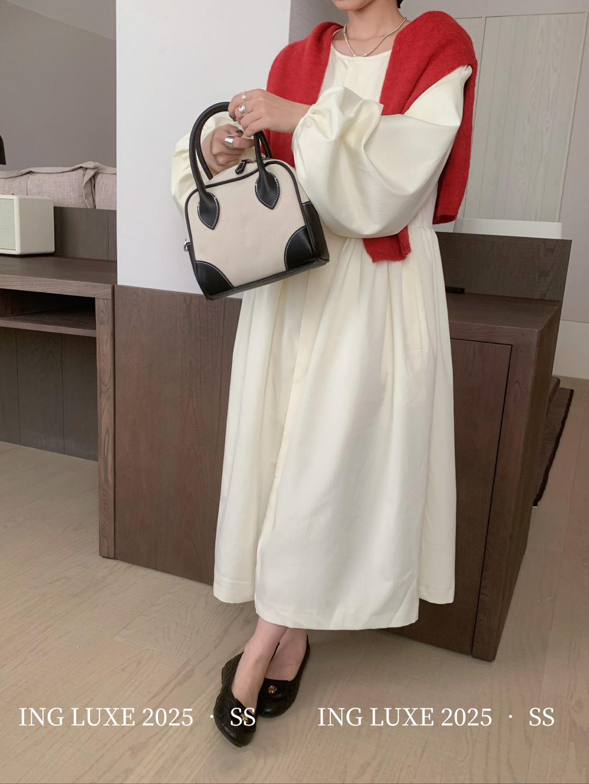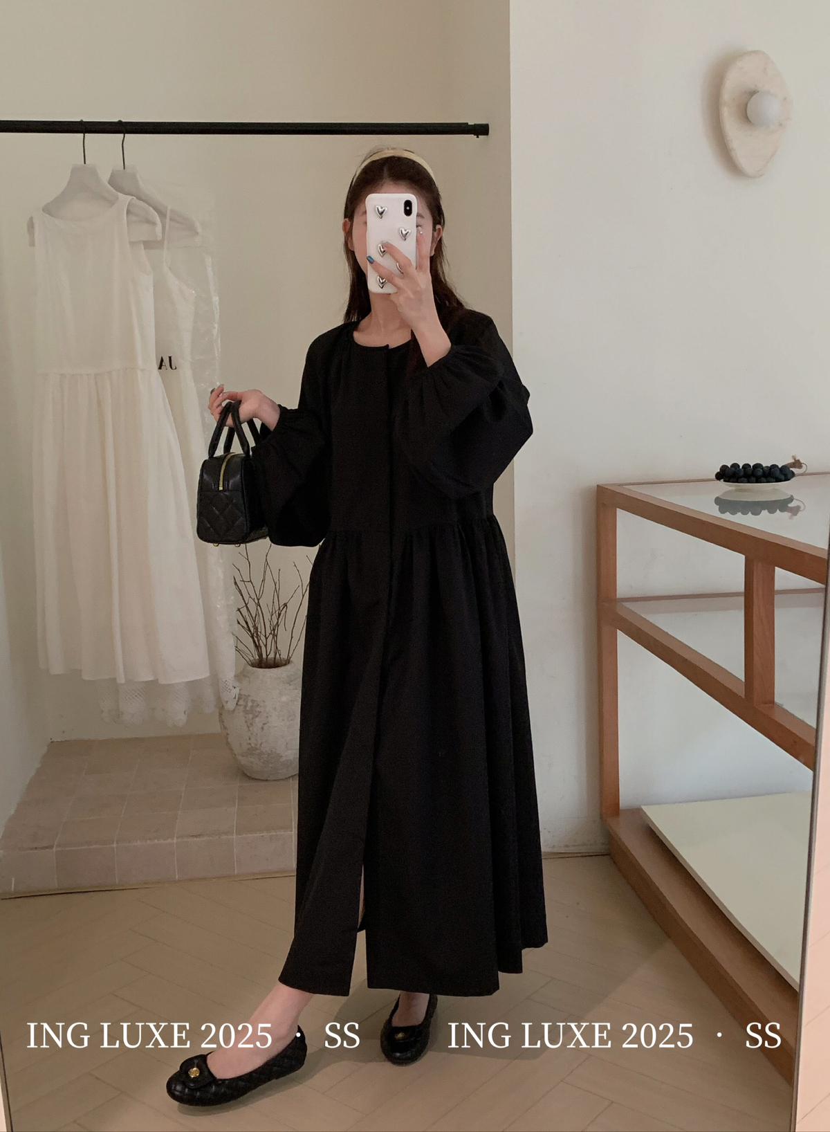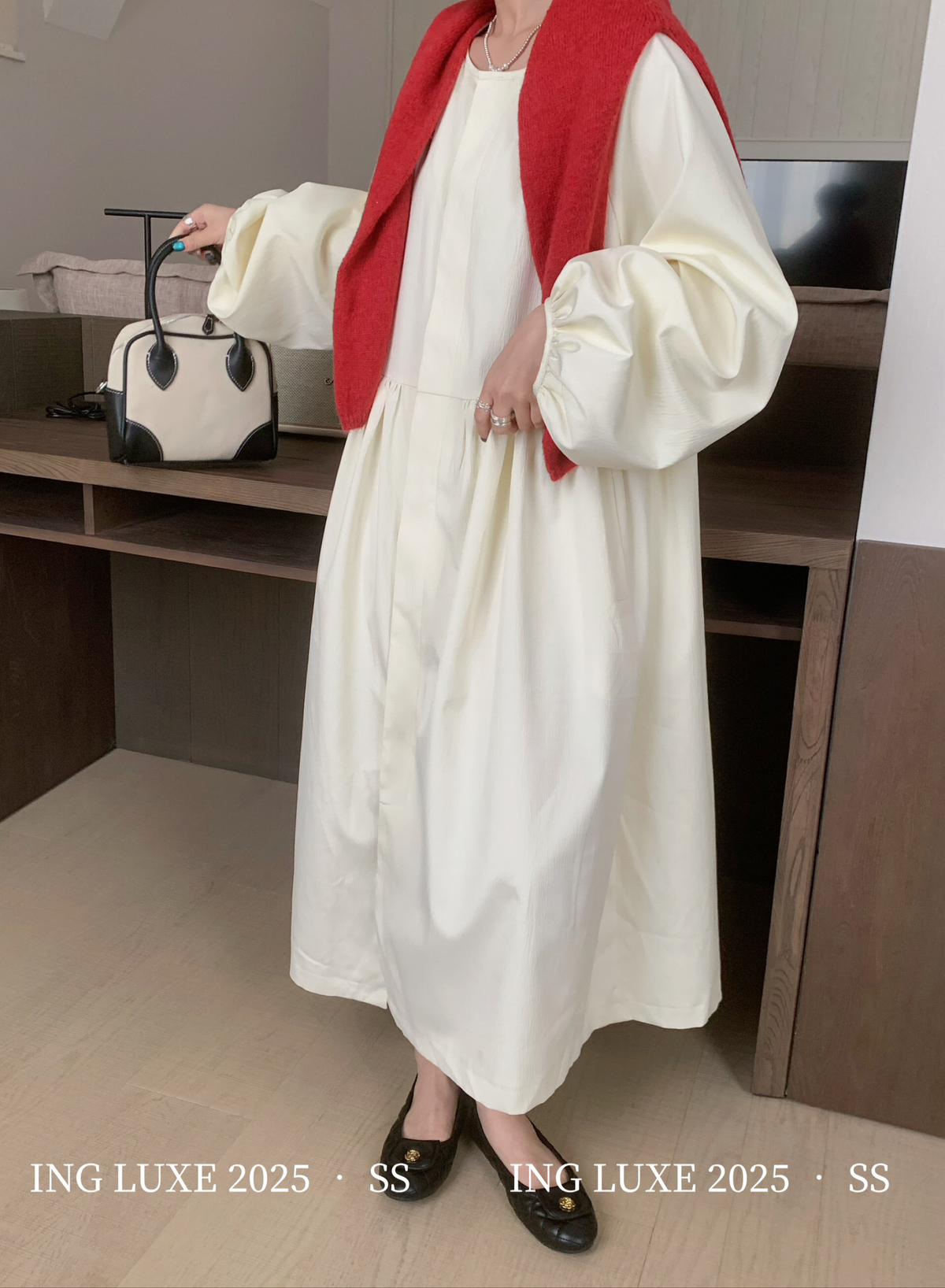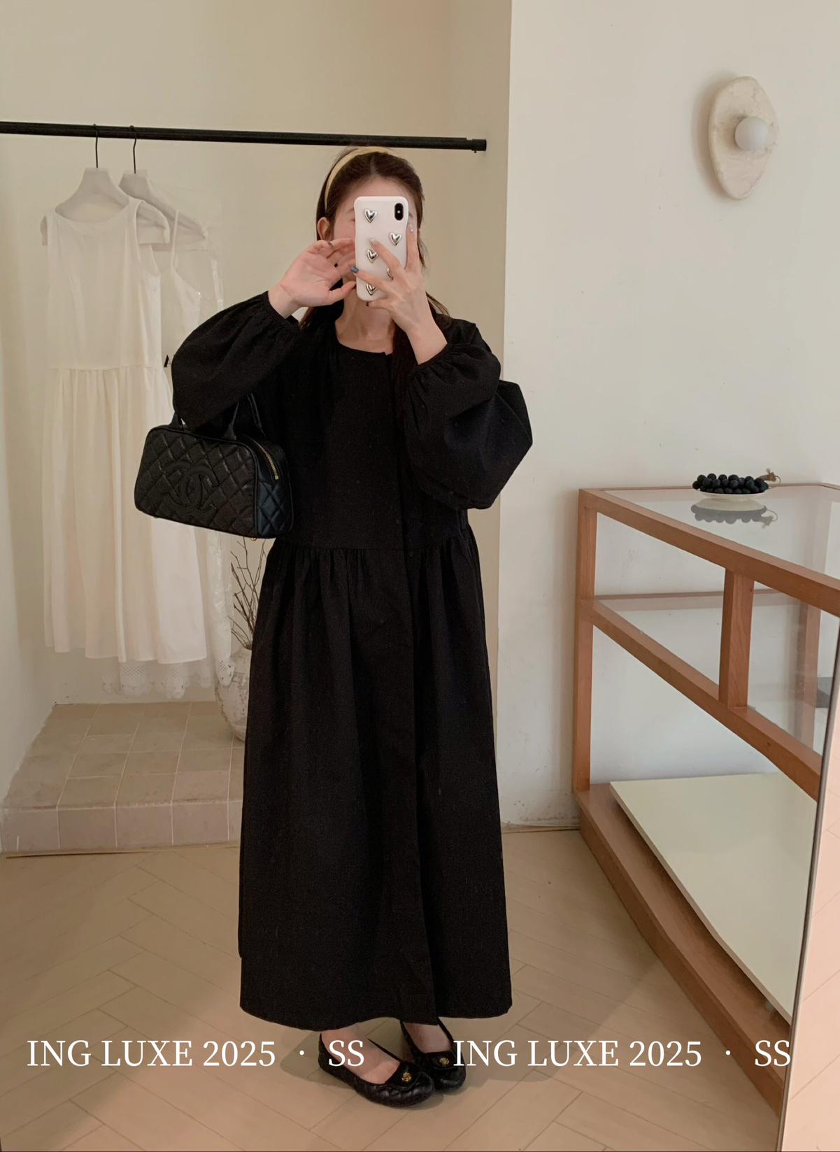 【C6992】溫柔甜美風長袖女秋季新款減齡寬鬆顯瘦百搭泡泡袖長款連衣裙