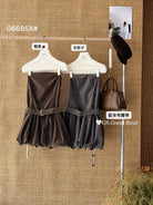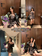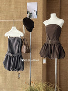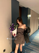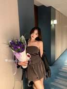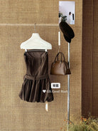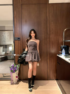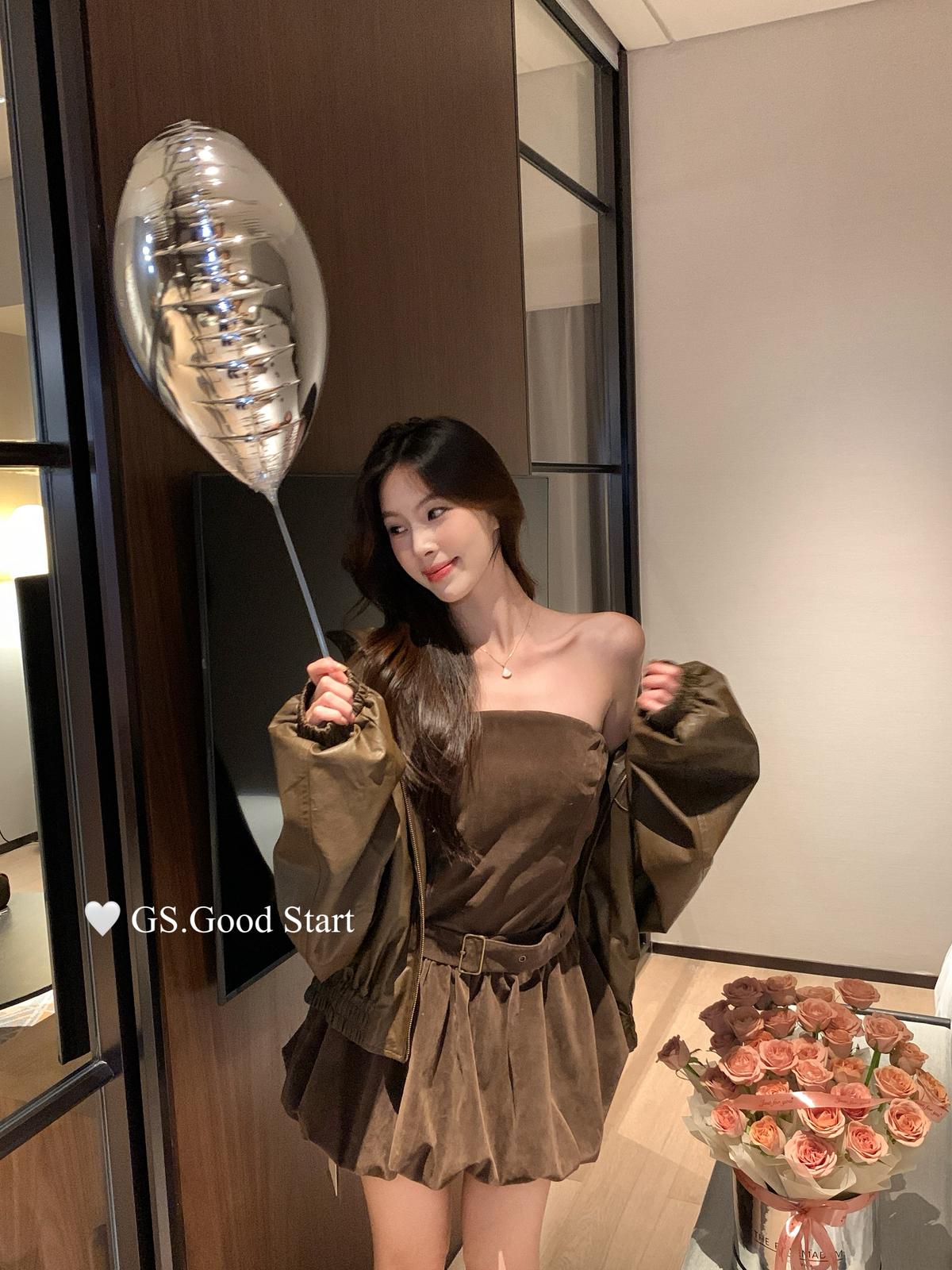 3. 【C7391】新銳爆款裙!矜貴千金feel~秋時髦純欲麂皮絨百搭抹胸連衣裙(配腰帶)