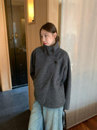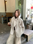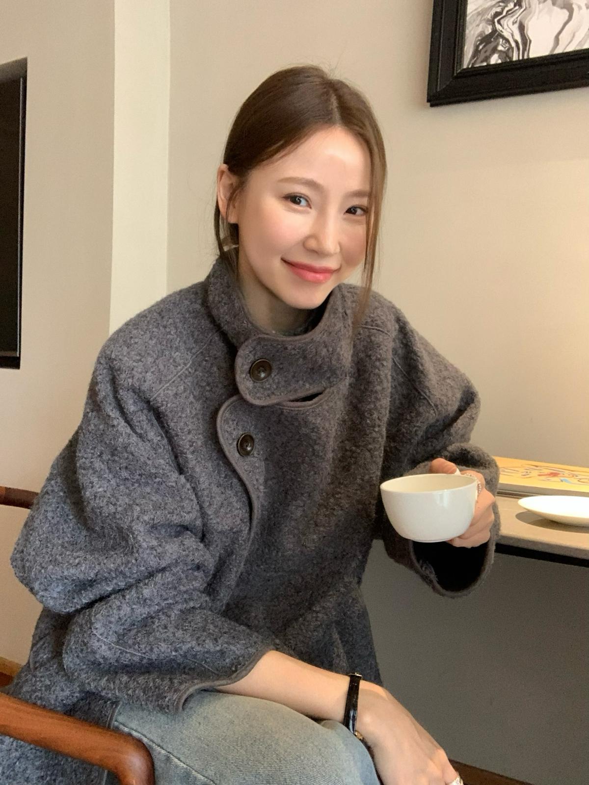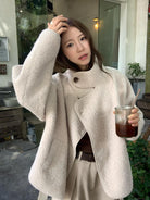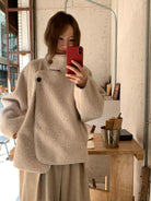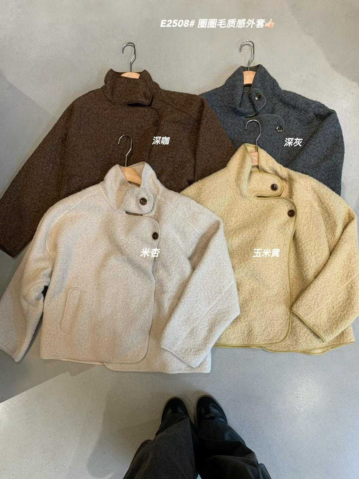 【C7432】高智博主風溫暖圈圈絨一粒扣立領廓形大衣