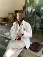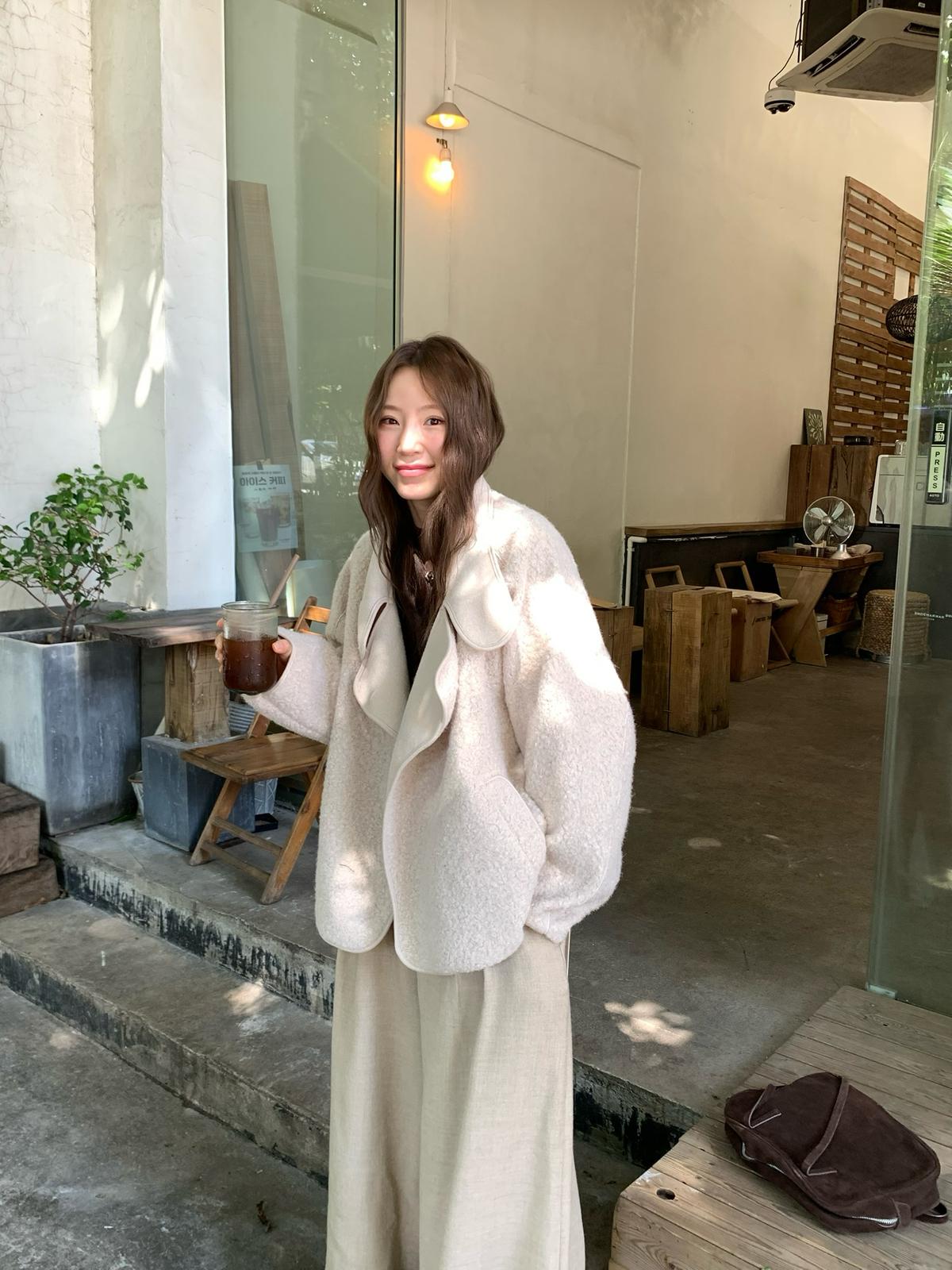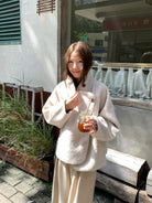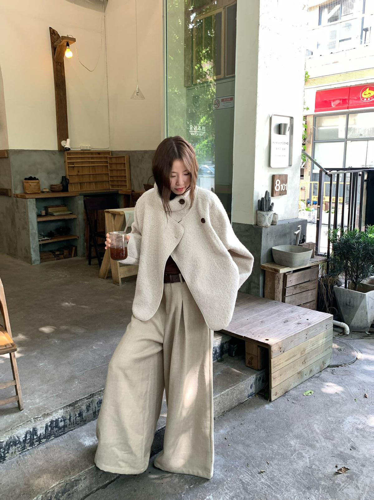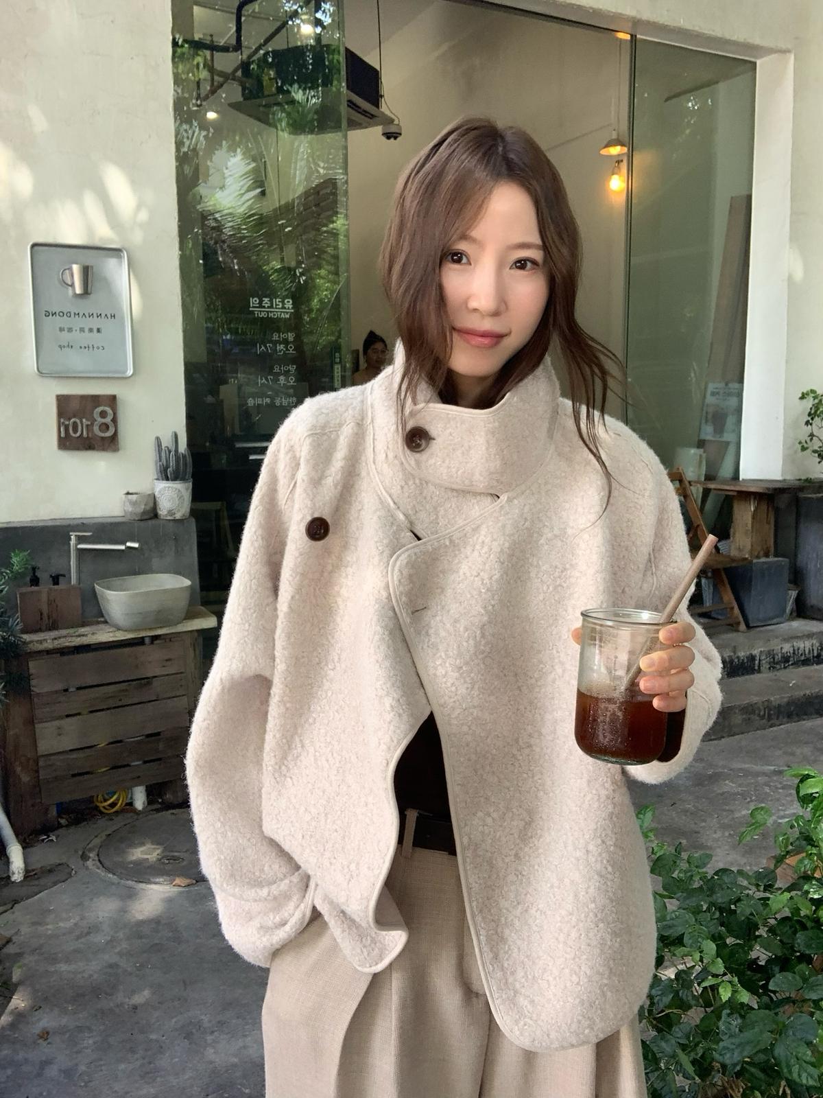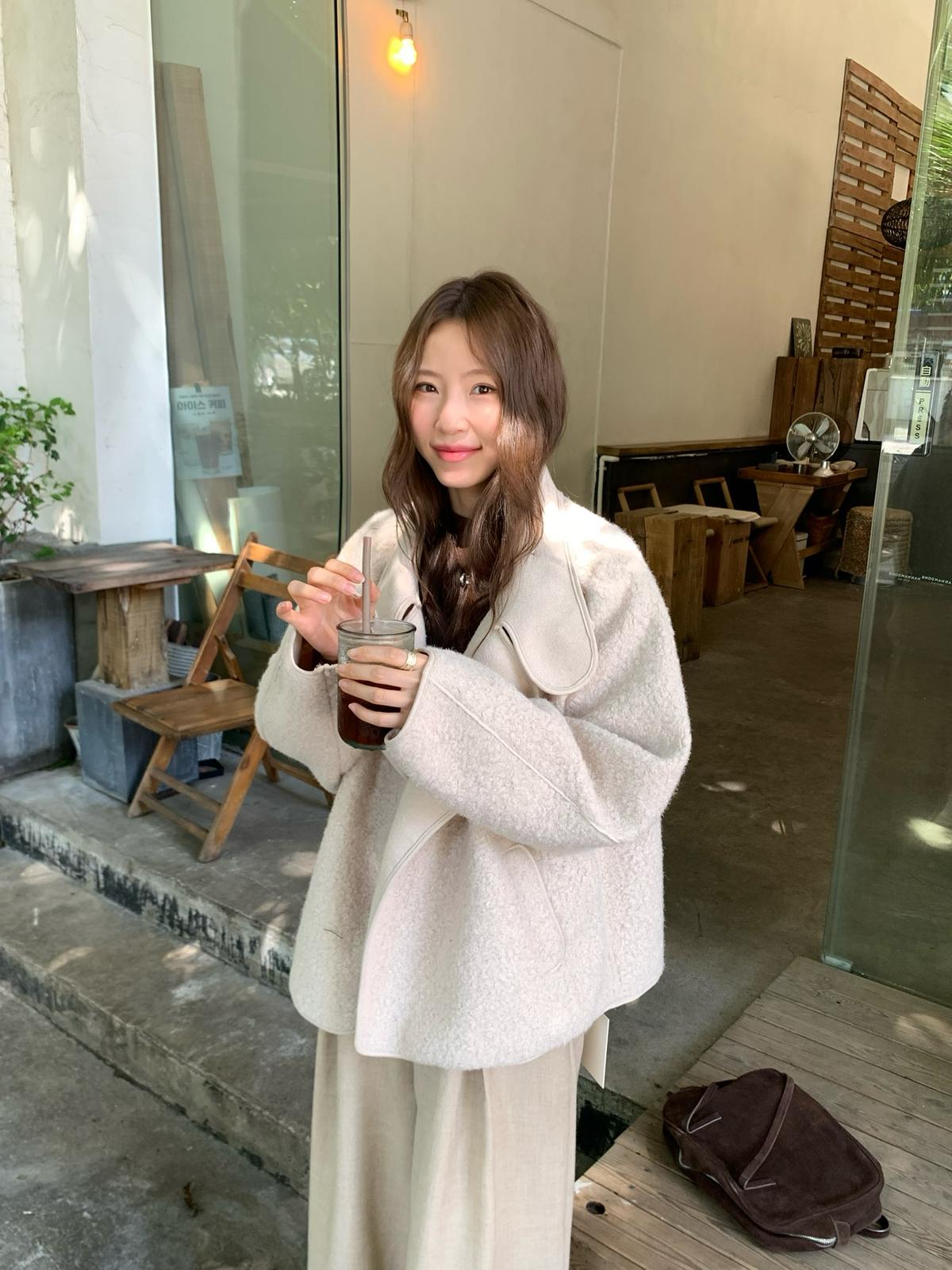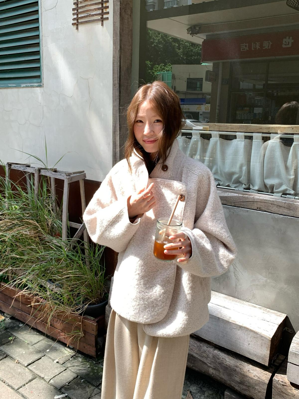 3. 【C7432】高智博主風溫暖圈圈絨一粒扣立領廓形大衣