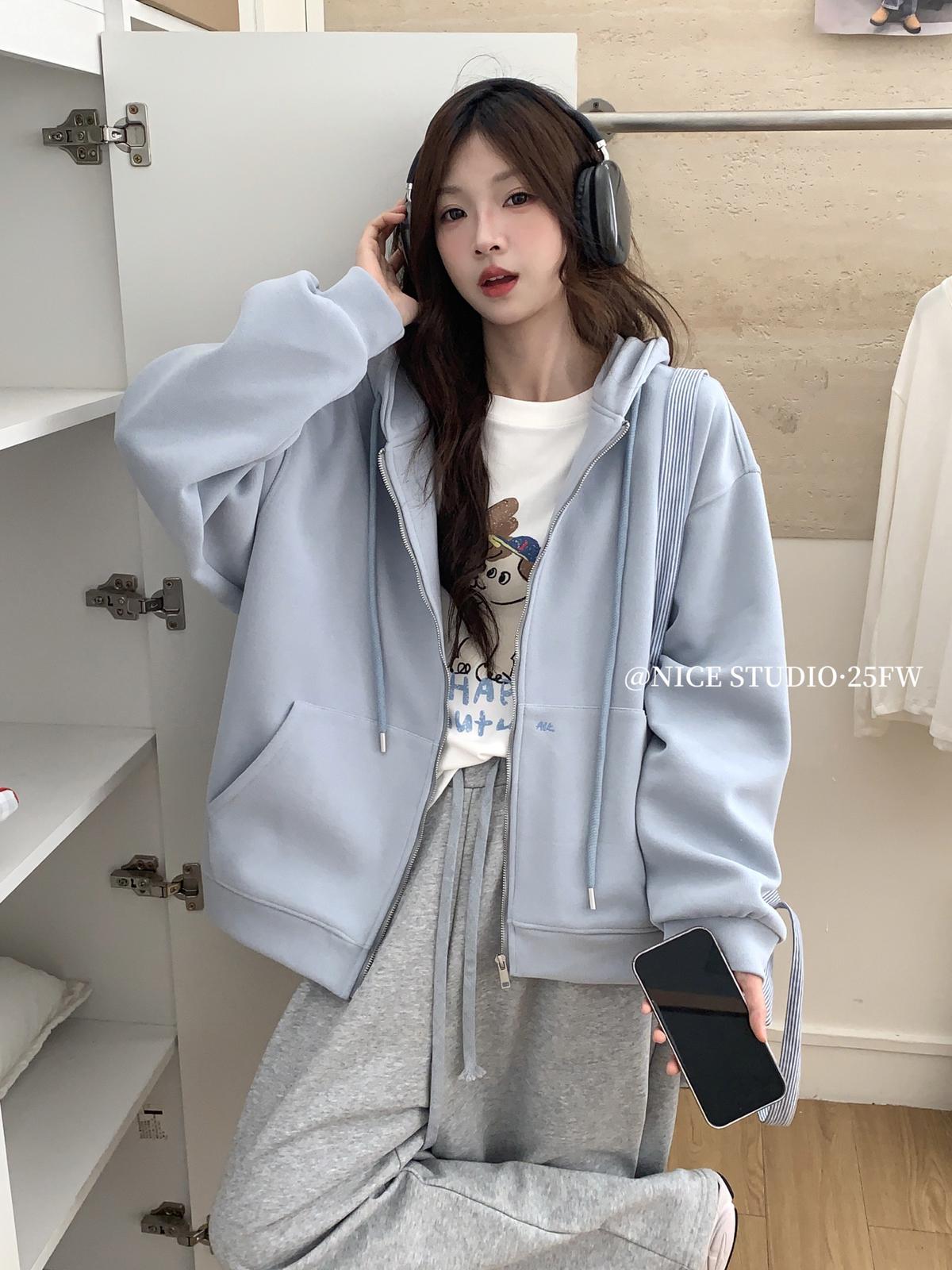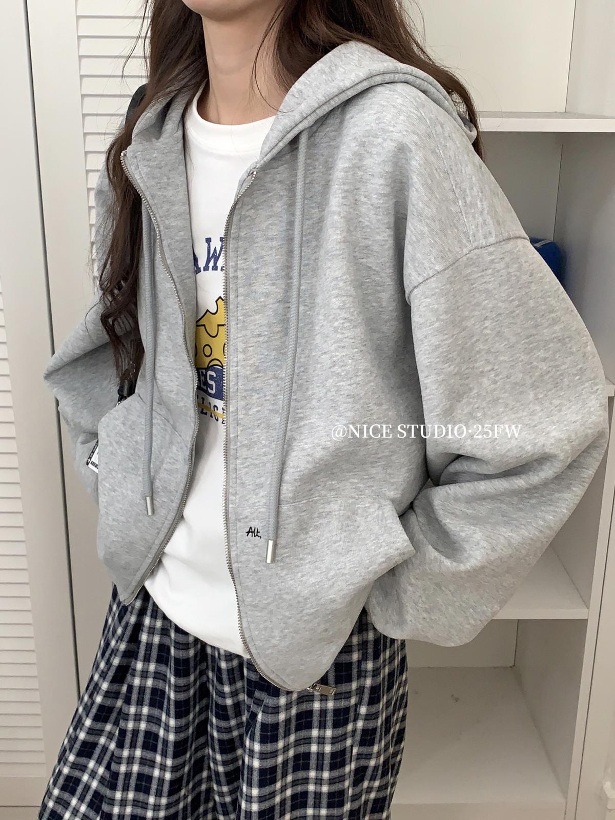 3. 【C7609】百搭淨版大版開衫衛衣外套
