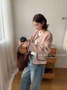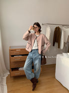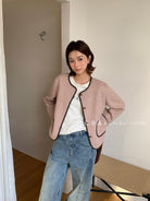 【C7631】韓系撞色皮條簡約氛圍感時尚雙面尼短外套