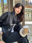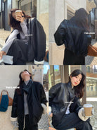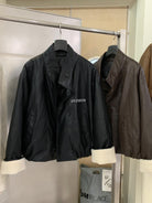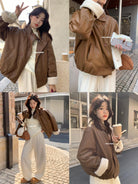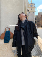 【C7649】立領寬鬆拼接羊羔毛保暖蛋白皮保暖羽絨服外套