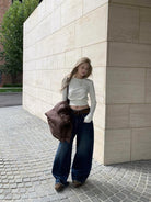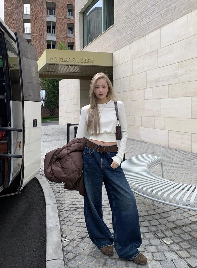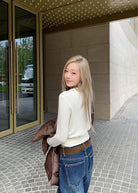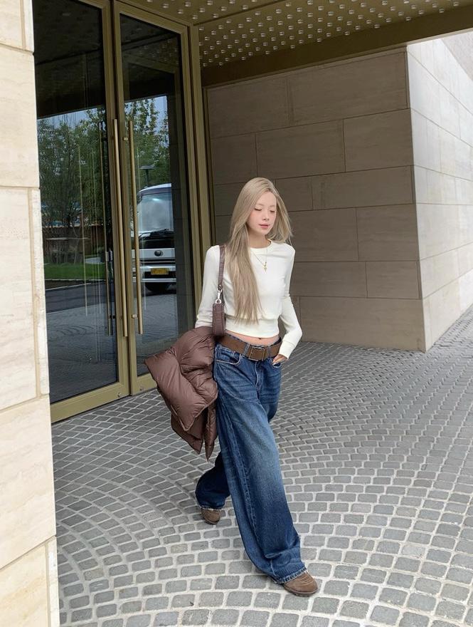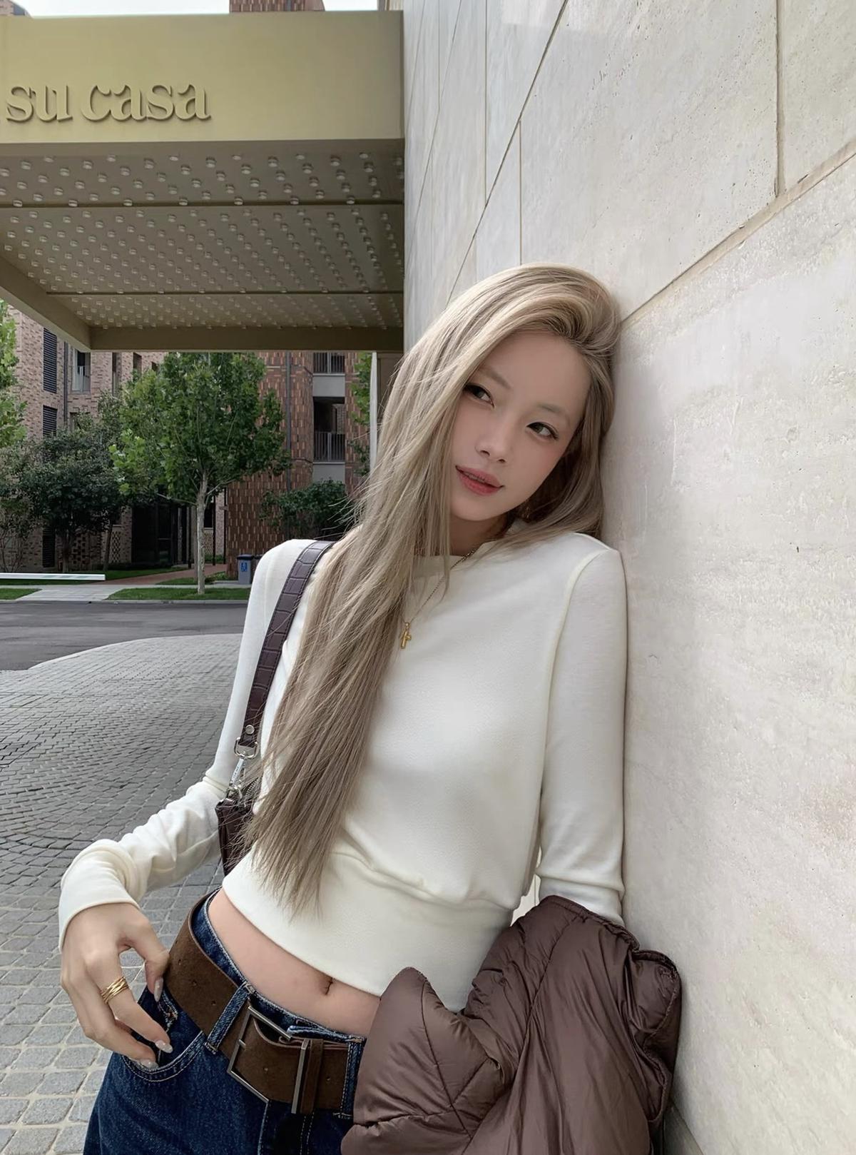 【C7667】韓系極簡百搭純色高級感圓領收腰顯瘦長袖T恤小衫