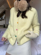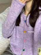 【C7698】韓系溫柔軟糯彩扣羊駝毛開衫毛衣(含8%羊毛)
