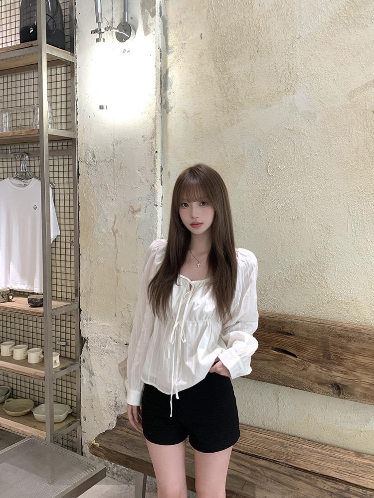 【C7706】娃娃衫方領襯衫女2025新款爆款獨特超好看單穿小衫