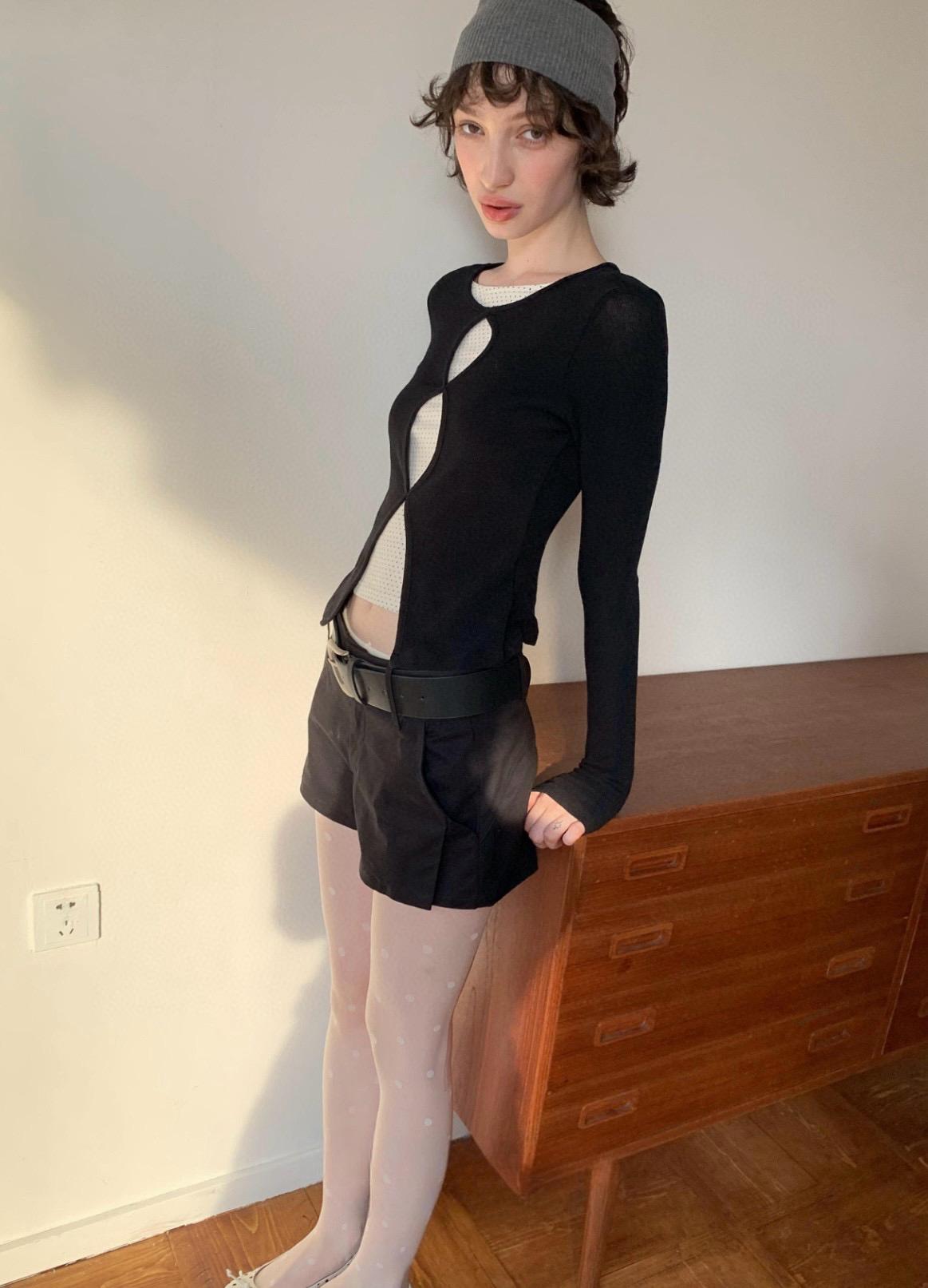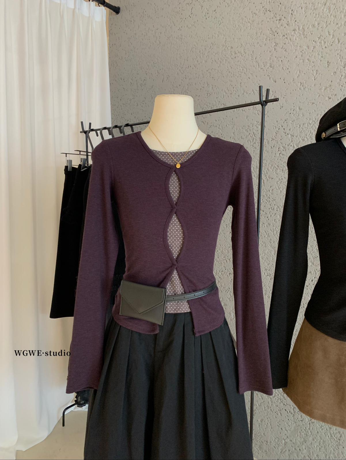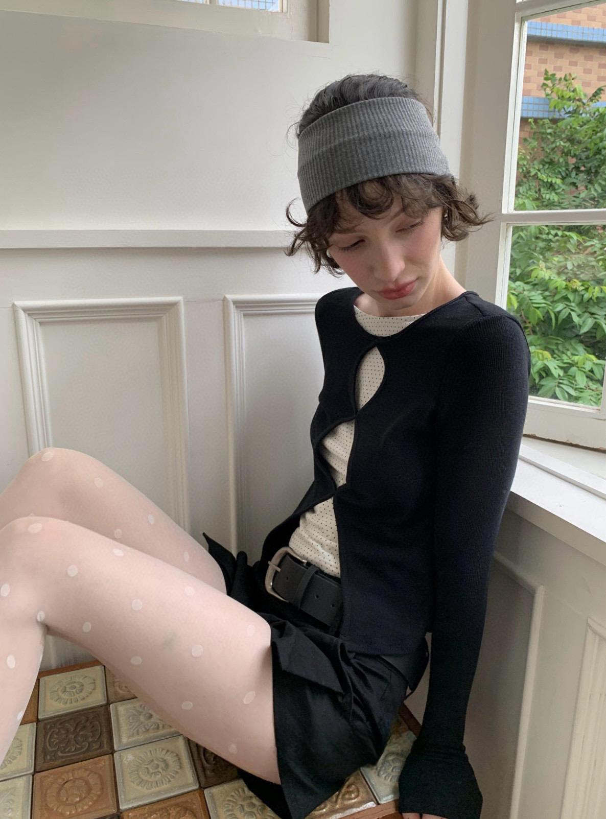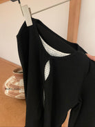 3. 【C7709】假兩件鏤空波點修身針織上衣長袖T恤
