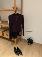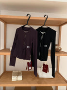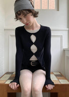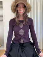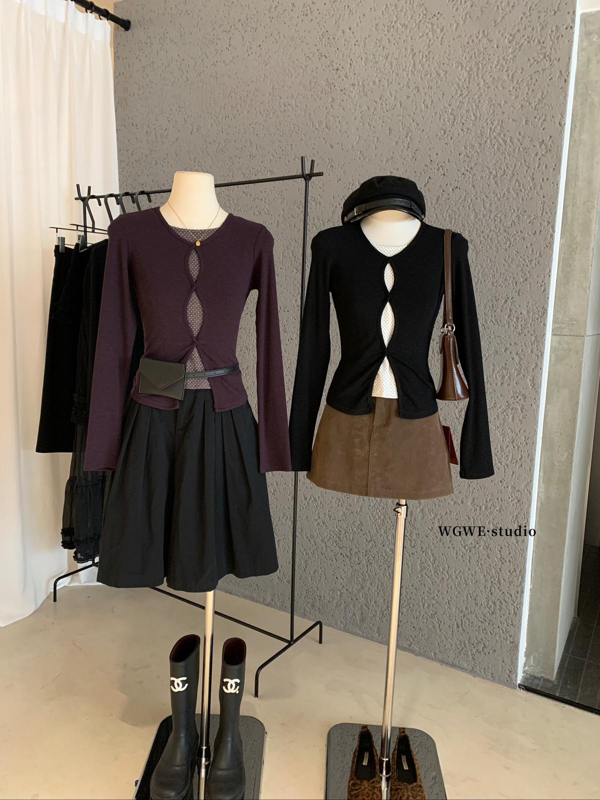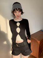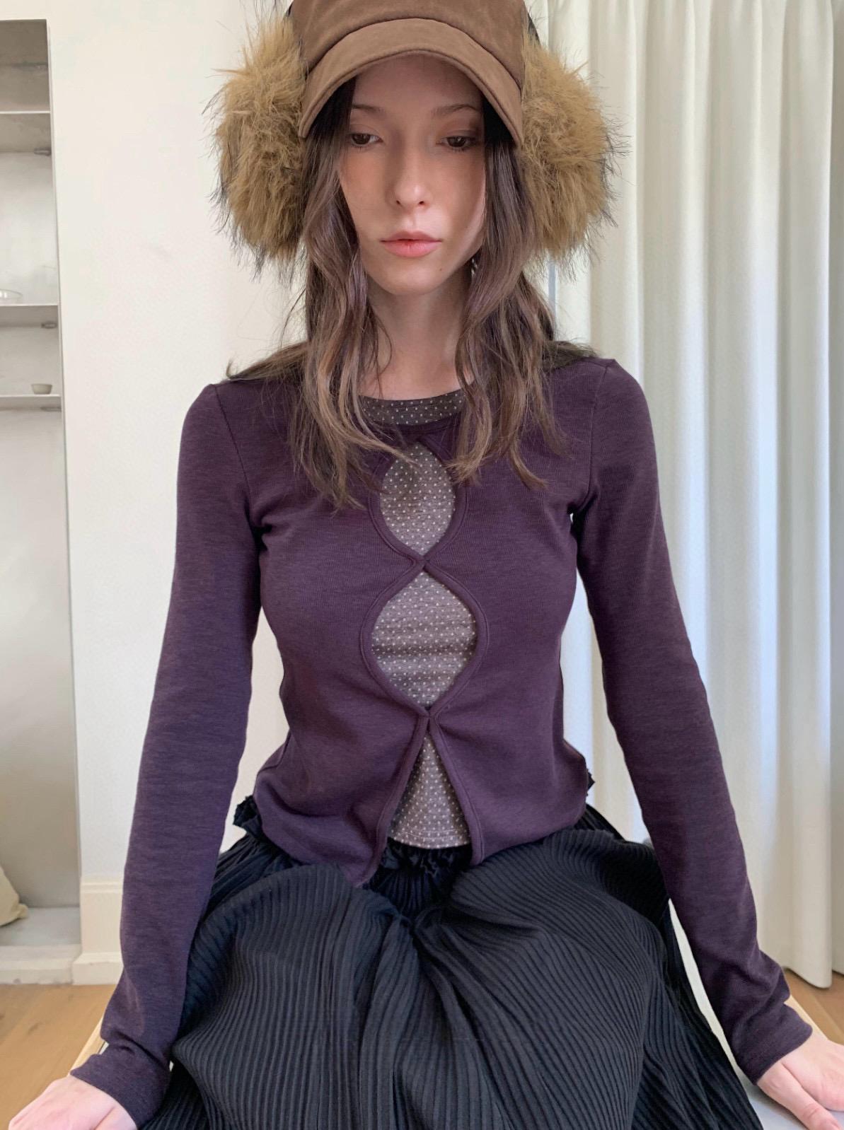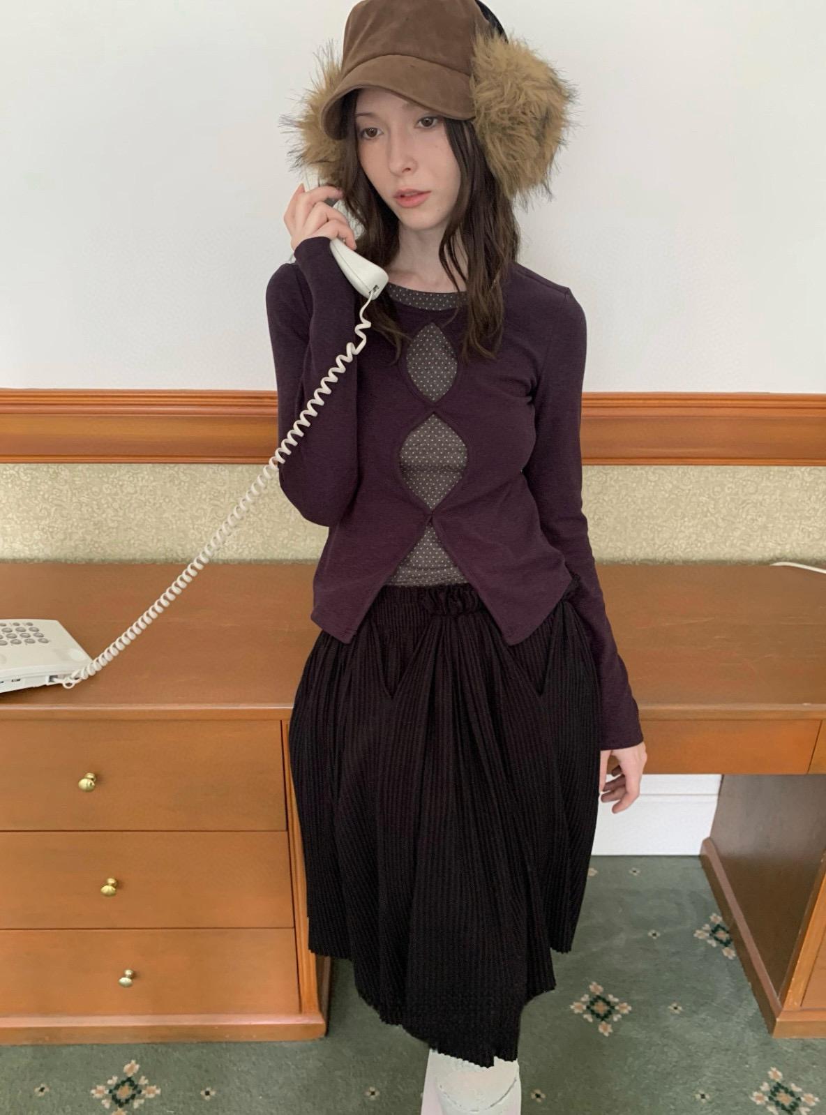 3. 【C7709】假兩件鏤空波點修身針織上衣長袖T恤