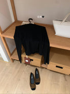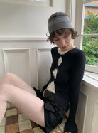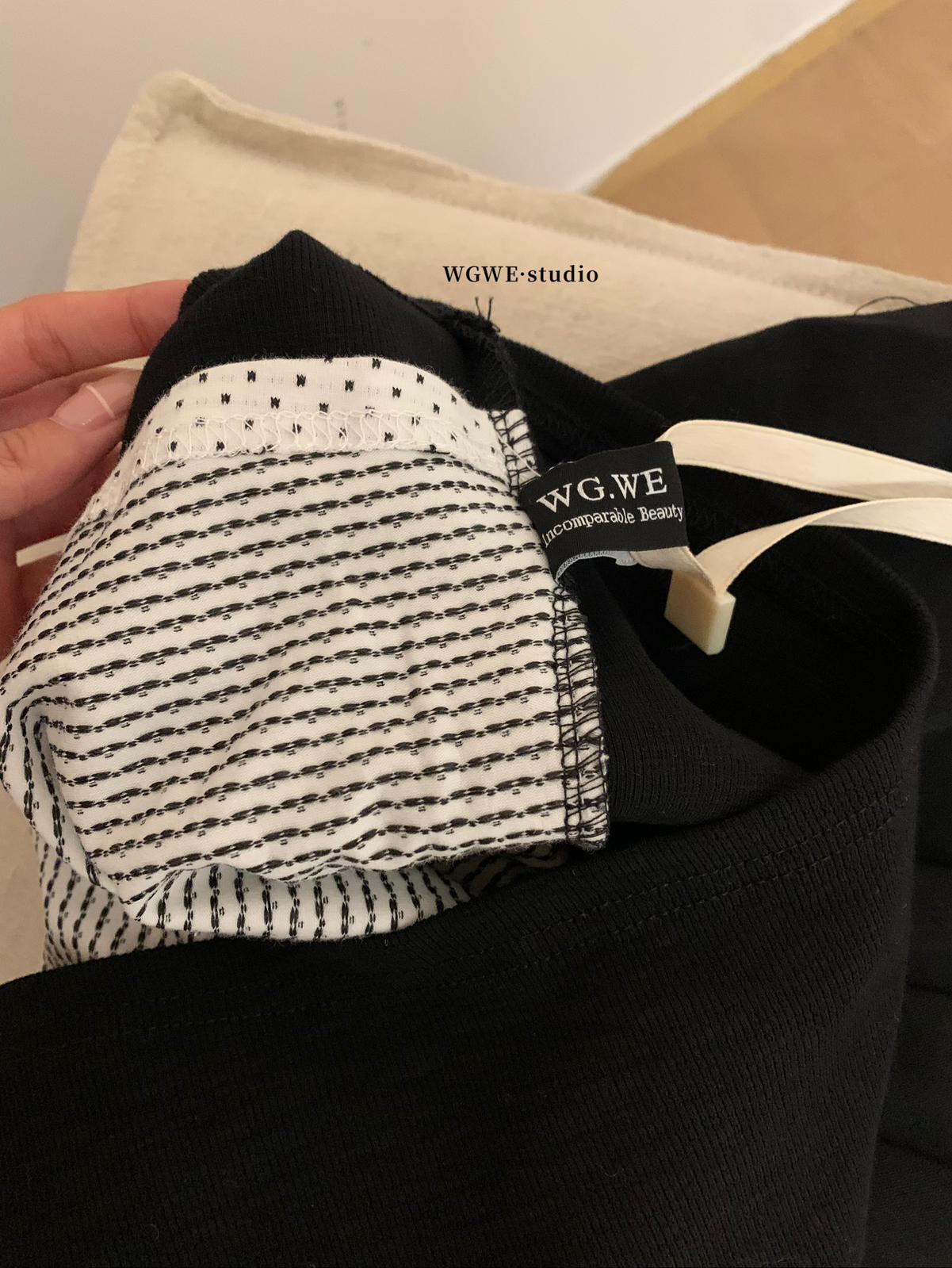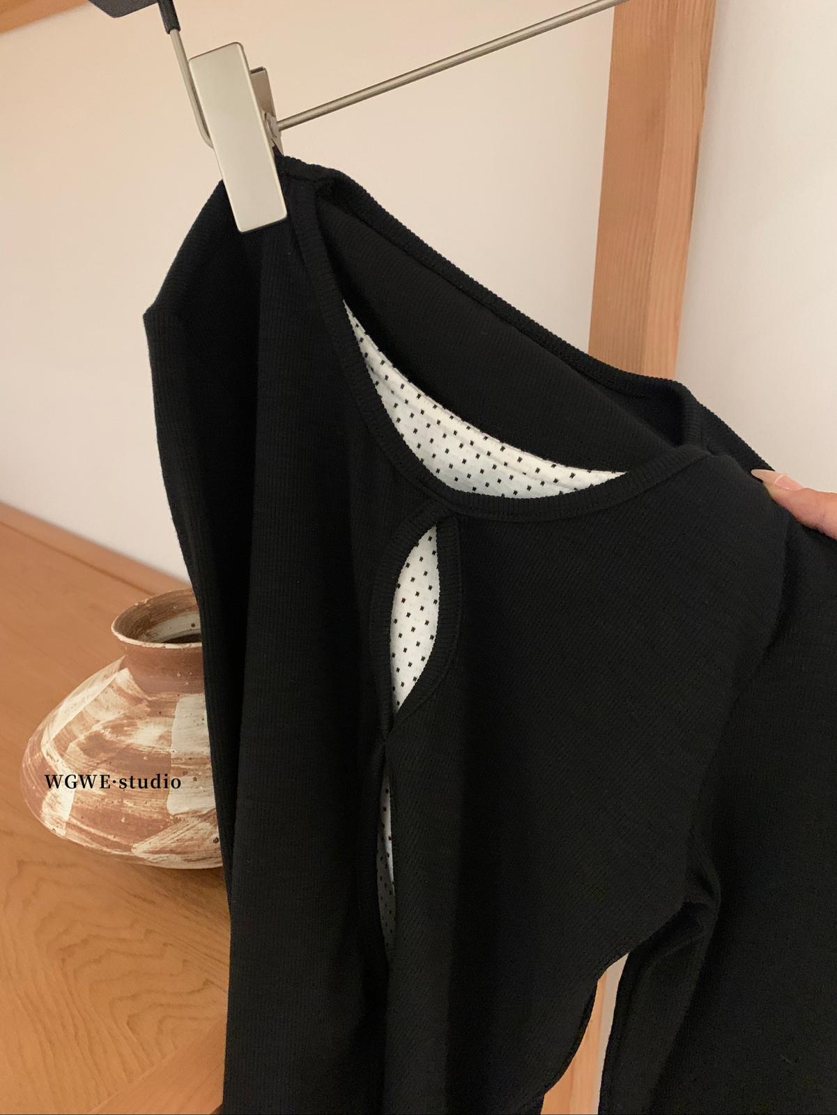 【C7709】假兩件鏤空波點修身針織上衣長袖T恤
