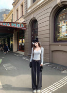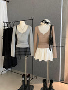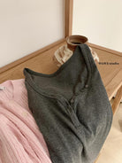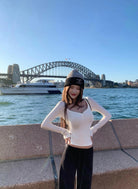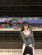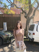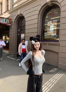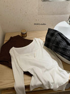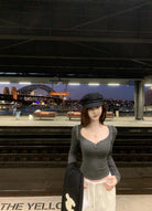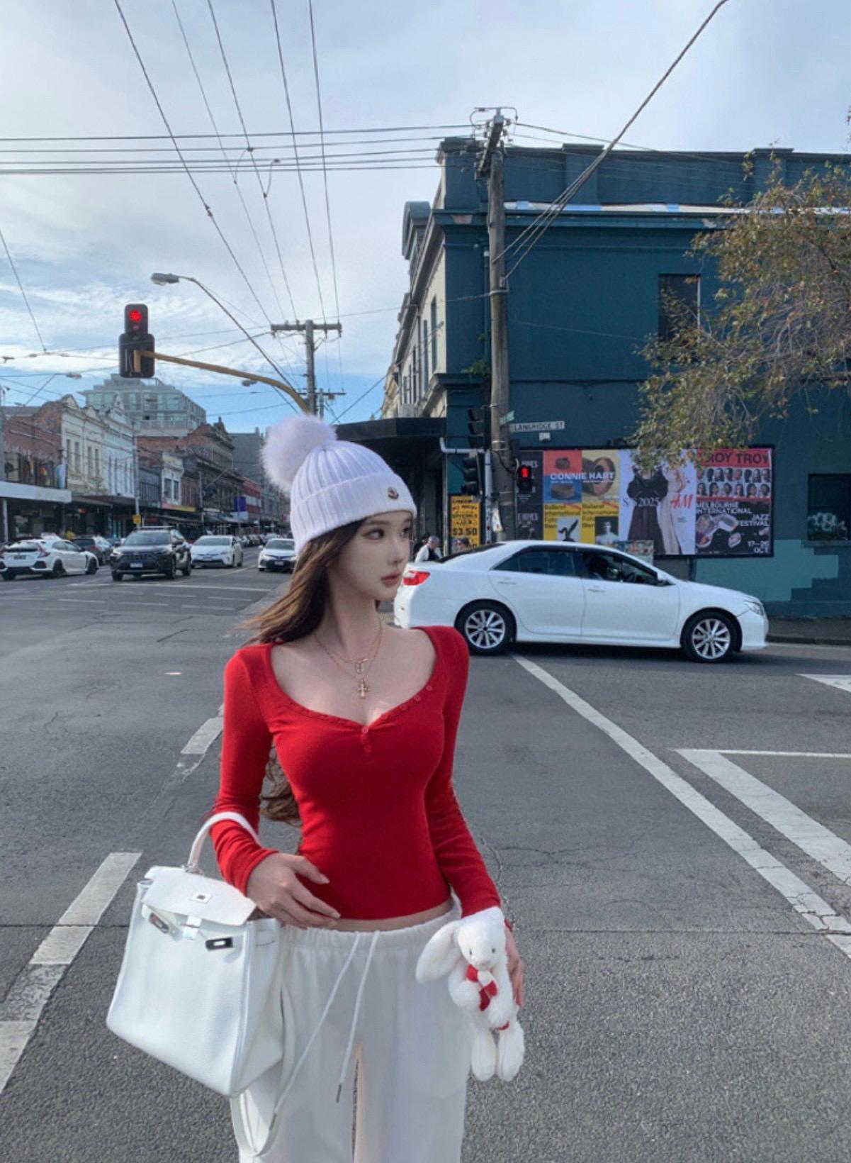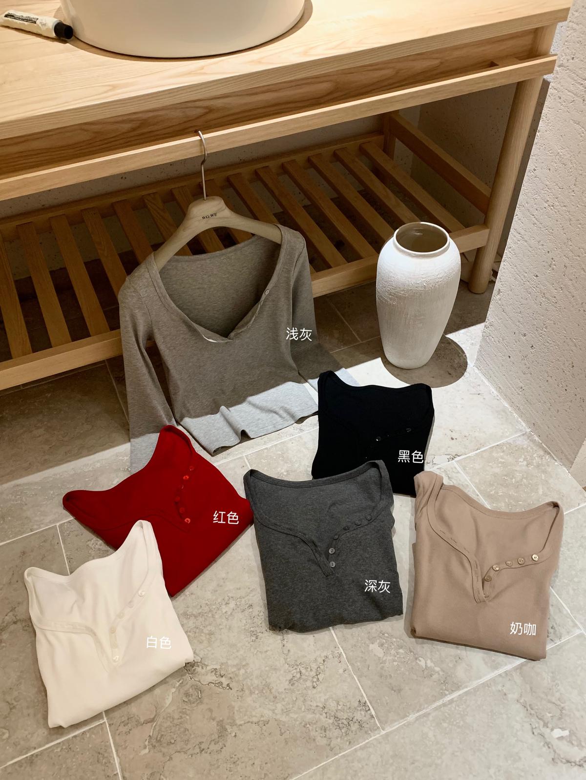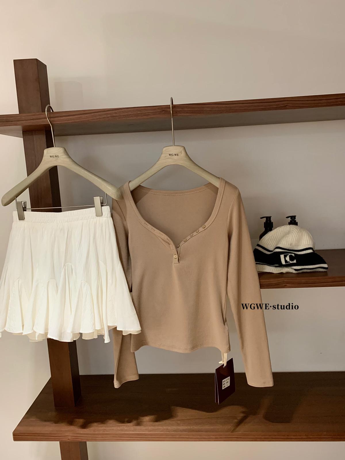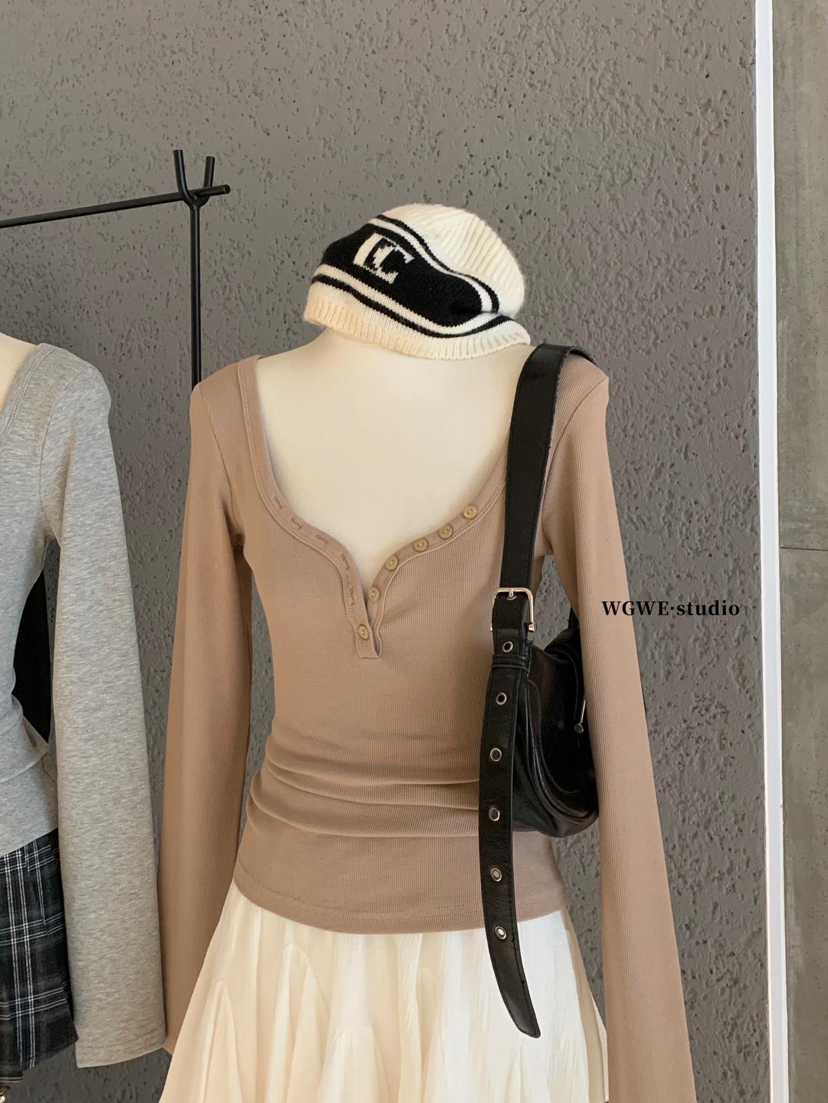 【C7712】辣妹風桃心領鈕釦長袖單穿修身顯瘦長袖T恤