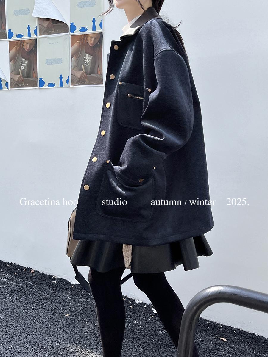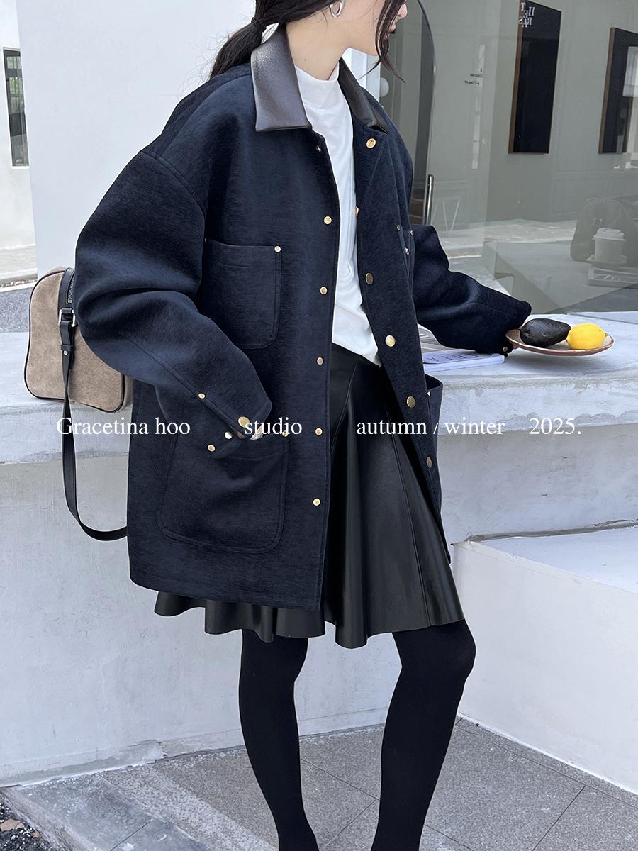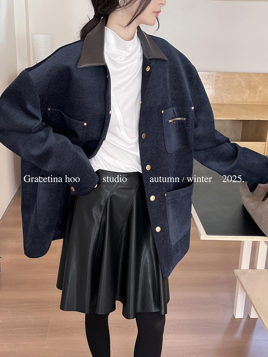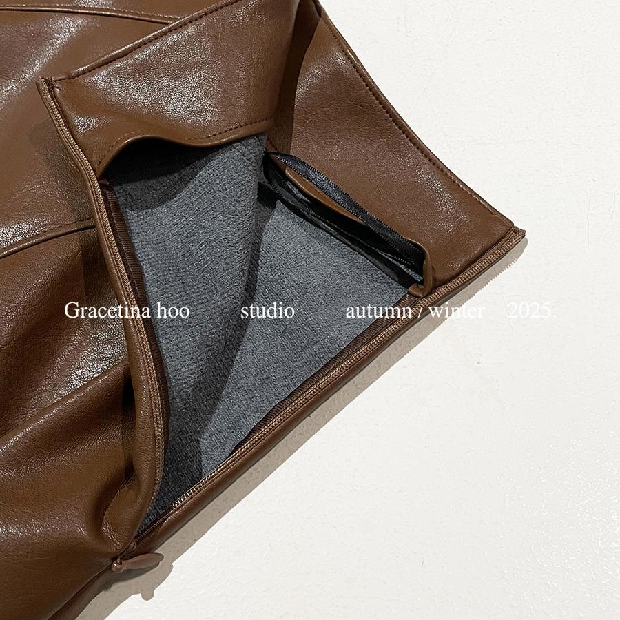 【C7717】法式重工分割立裁極簡主義慵懶鬆弛時髦百搭A擺半身裙