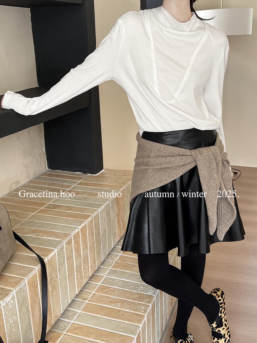 3. 【C7717】法式重工分割立裁極簡主義慵懶鬆弛時髦百搭A擺半身裙