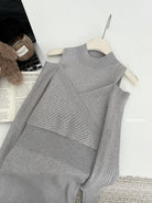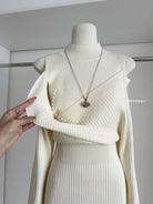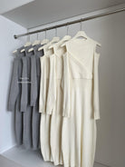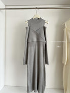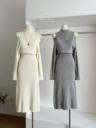 3. 【C7719】韓系氣質收腰針織設計感露肩假兩件長裙連衣裙