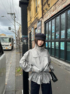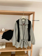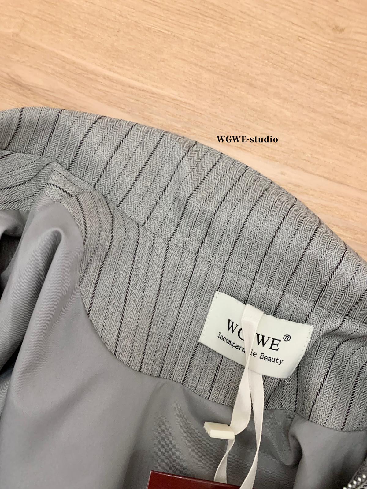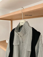 【C7758】復古條紋立領長袖開衫外套美式寬鬆休閒氣質夾克