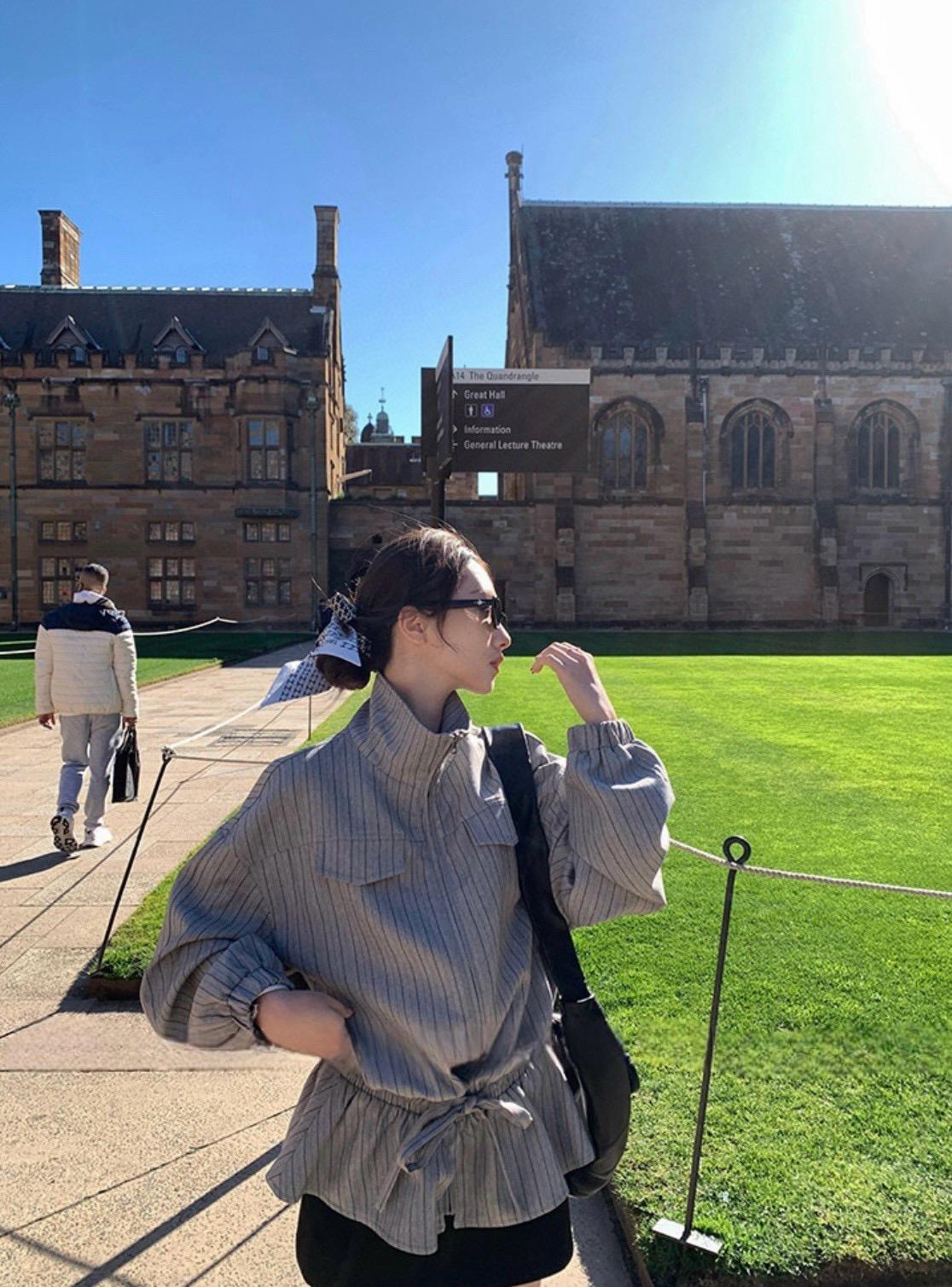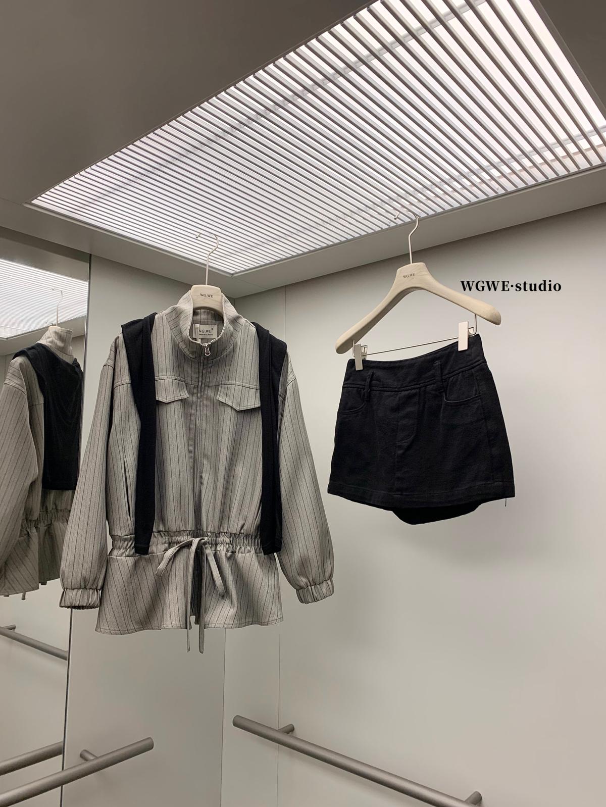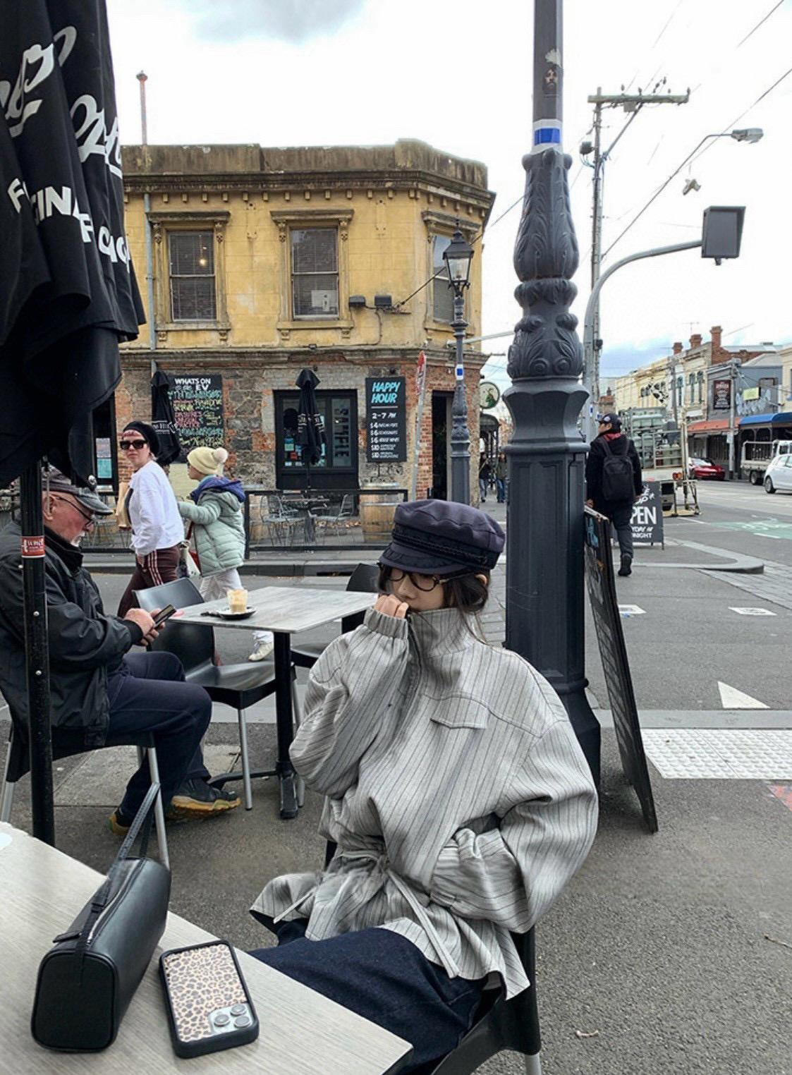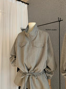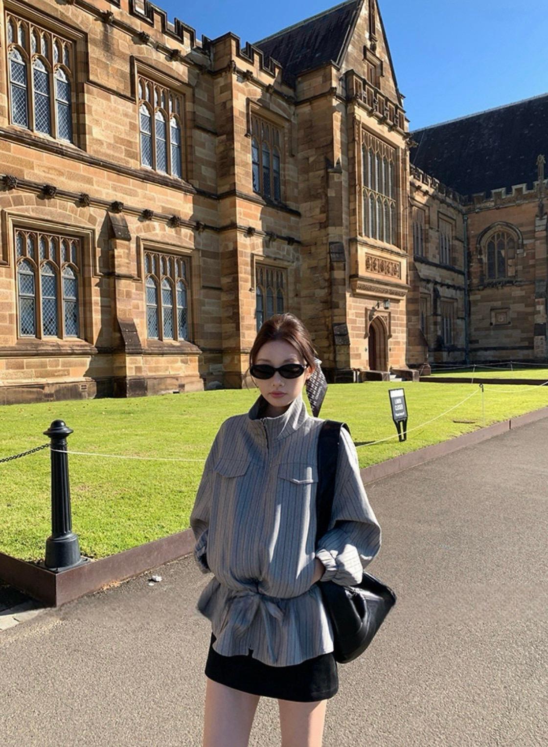 3. 【C7758】復古條紋立領長袖開衫外套美式寬鬆休閒氣質夾克