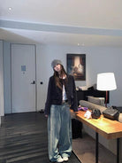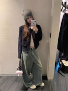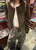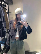 【C7761】韓版寬鬆休閒百搭圓領單排扣小香風短外套