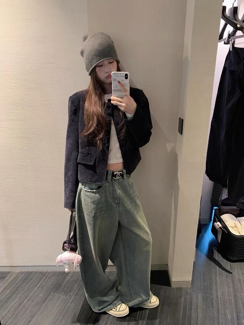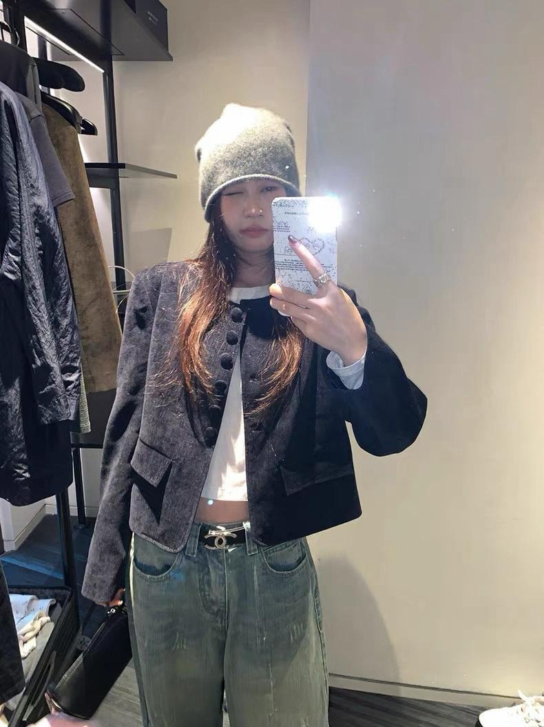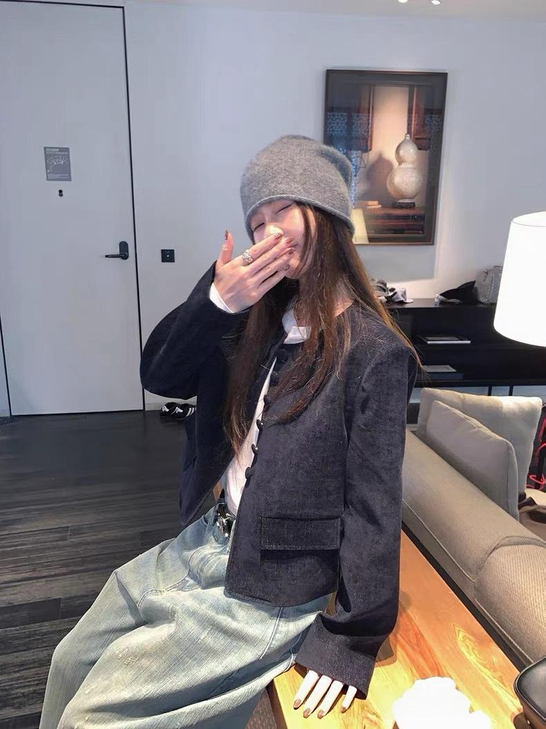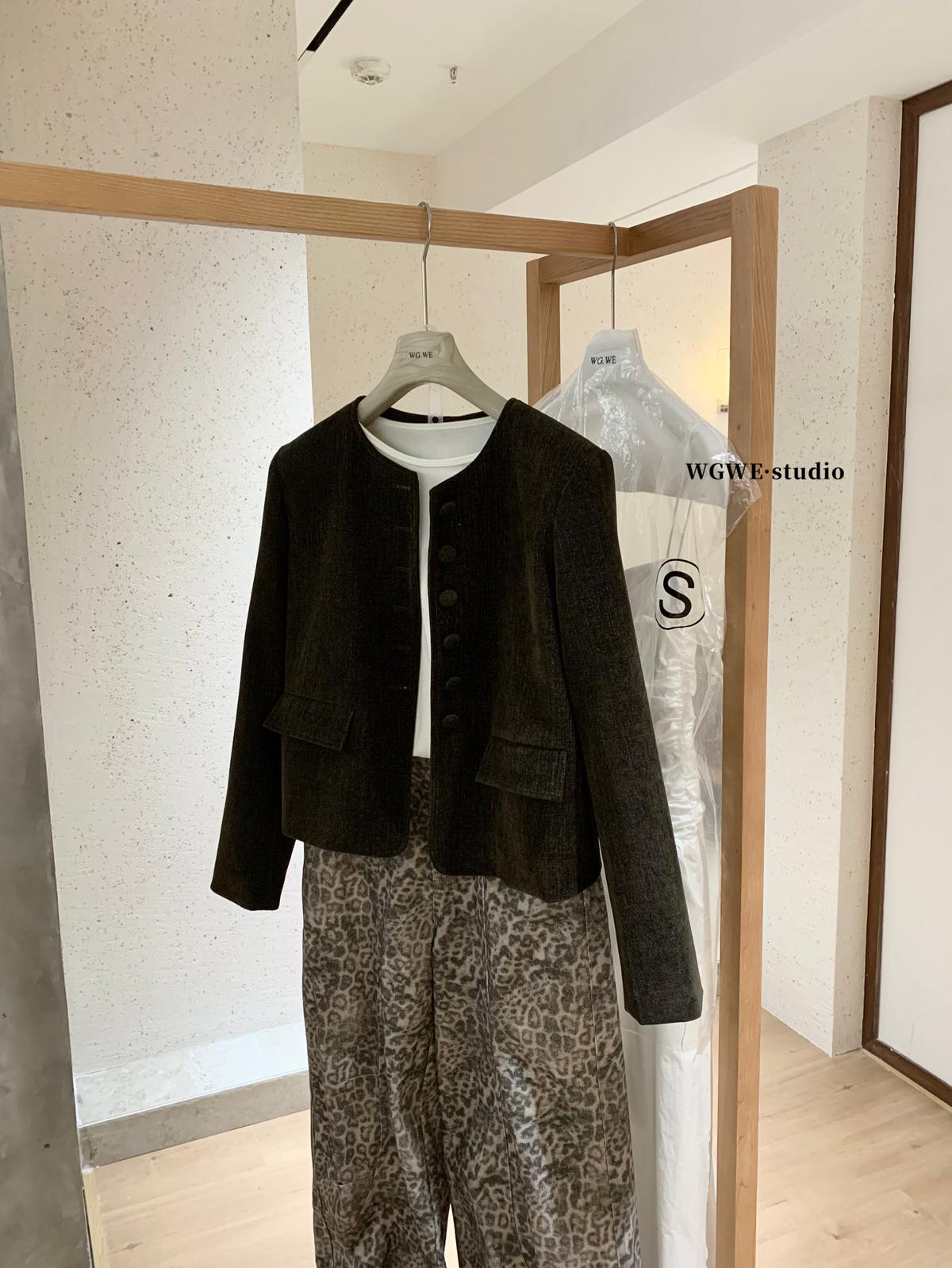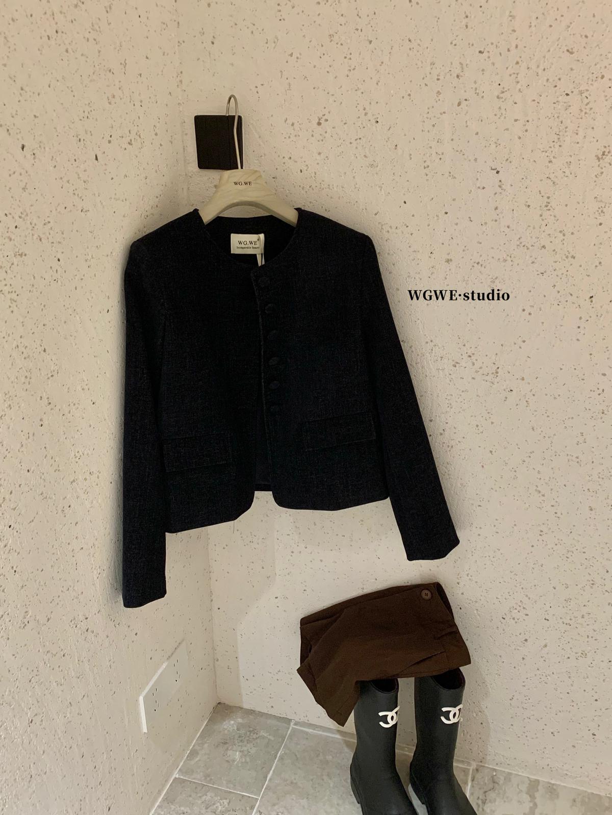 3. 【C7761】韓版寬鬆休閒百搭圓領單排扣小香風短外套