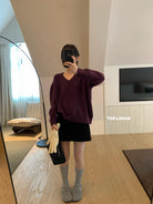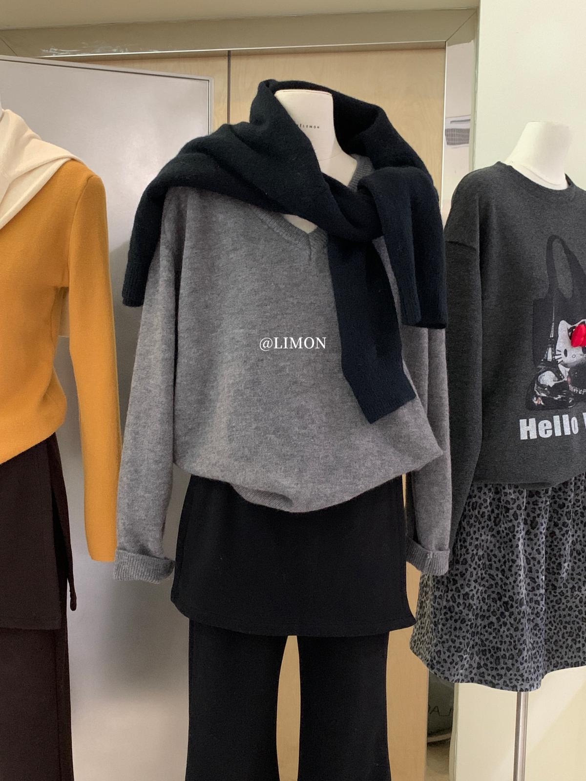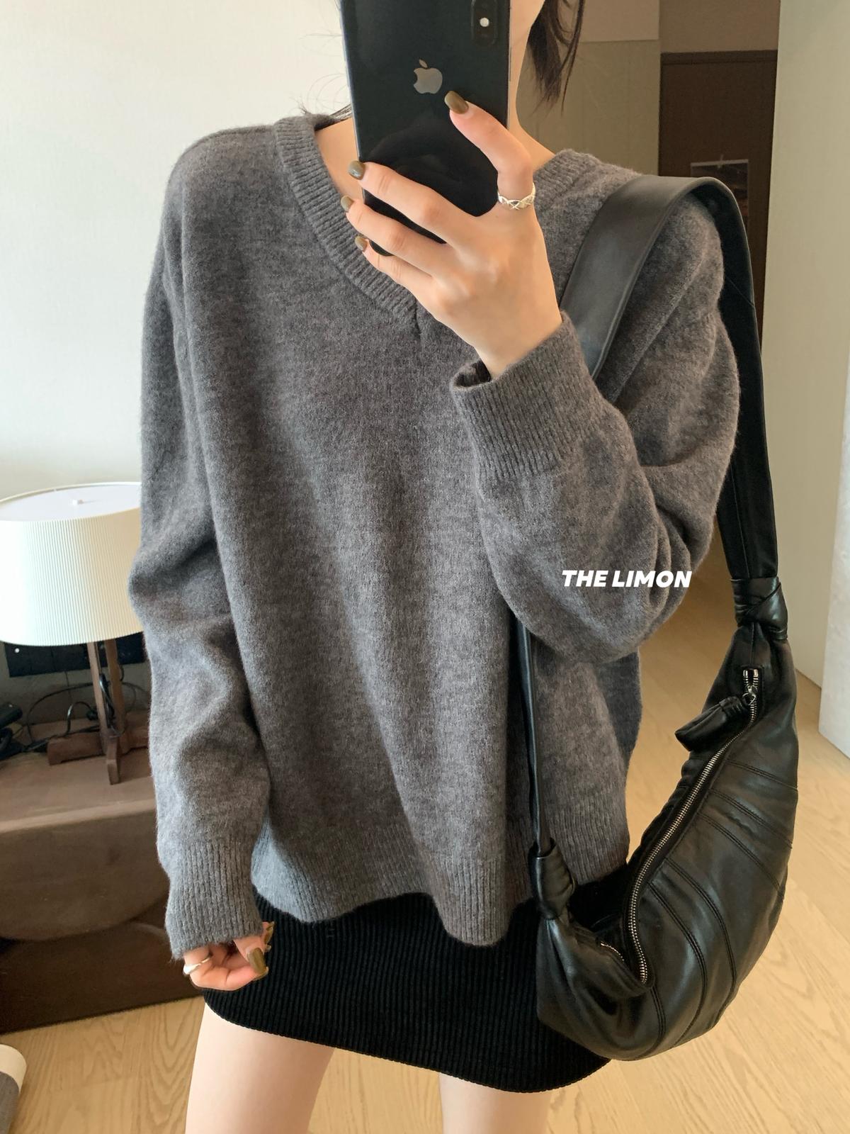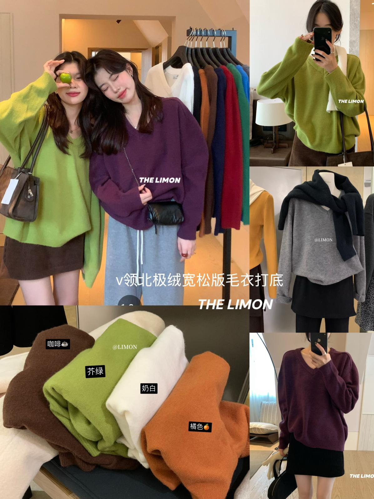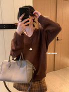 【C7764】人手一件!質感V領寬鬆北極絨保暖毛衣