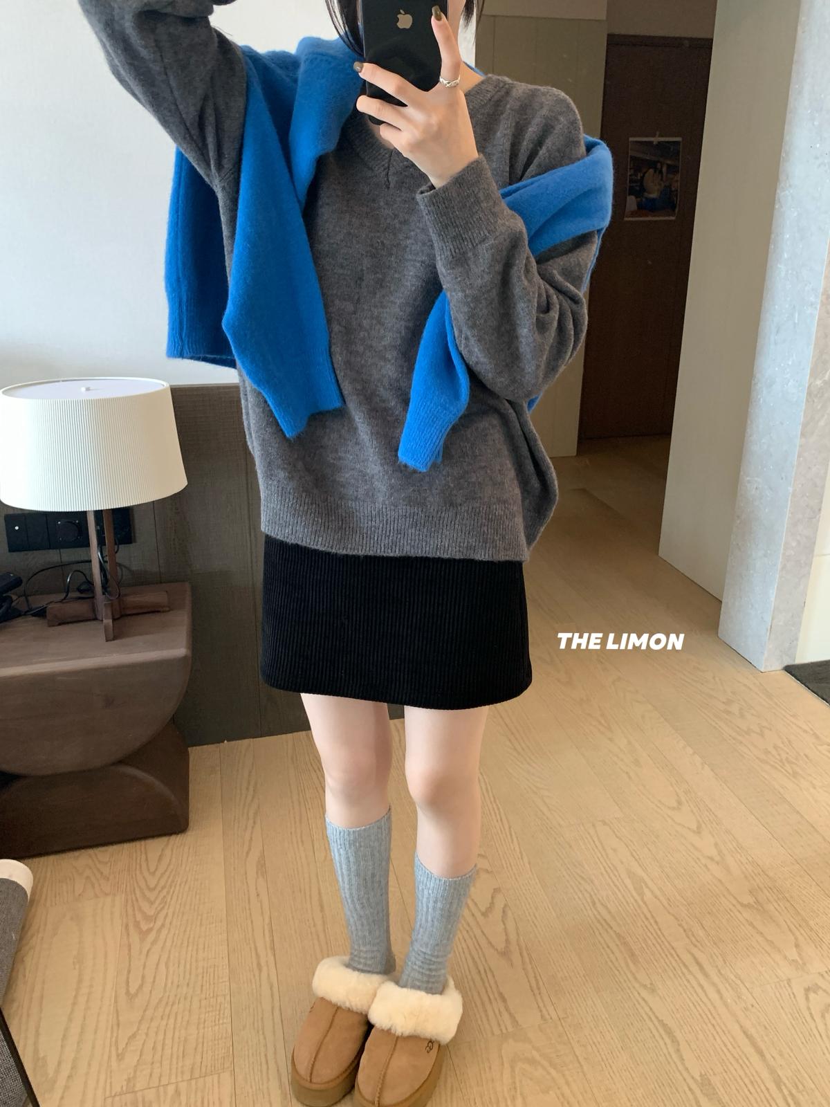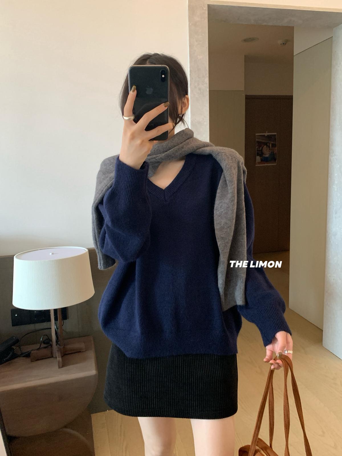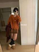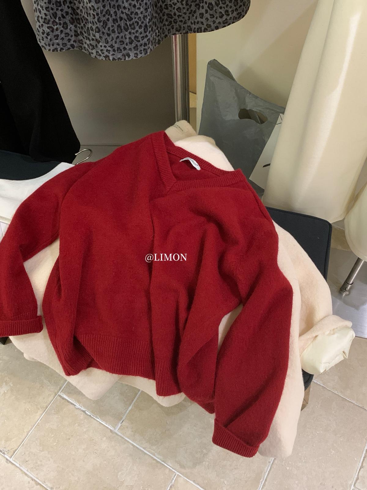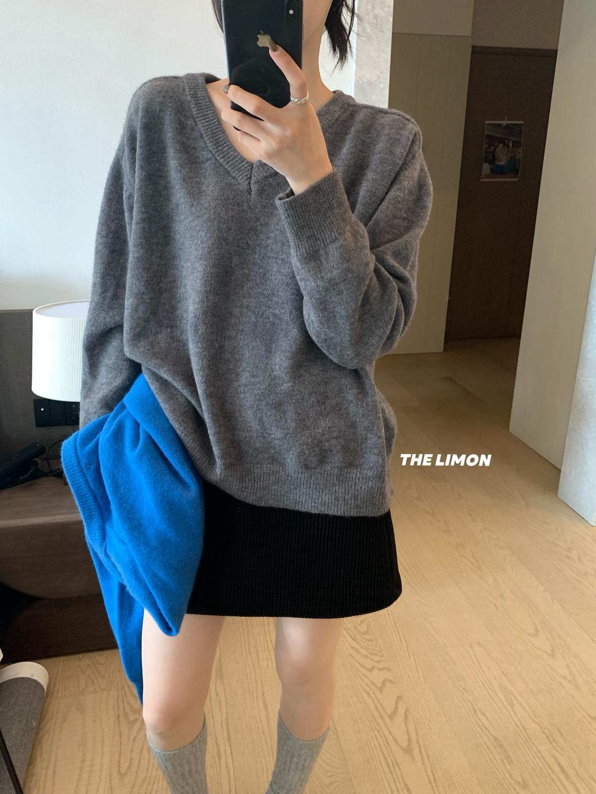 【C7764】人手一件!質感V領寬鬆北極絨保暖毛衣