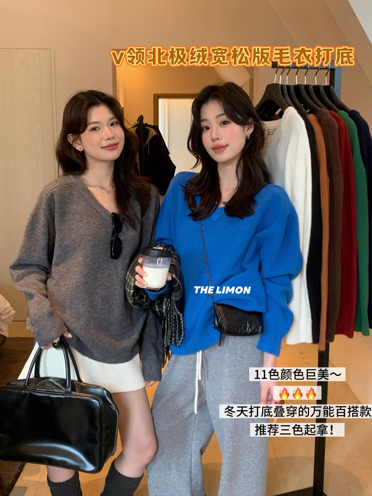 3. 【C7764】人手一件!質感V領寬鬆北極絨保暖毛衣