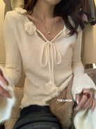 【C7774】法式立體花朵羊駝毛針織衫(含8%羊毛)