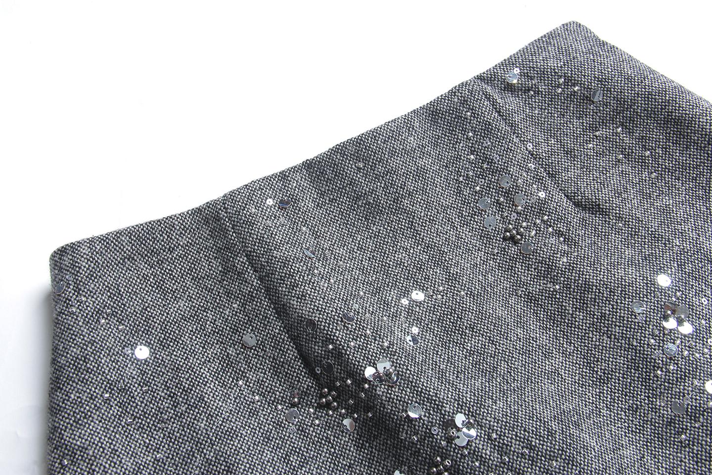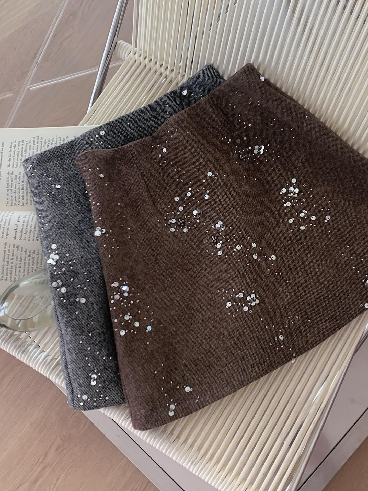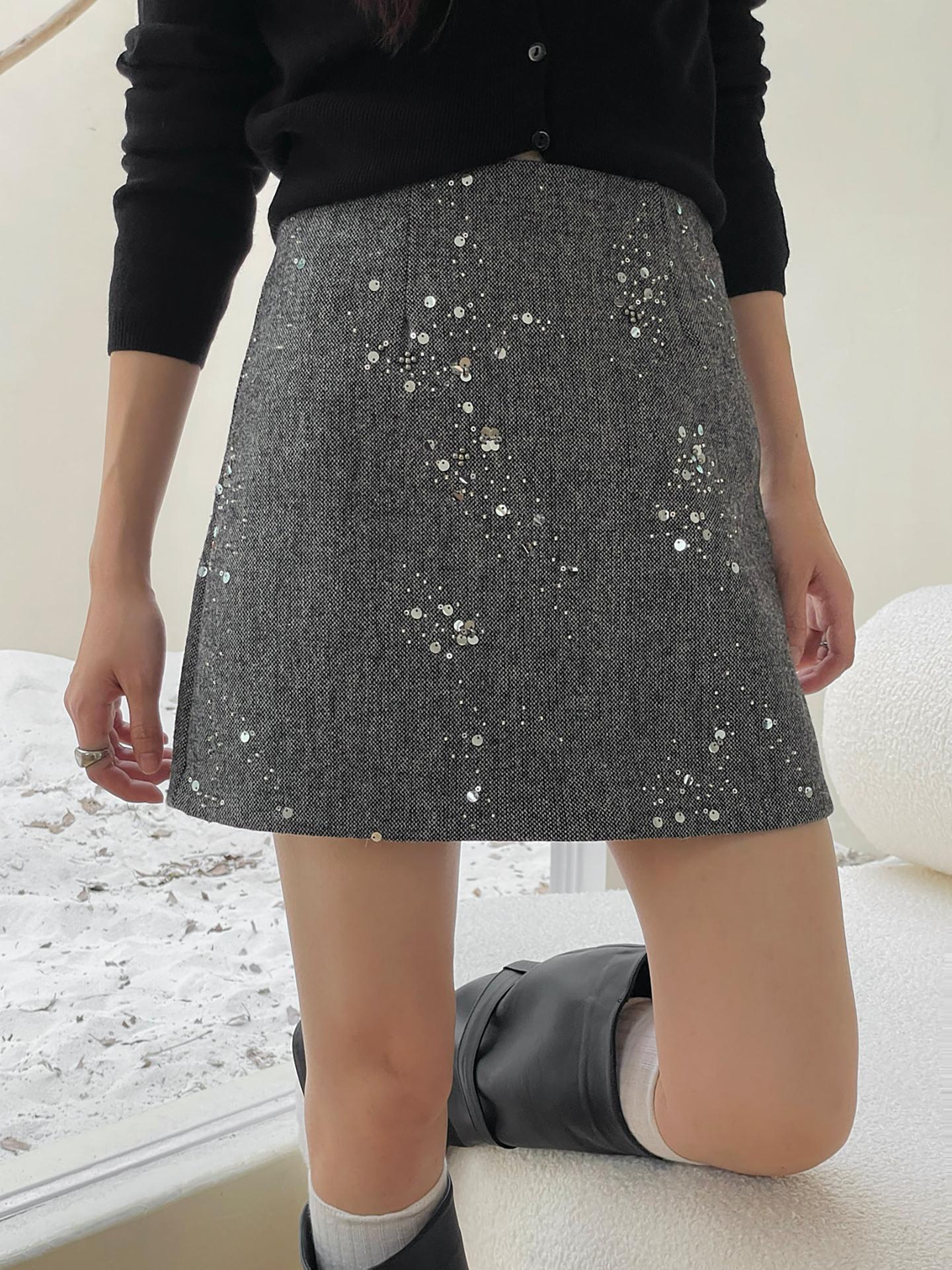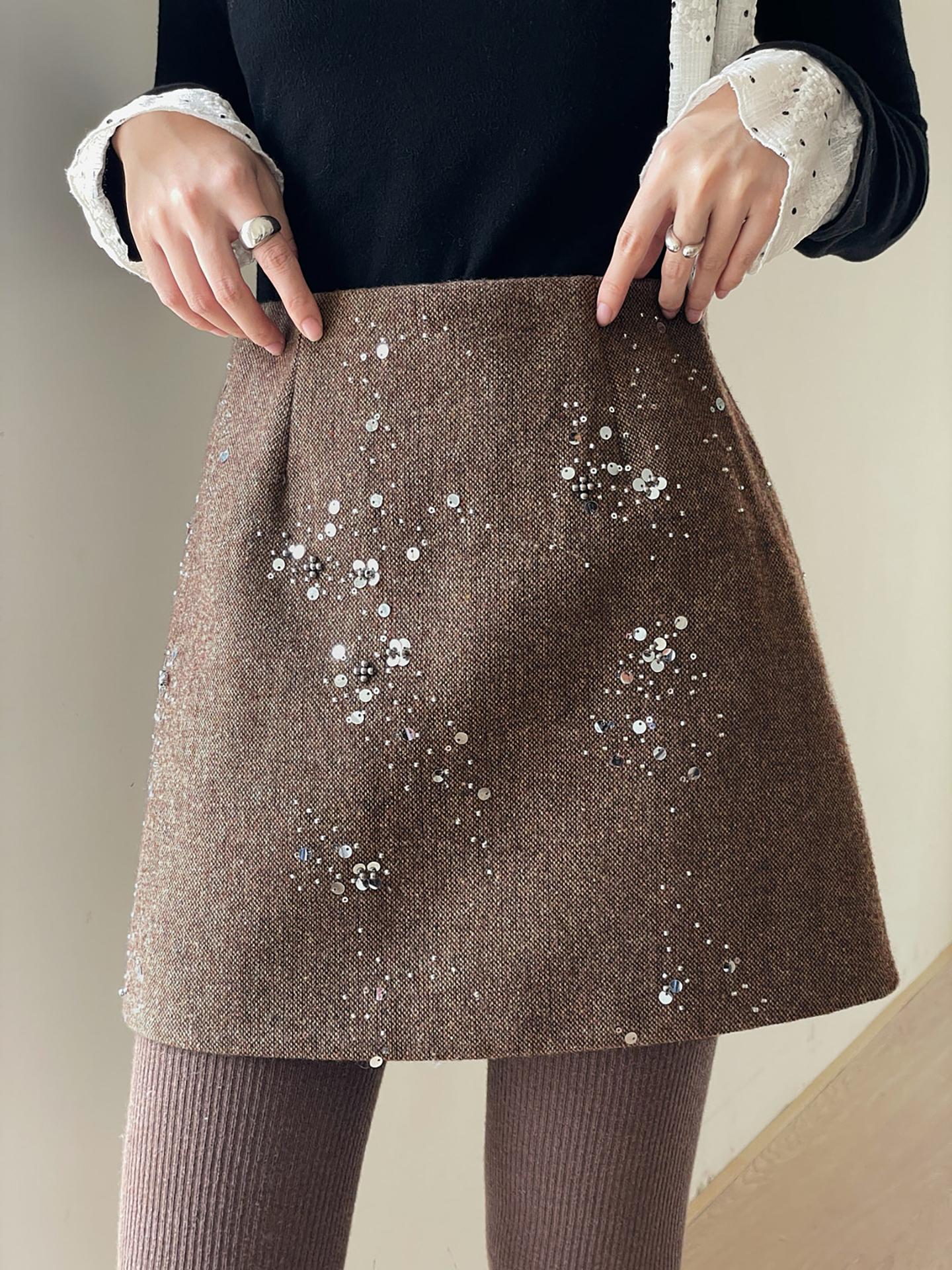 3. 【C7779】冬上新!復古重工亮片a字包臀短裙高腰半身裙(含20%羊毛)