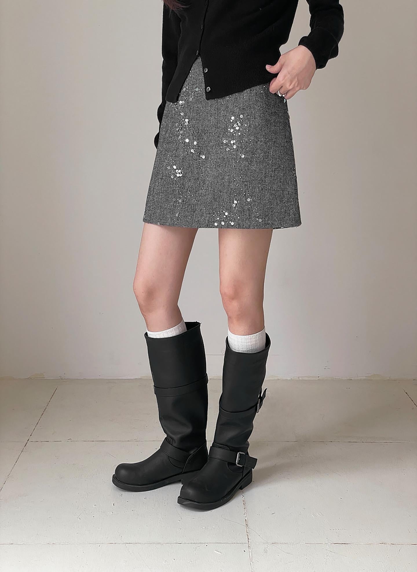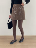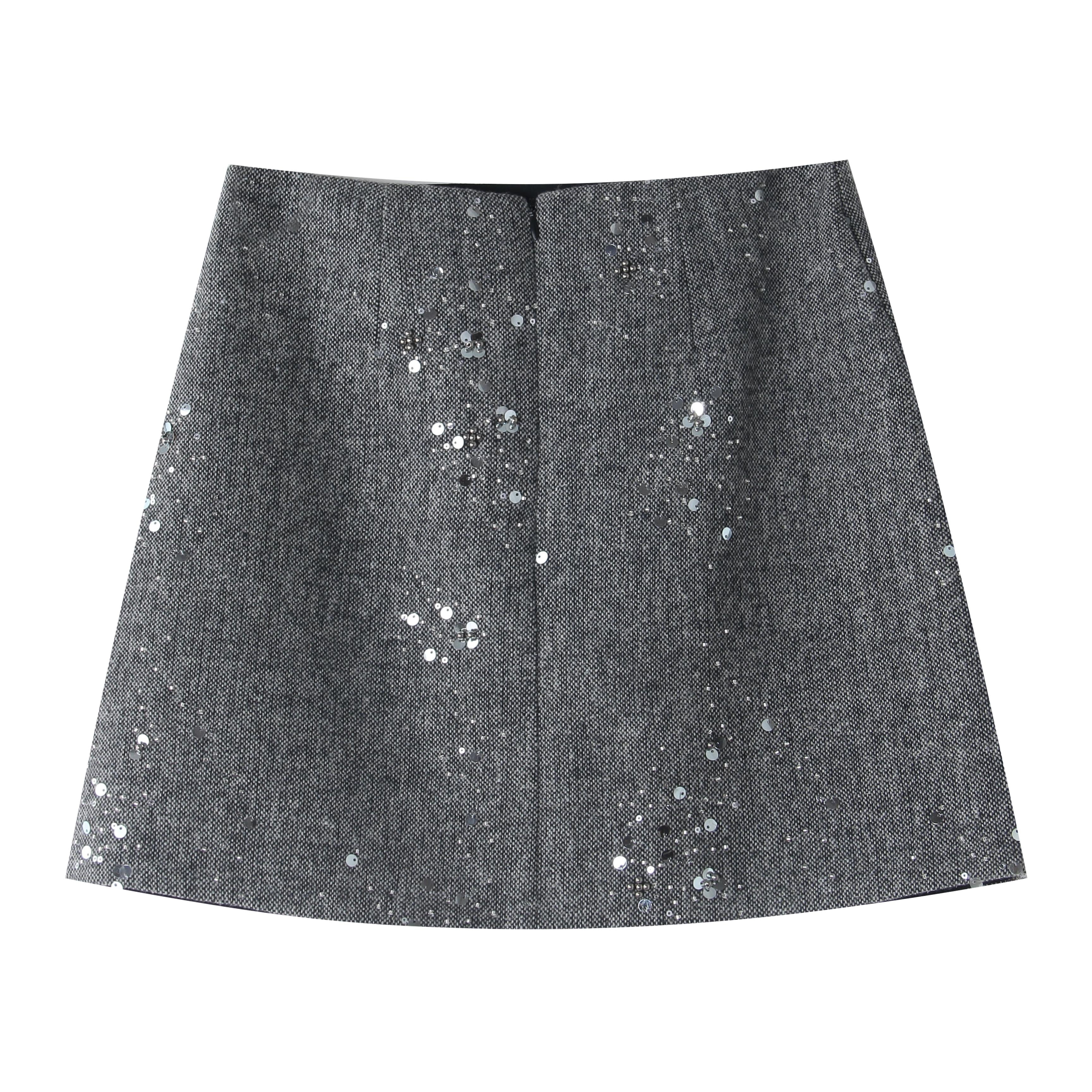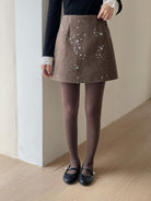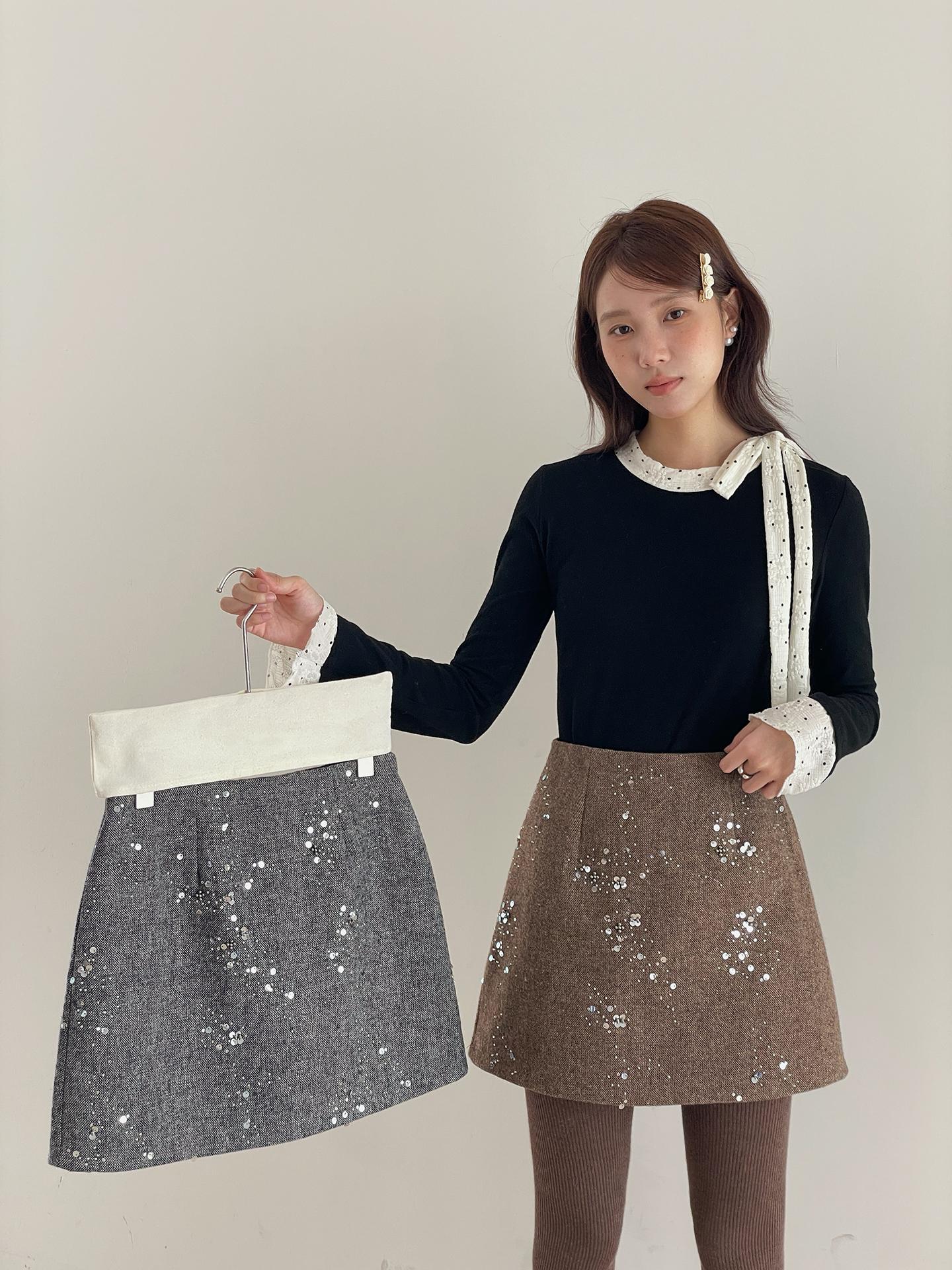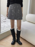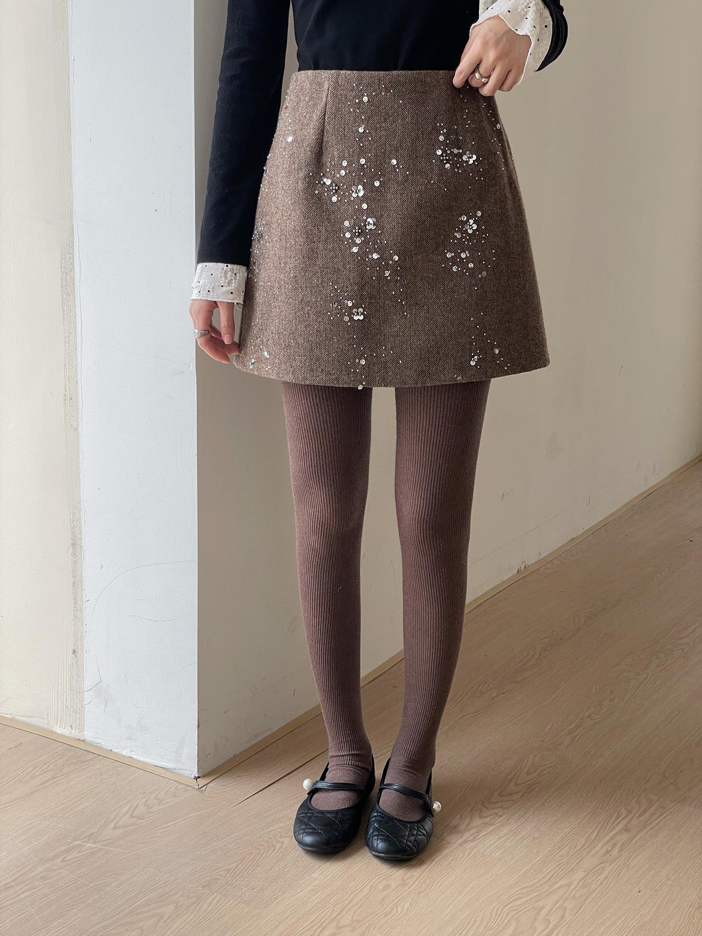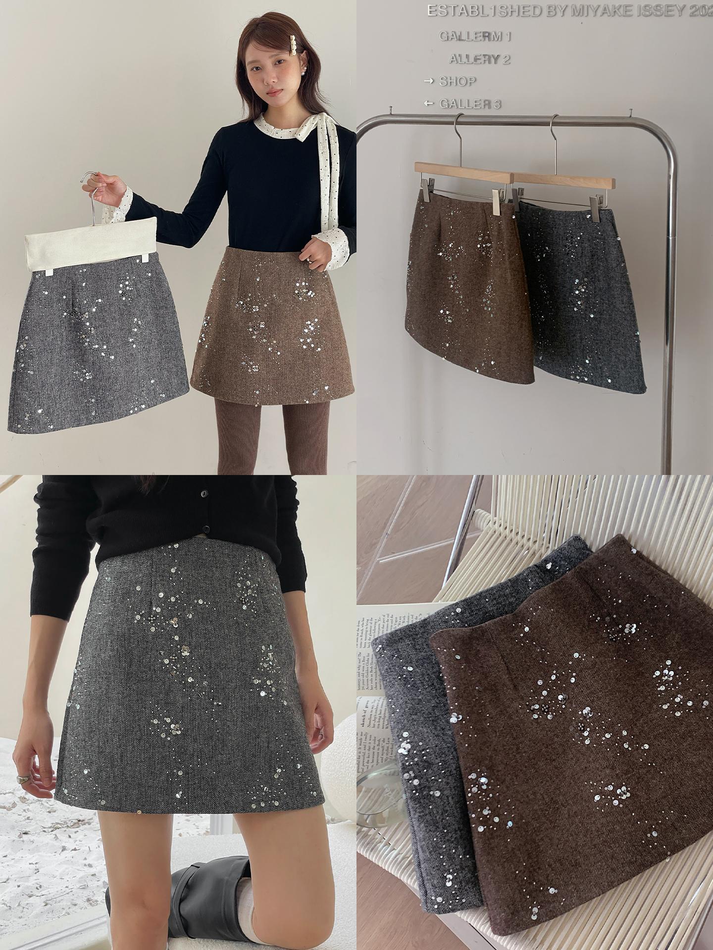 3. 【C7779】冬上新!復古重工亮片a字包臀短裙高腰半身裙(含20%羊毛)