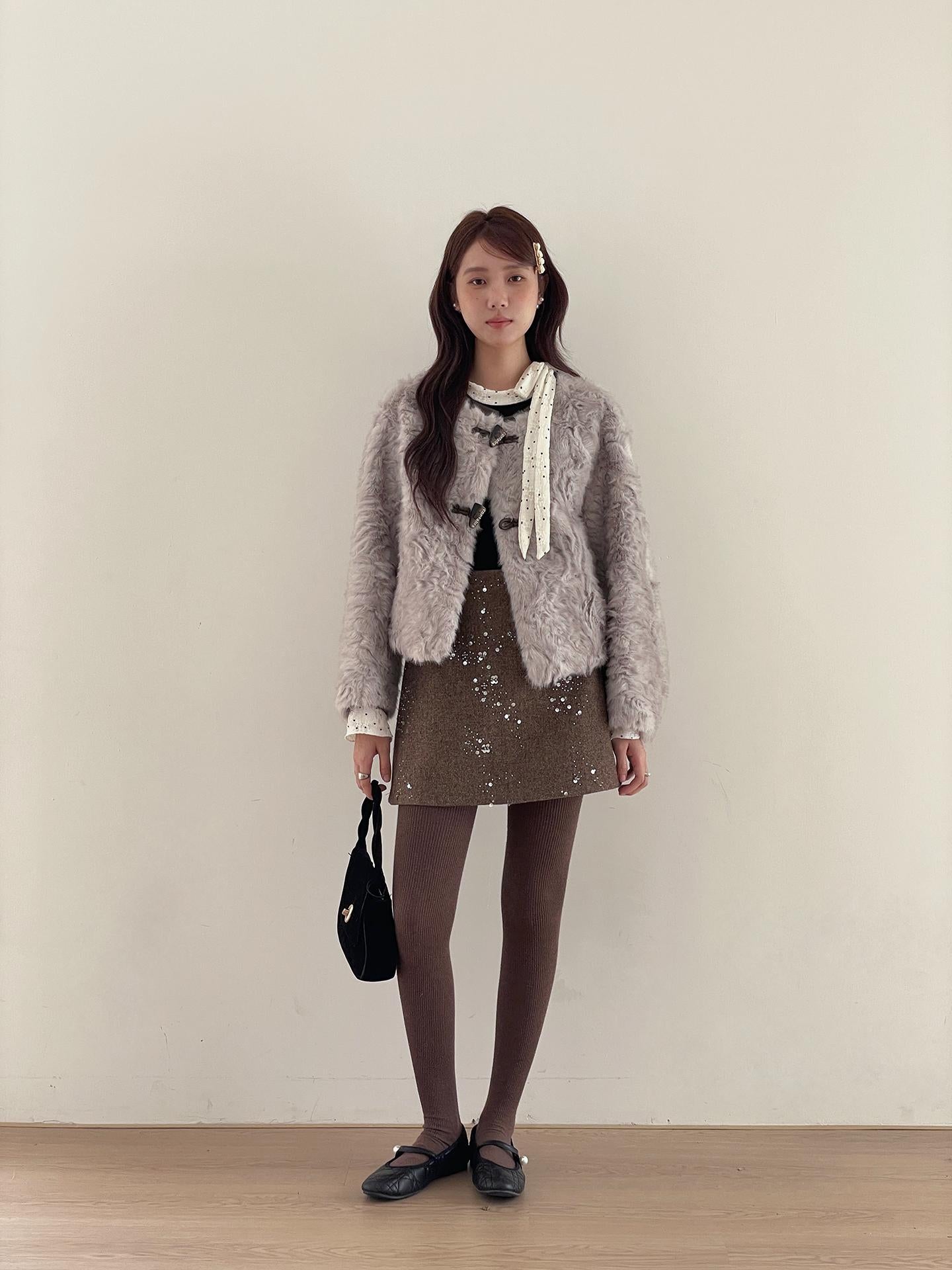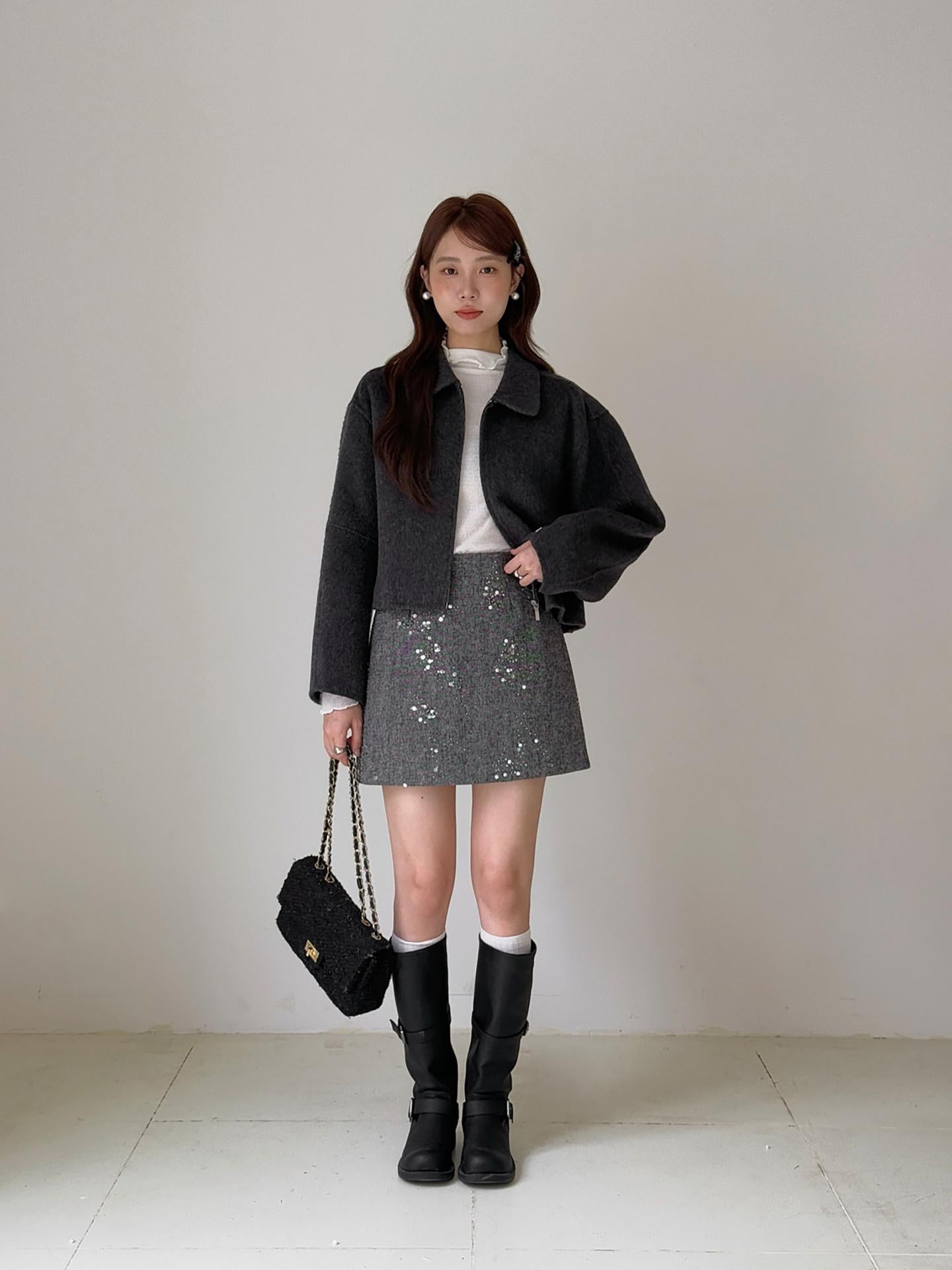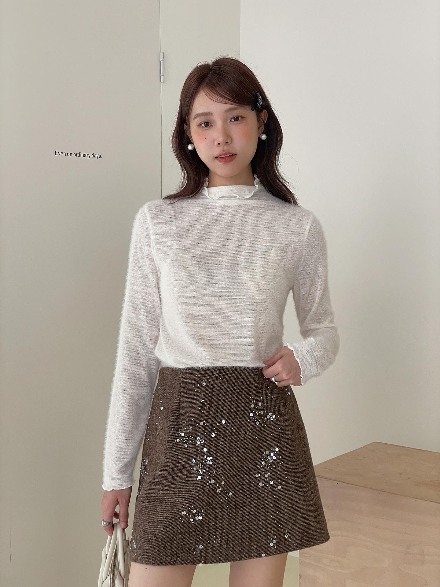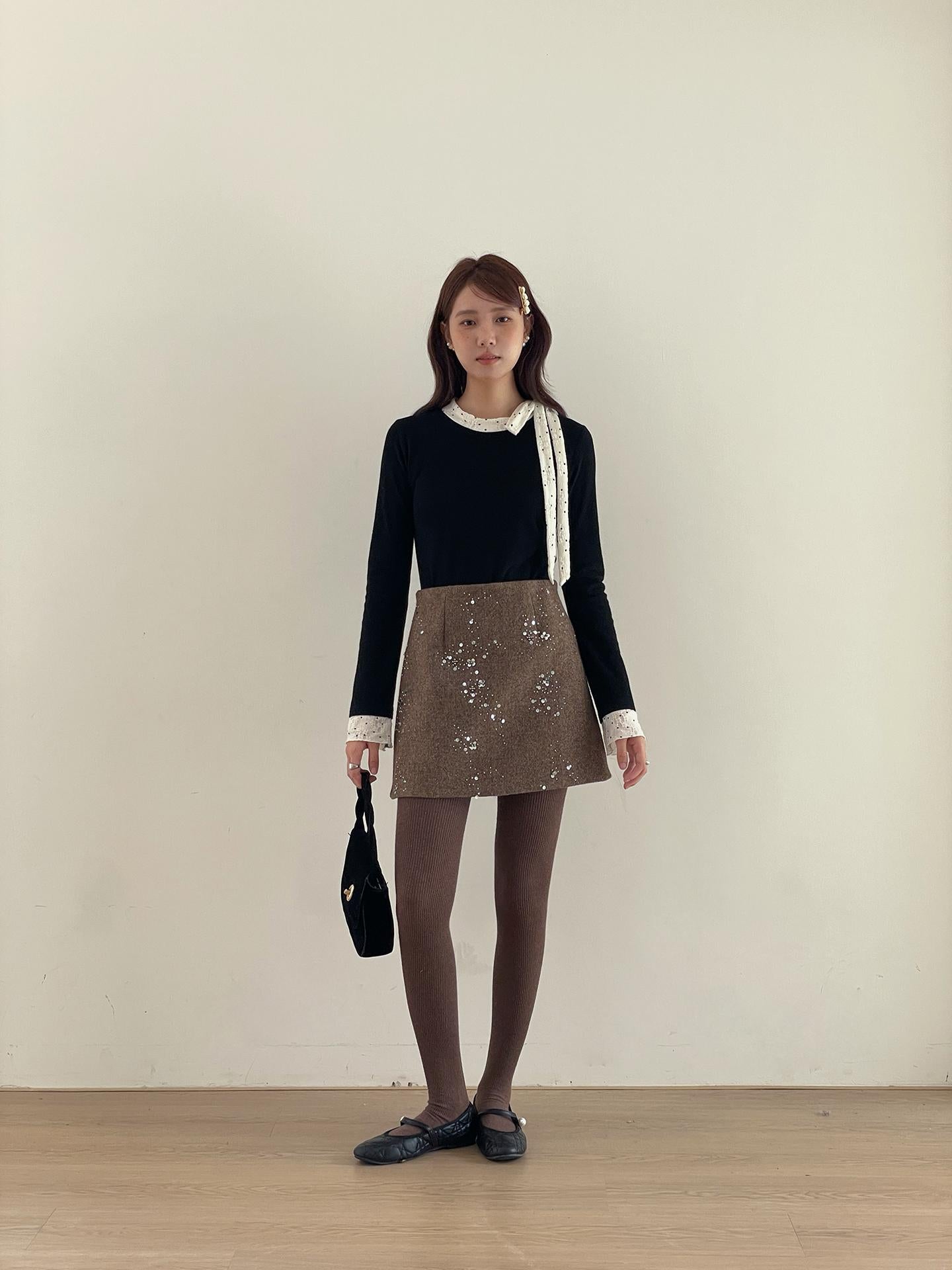 3. 【C7779】冬上新!復古重工亮片a字包臀短裙高腰半身裙(含20%羊毛)