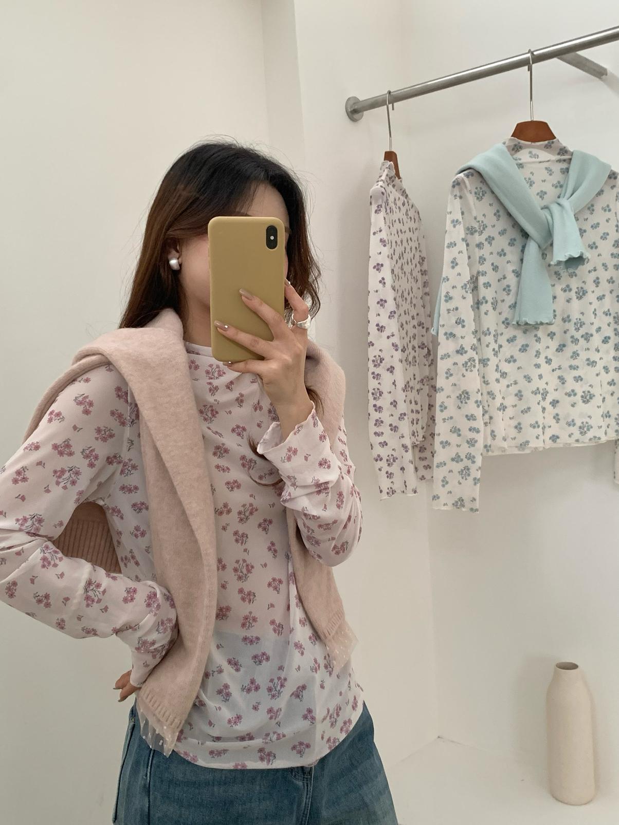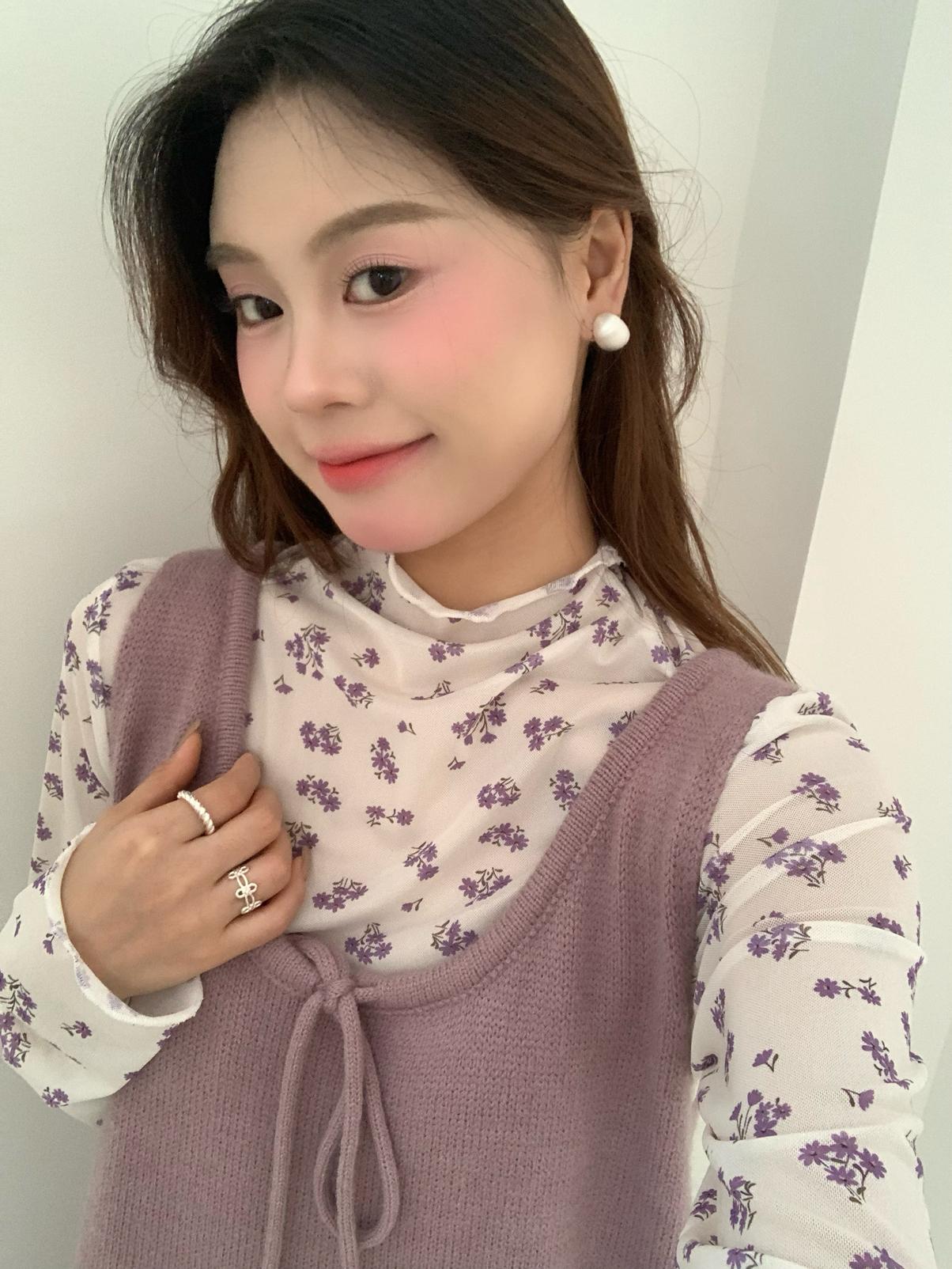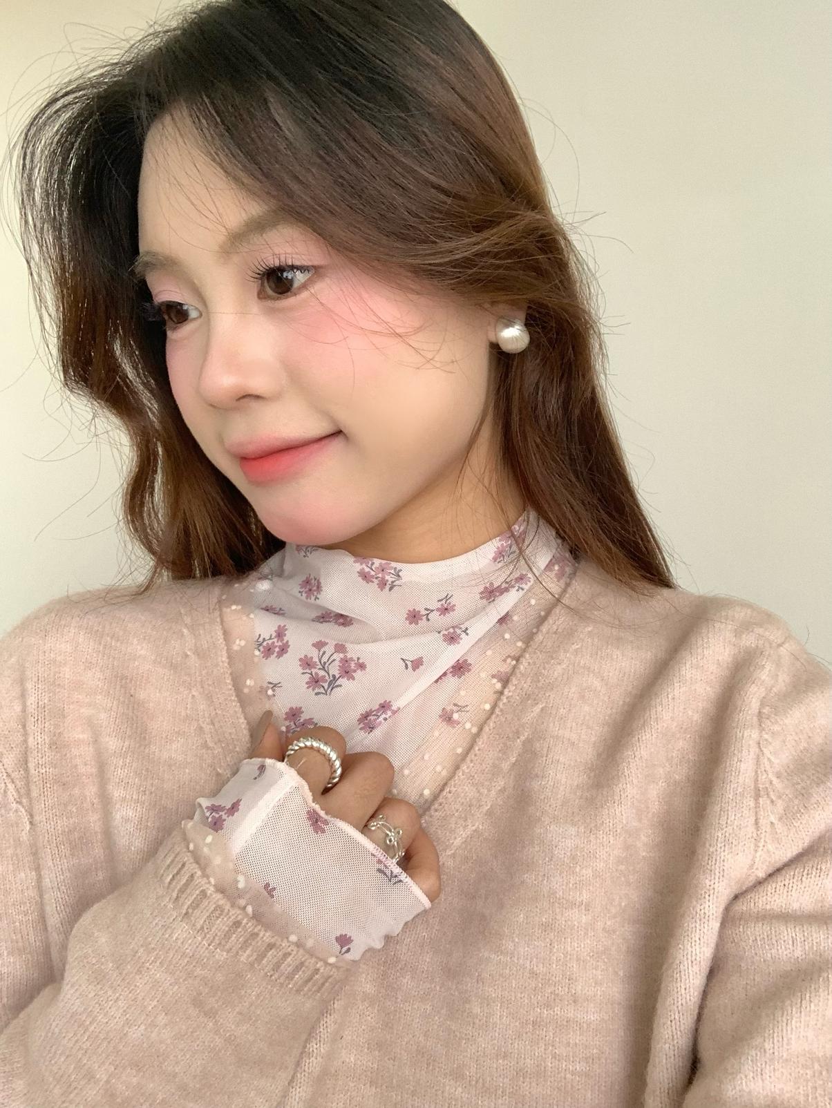 3. 【C7780】韓系簡約氣質疊穿內搭碎花蕾絲衫女秋新款套頭長袖上衣打底衫