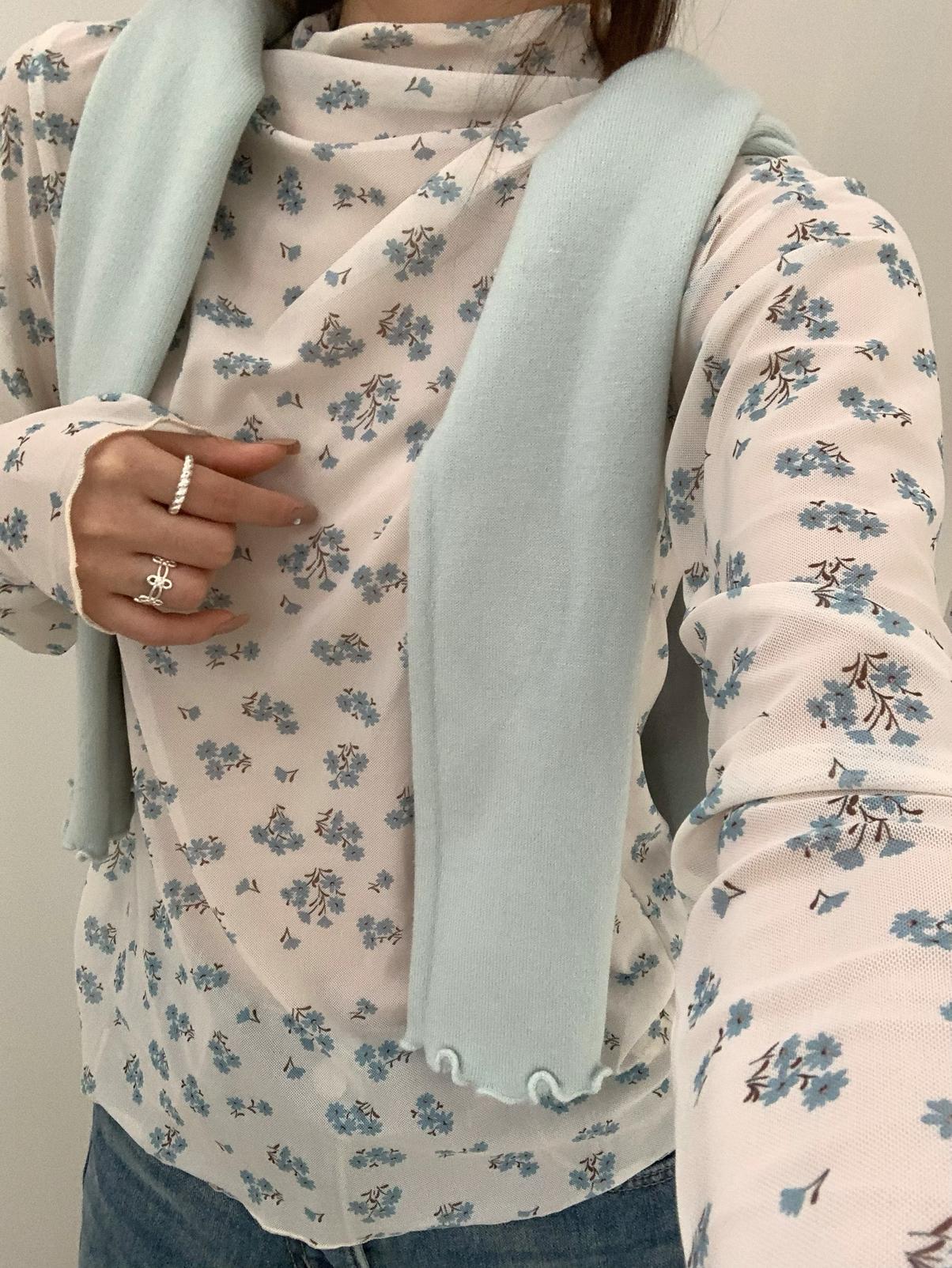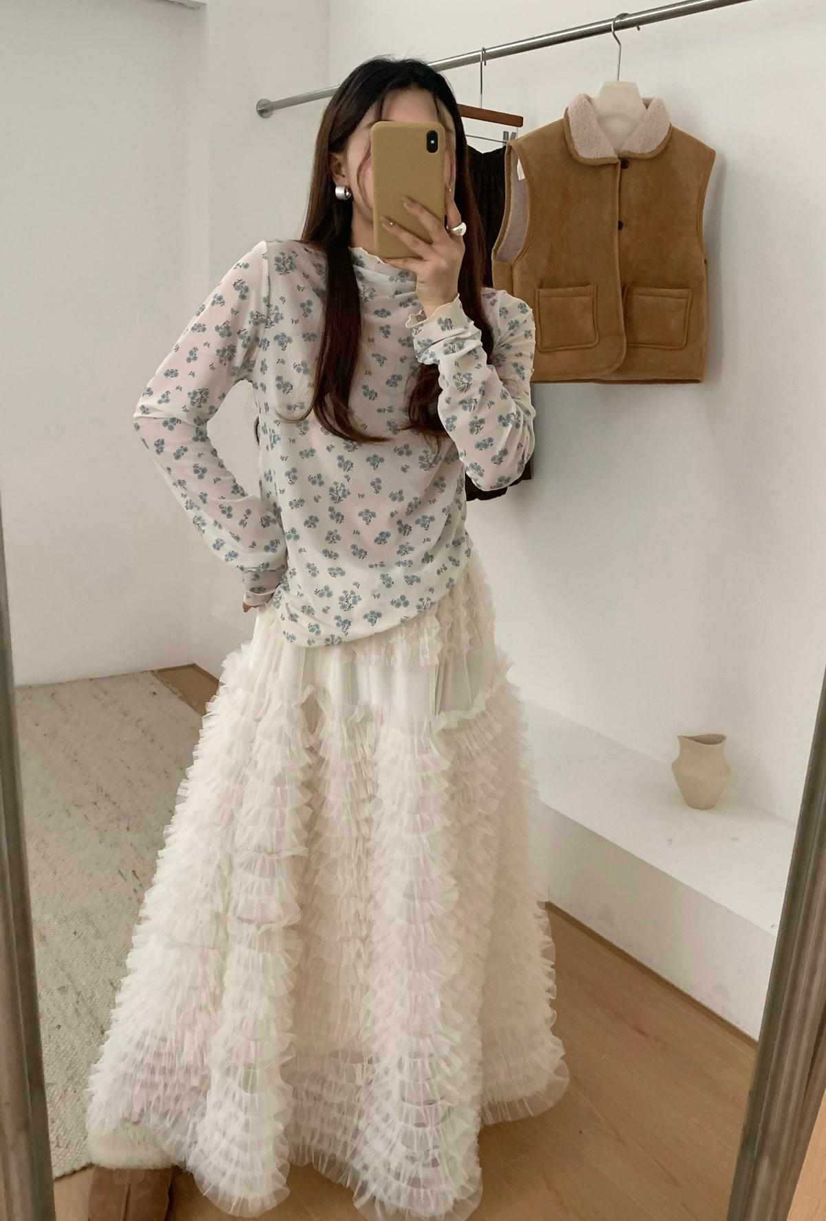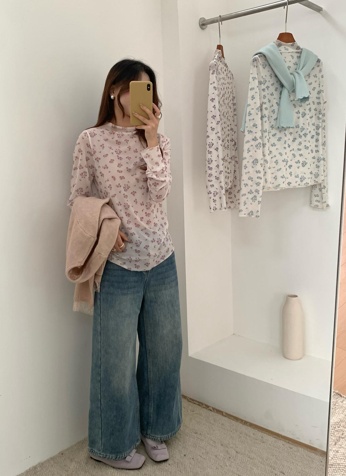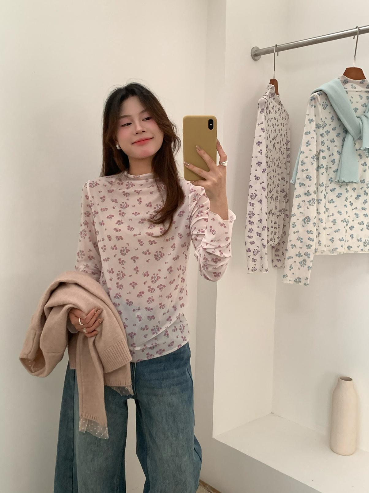 3. 【C7780】韓系簡約氣質疊穿內搭碎花蕾絲衫女秋新款套頭長袖上衣打底衫