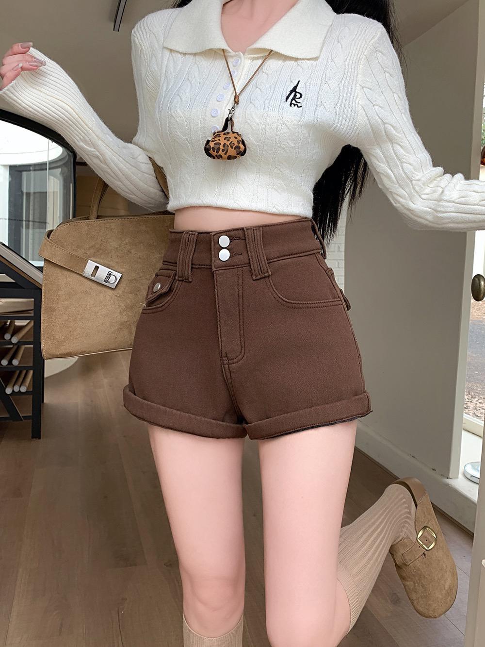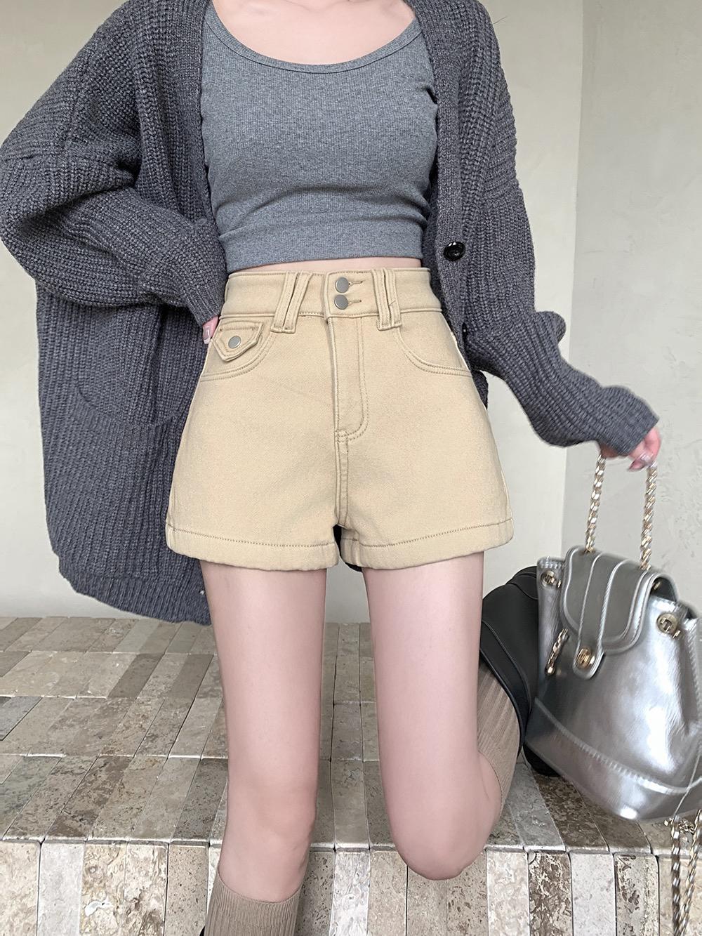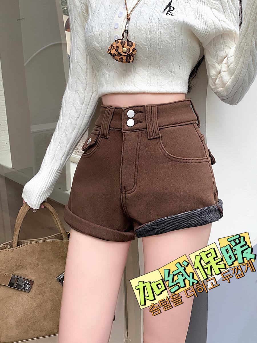 【C7796】2025年冬新款韓版純色百搭加絨高腰顯瘦百搭A字褲牛仔短褲