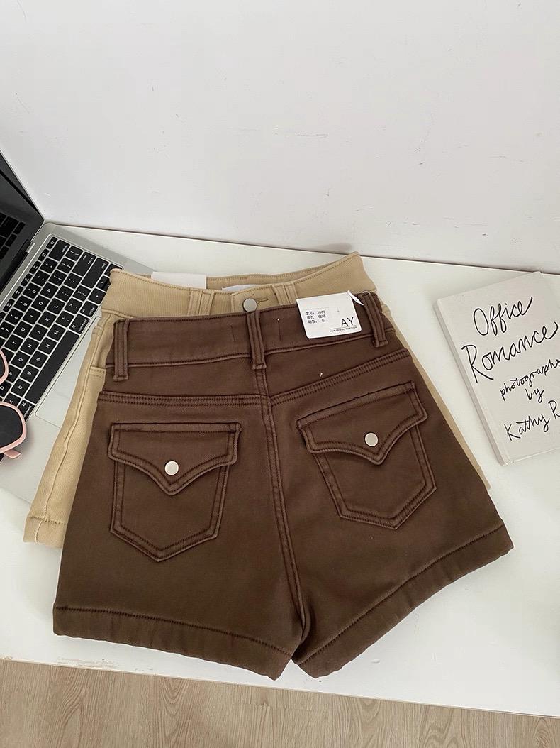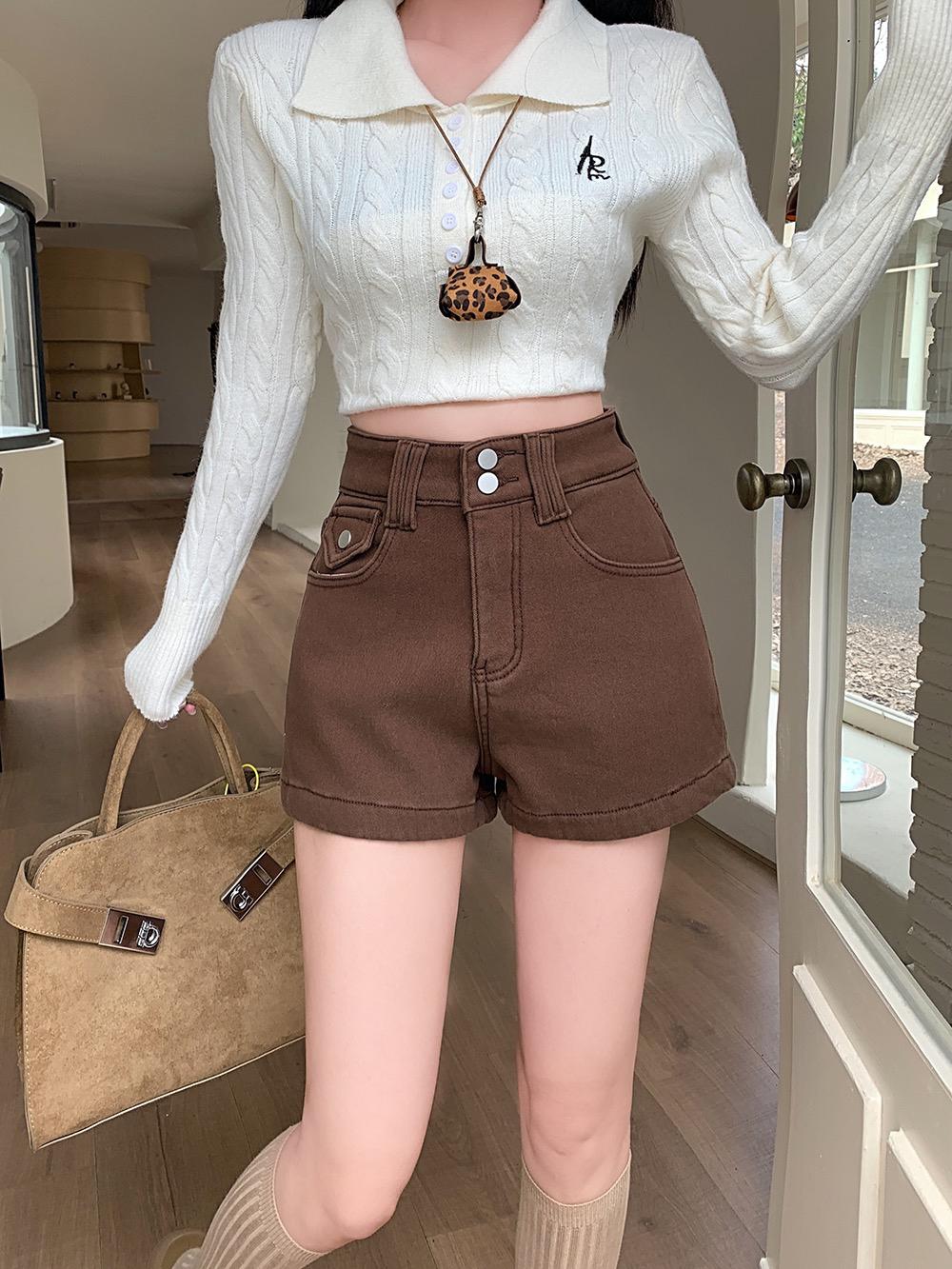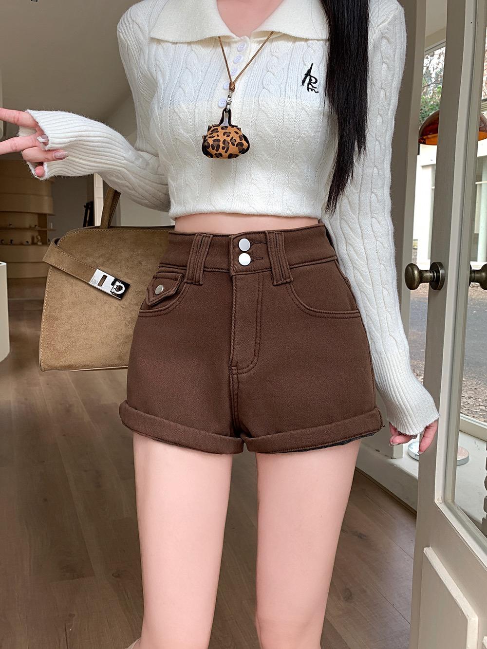 【C7796】2025年冬新款韓版純色百搭加絨高腰顯瘦百搭A字褲牛仔短褲