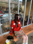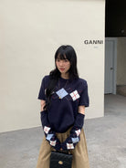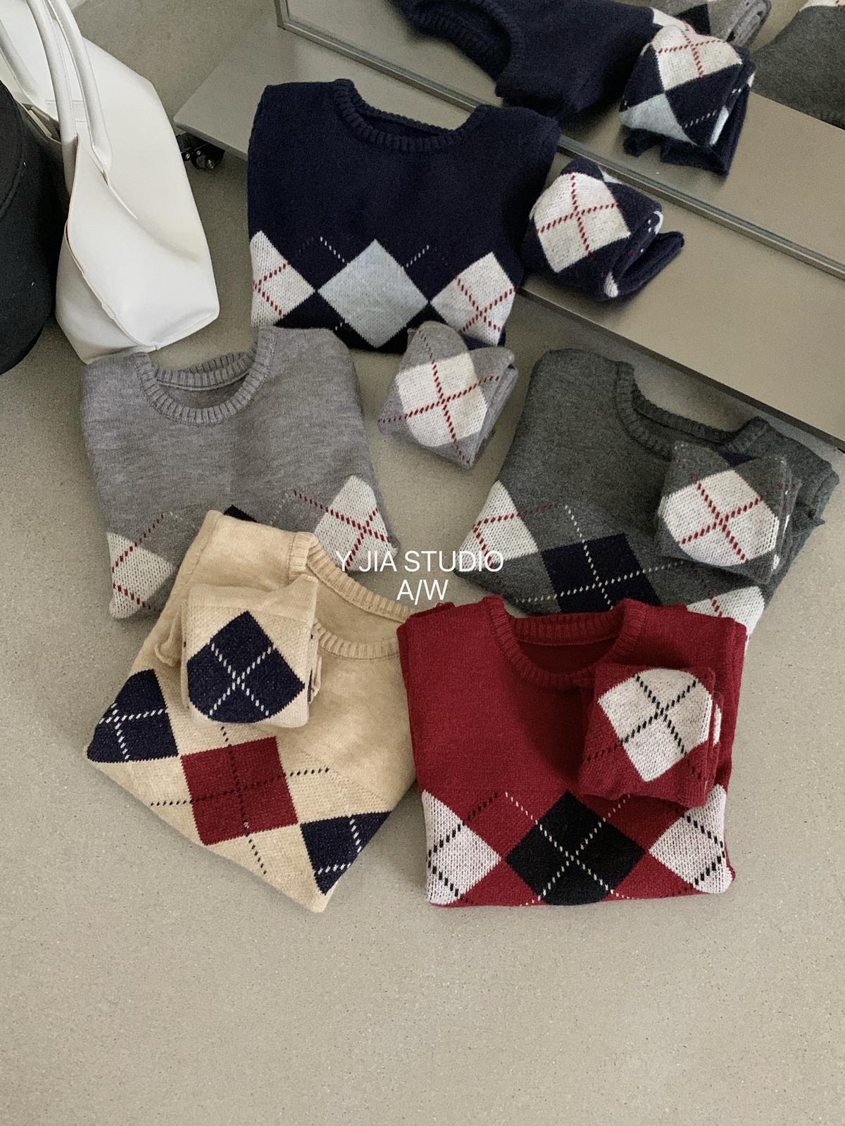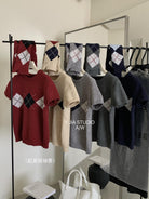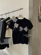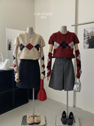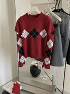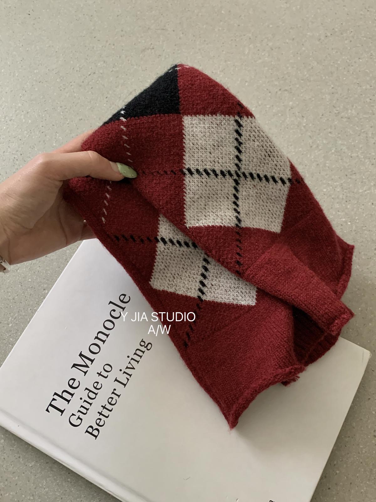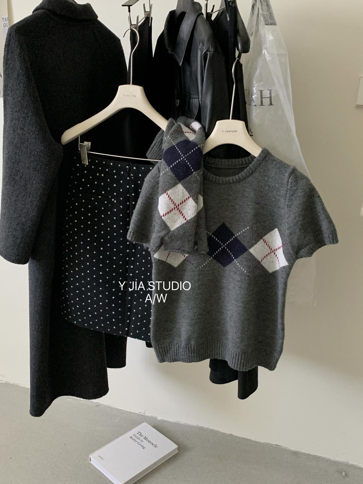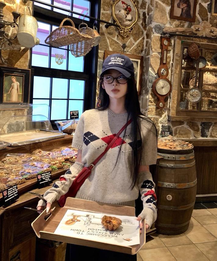 3. 【C8095】元氣歐尼~復古菱格設計感圓領短袖保暖毛衣(配袖套)