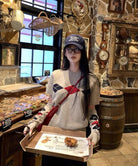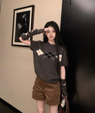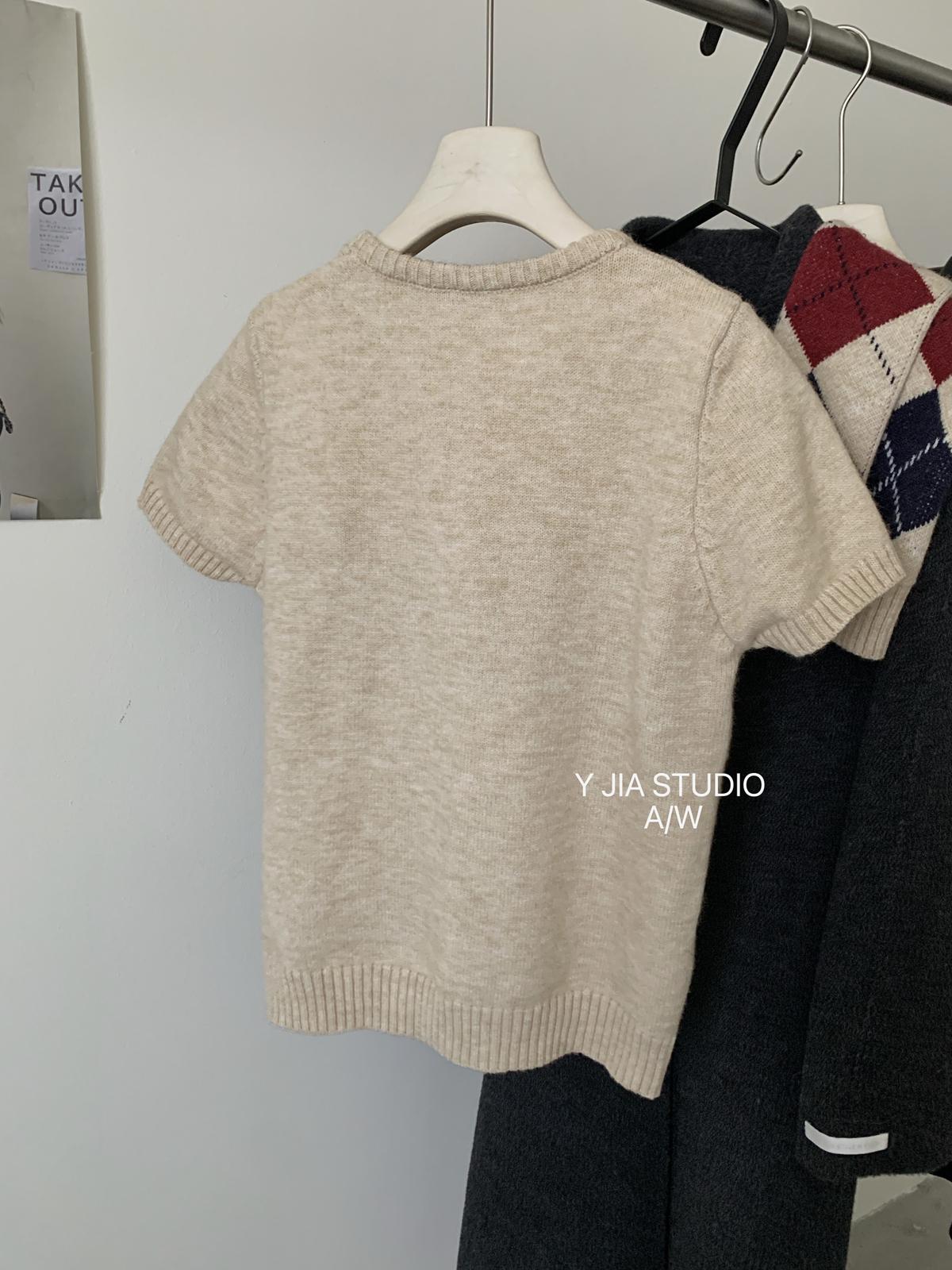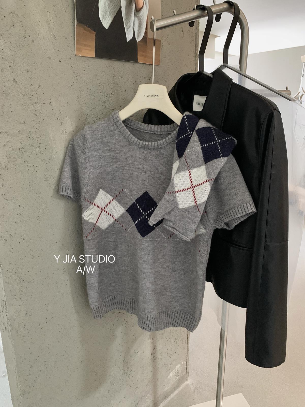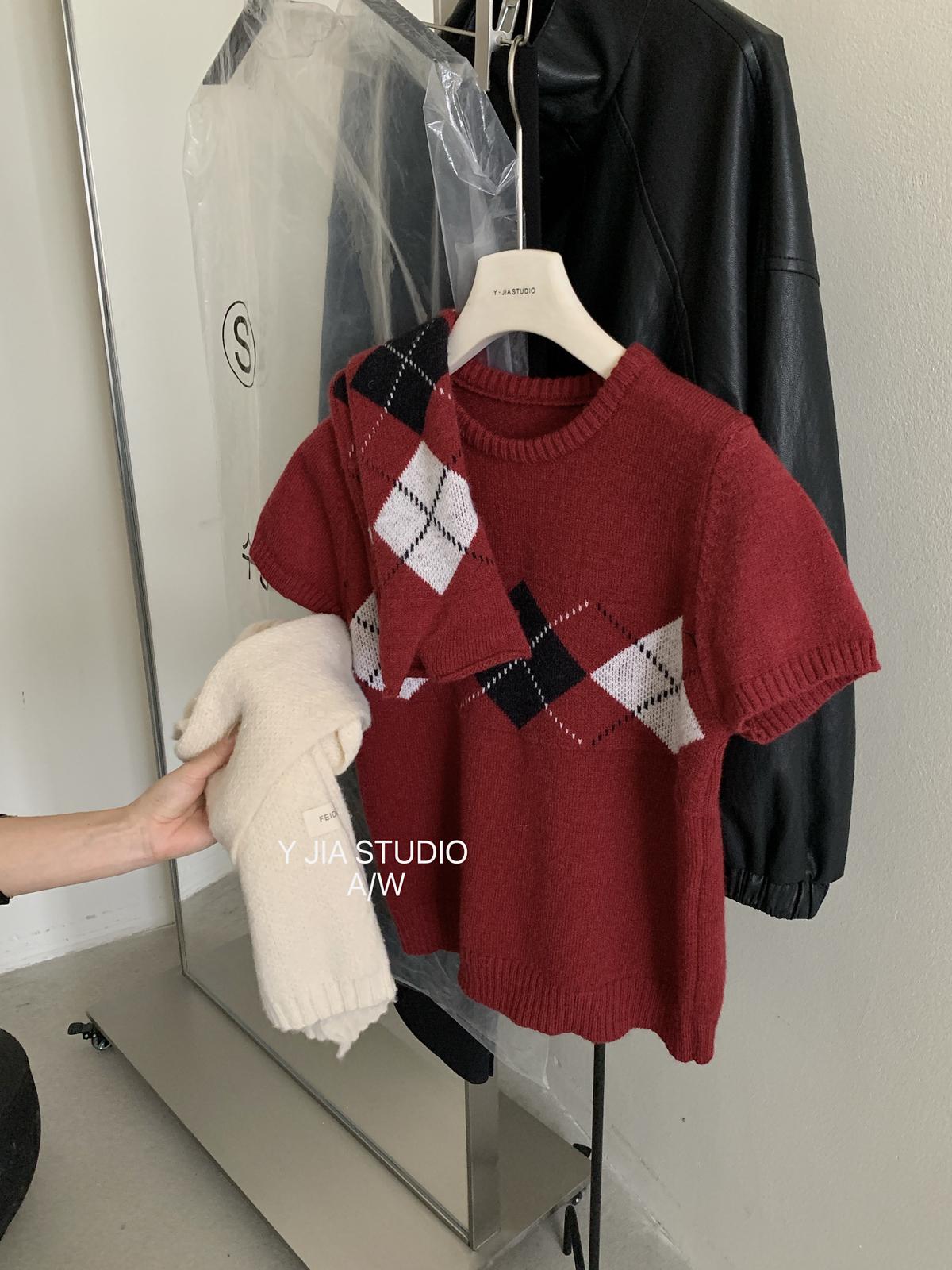 【C8095】元氣歐尼~復古菱格設計感圓領短袖保暖毛衣(配袖套)