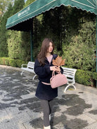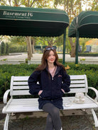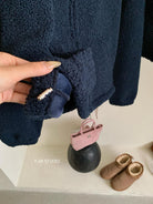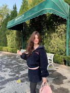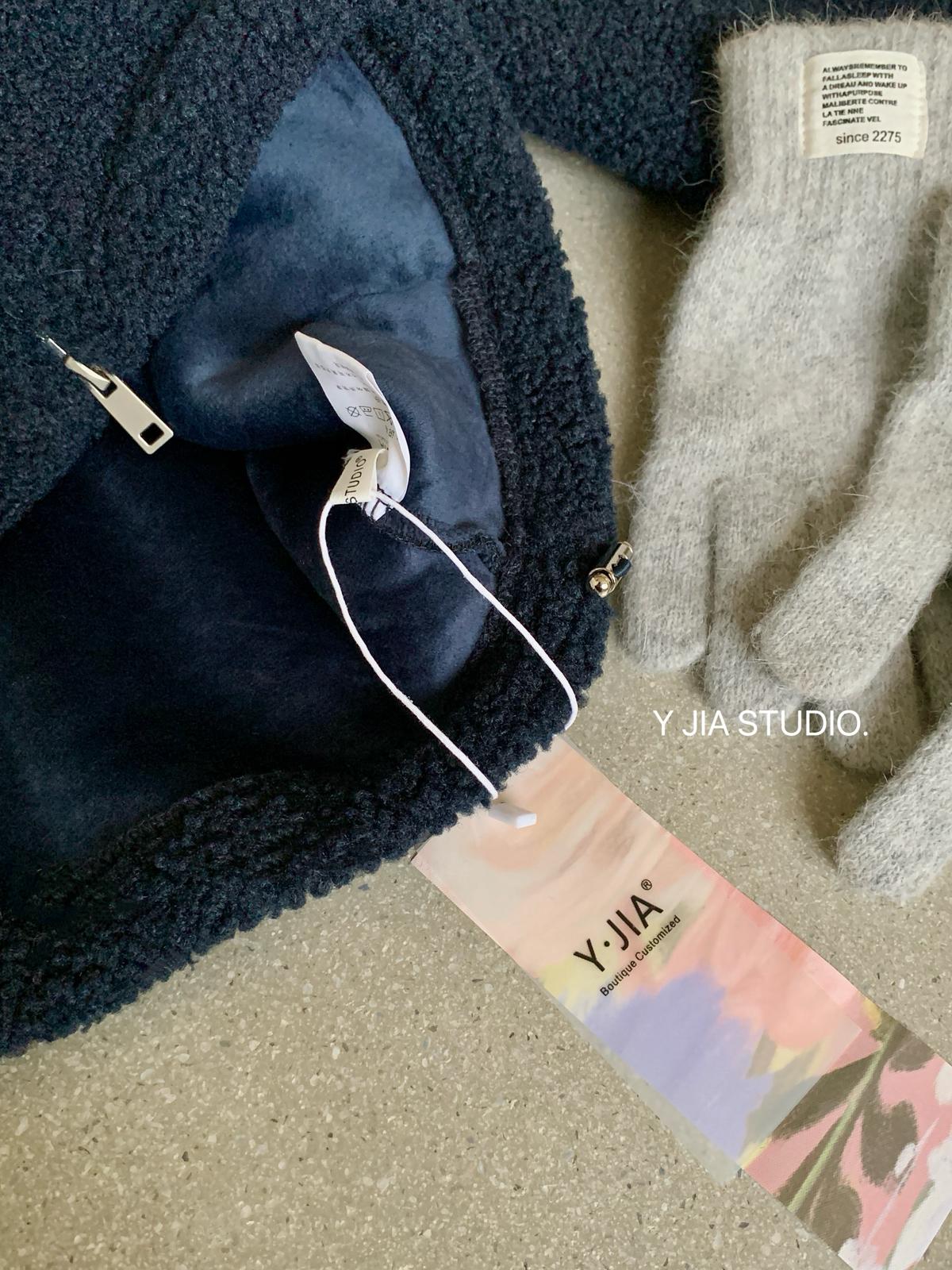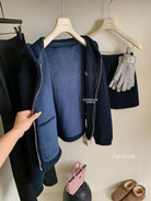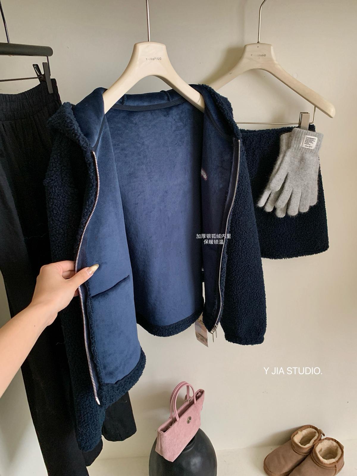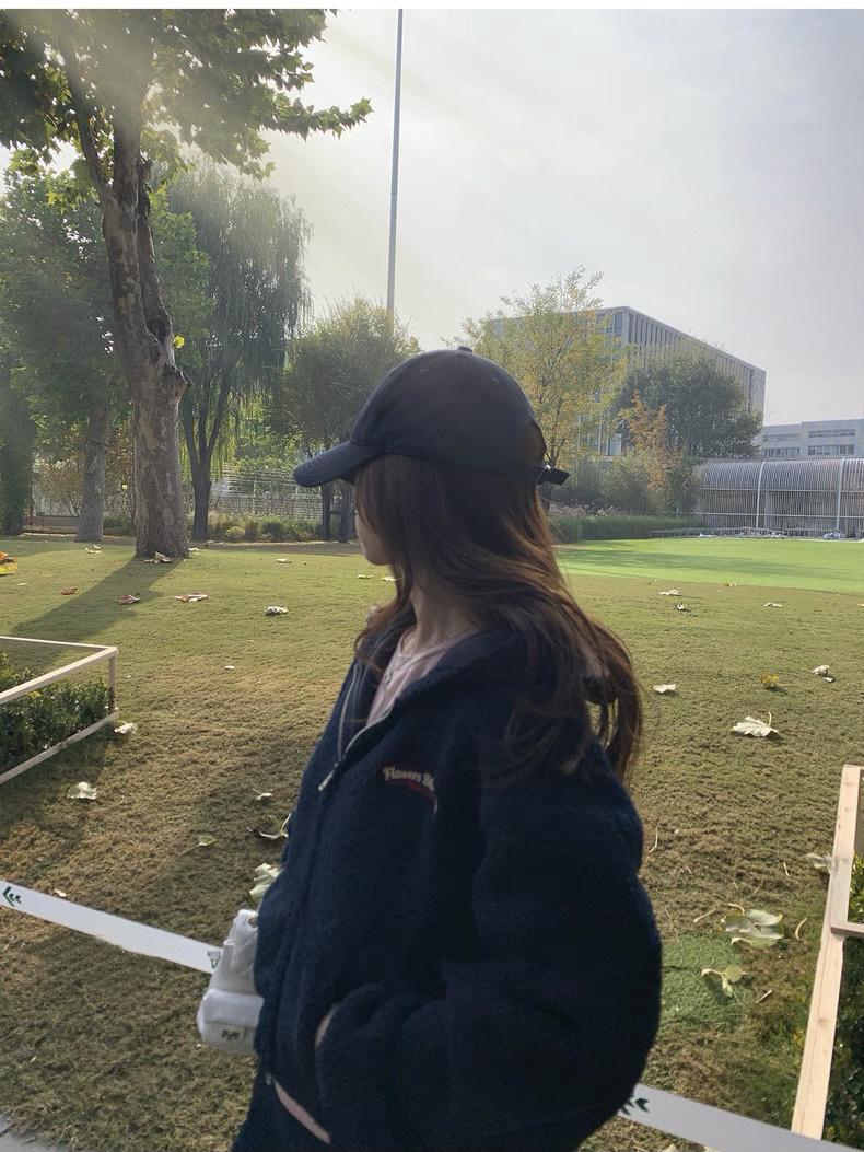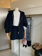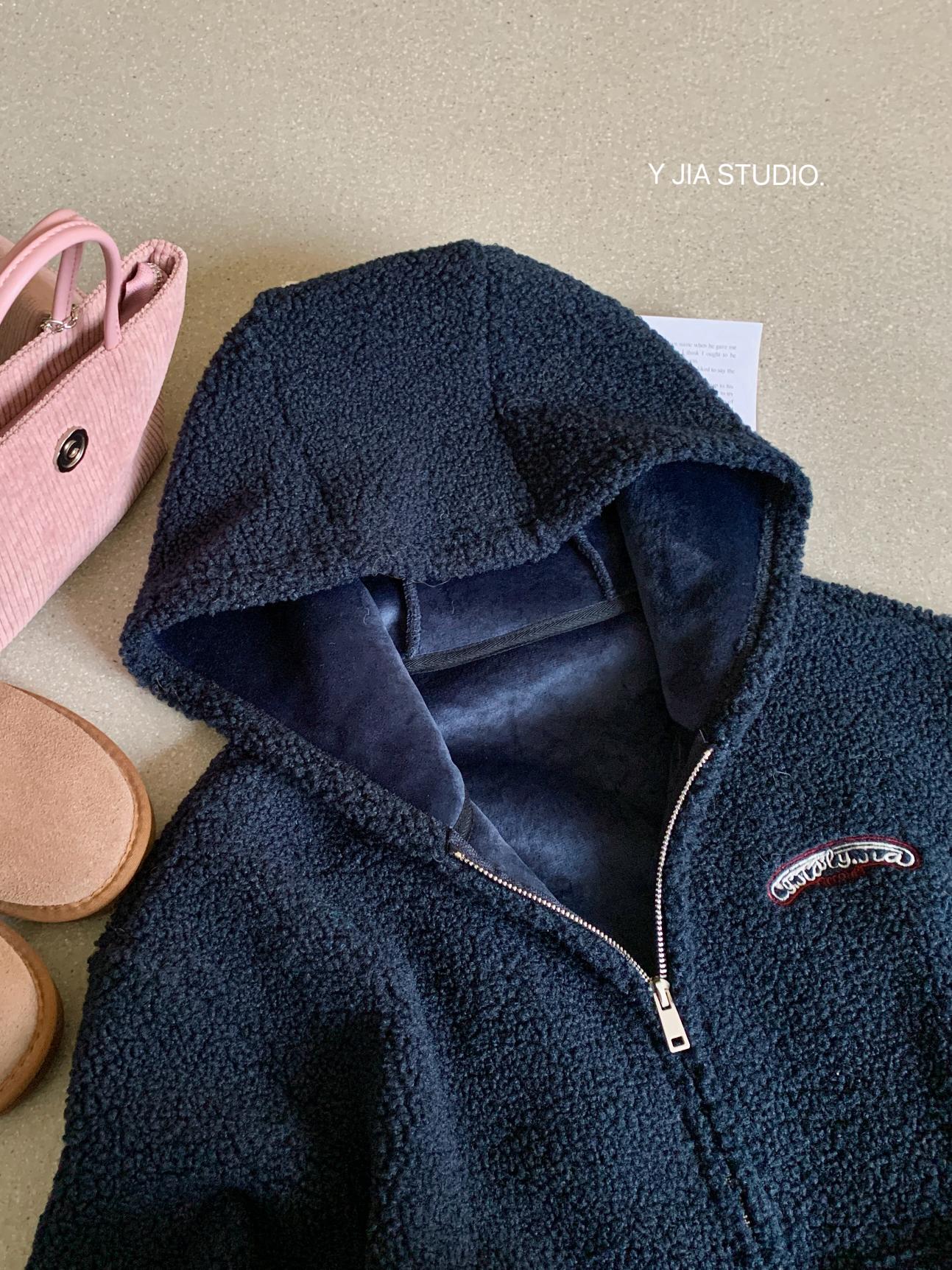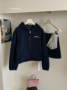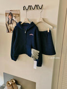【C8096】舒適區~搖粒絨刺繡連帽衛衣外套+高腰a字半身裙套裝