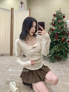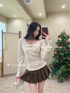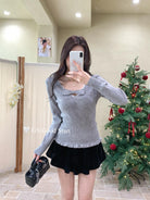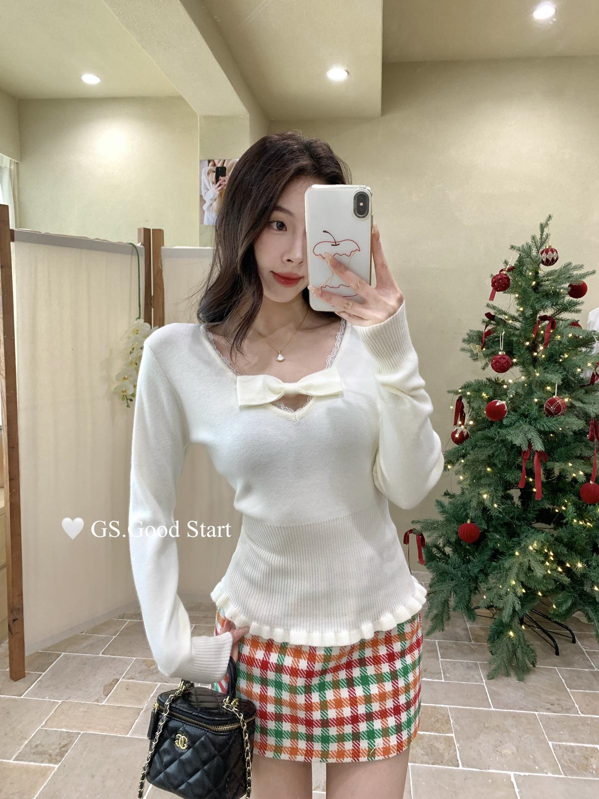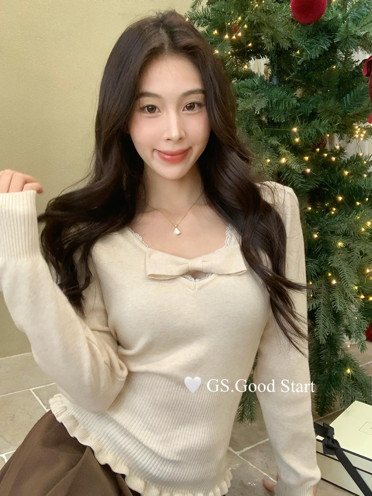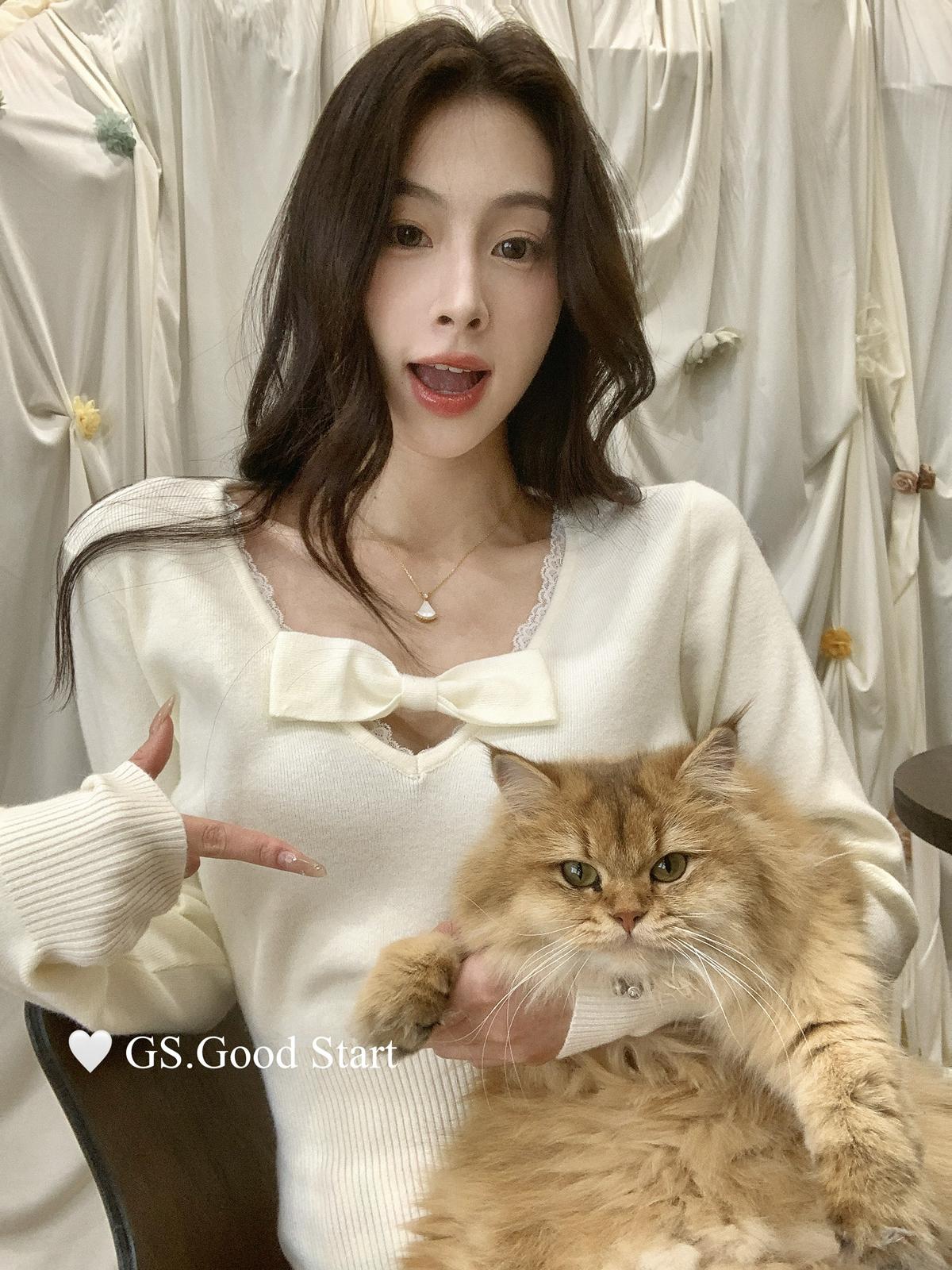 【C8101】發財款!嬌嗲十足*純欲感絕sha!秋冬甜美溫柔鏤空蕾絲針織小衫