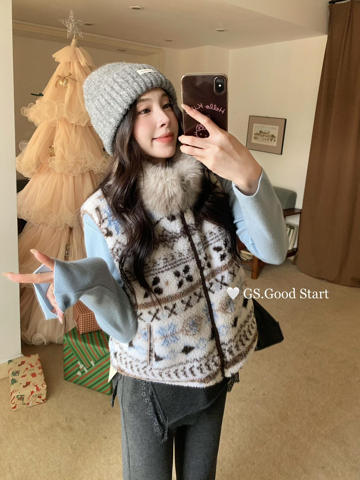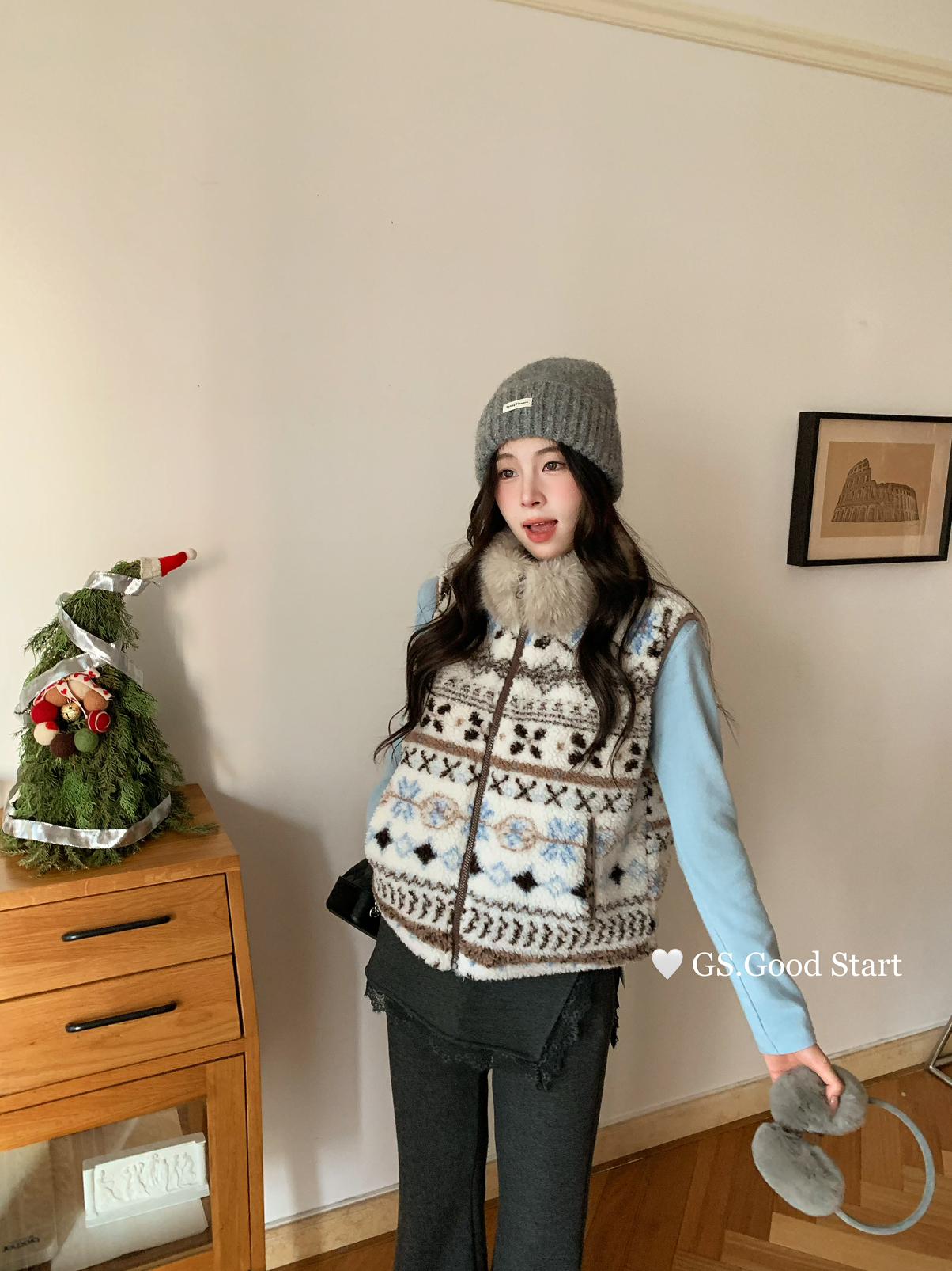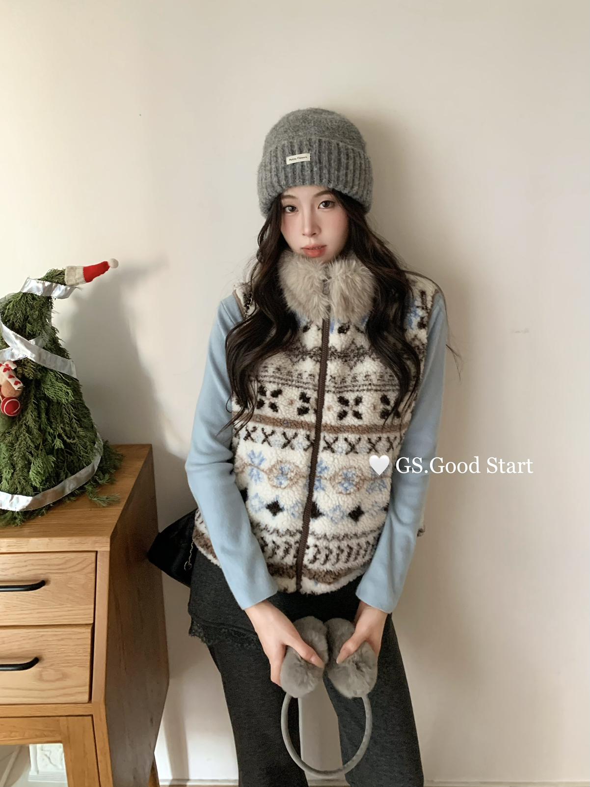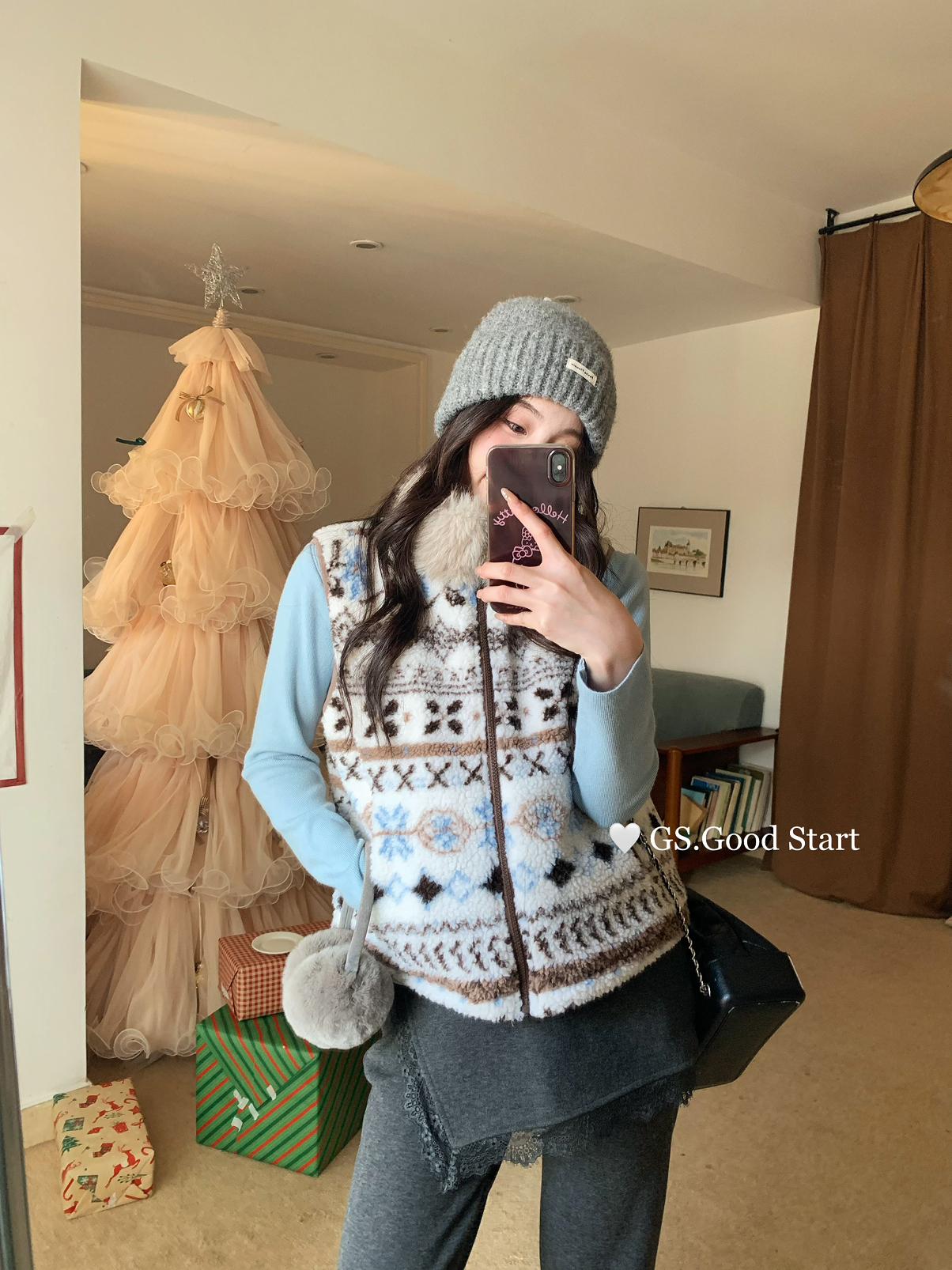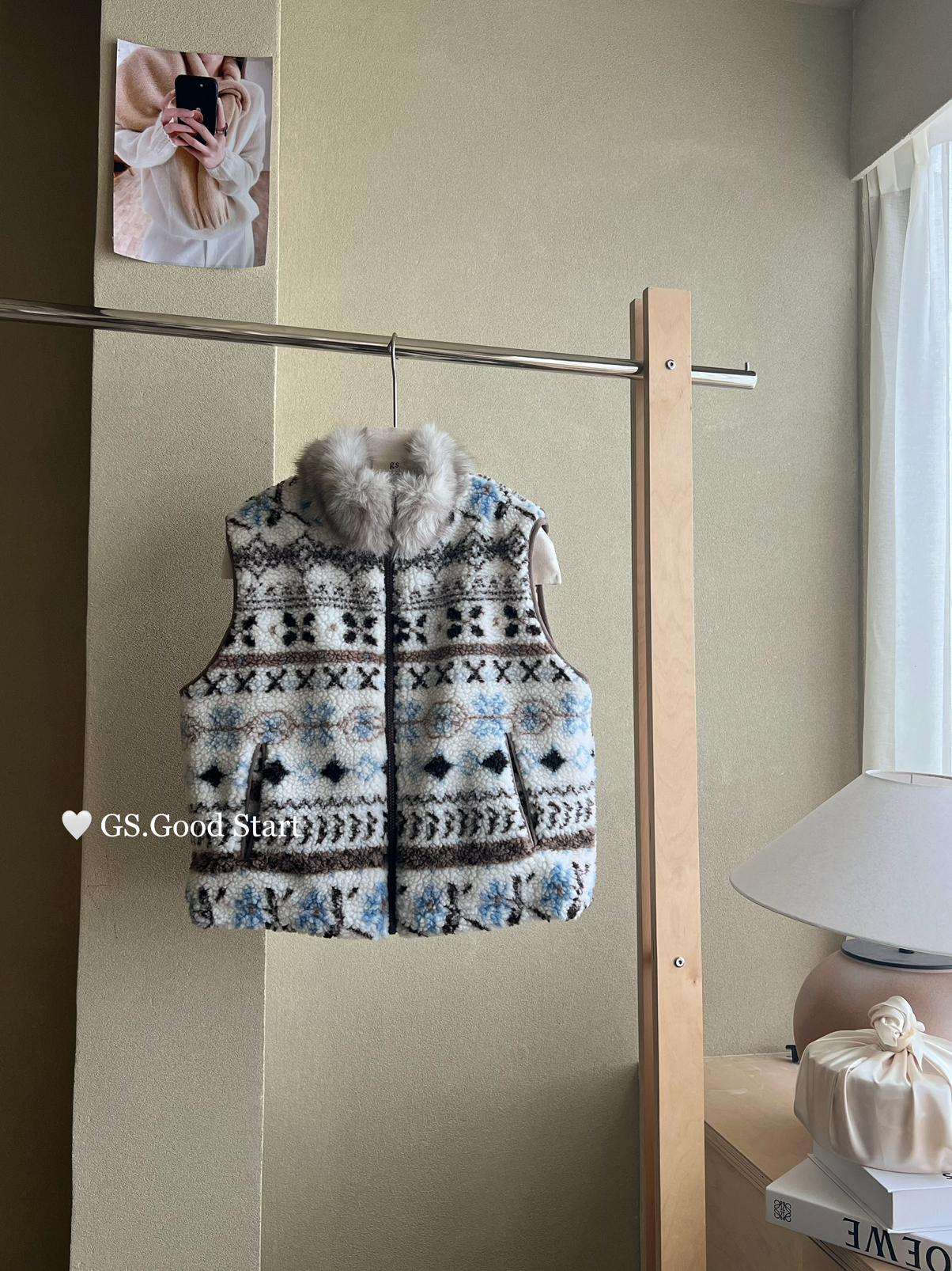 【C8102】很火的提花面料!立刻安排上~出片敲絕!甜美減齡費爾島仿羊羔毛馬甲(冬)