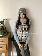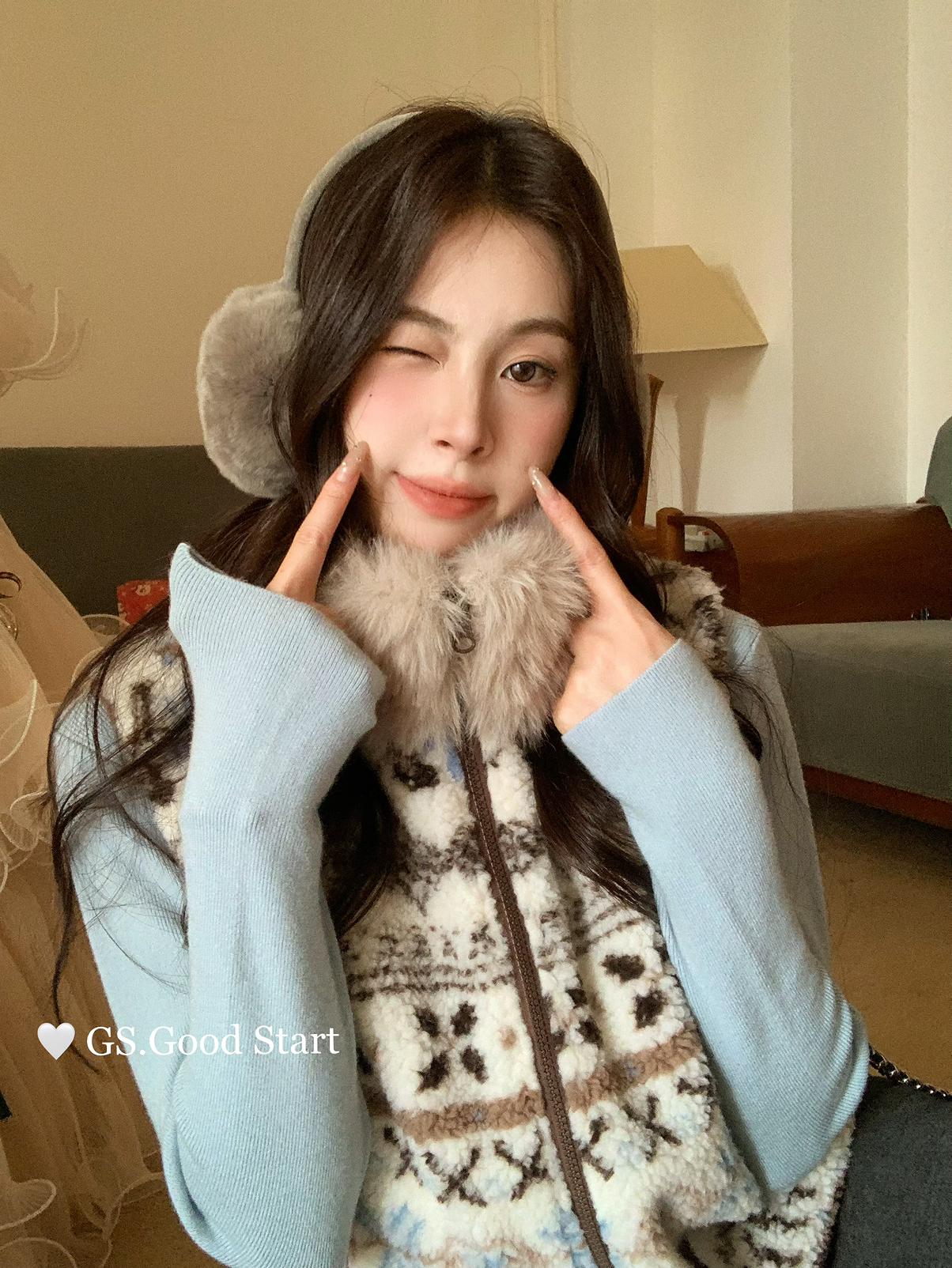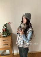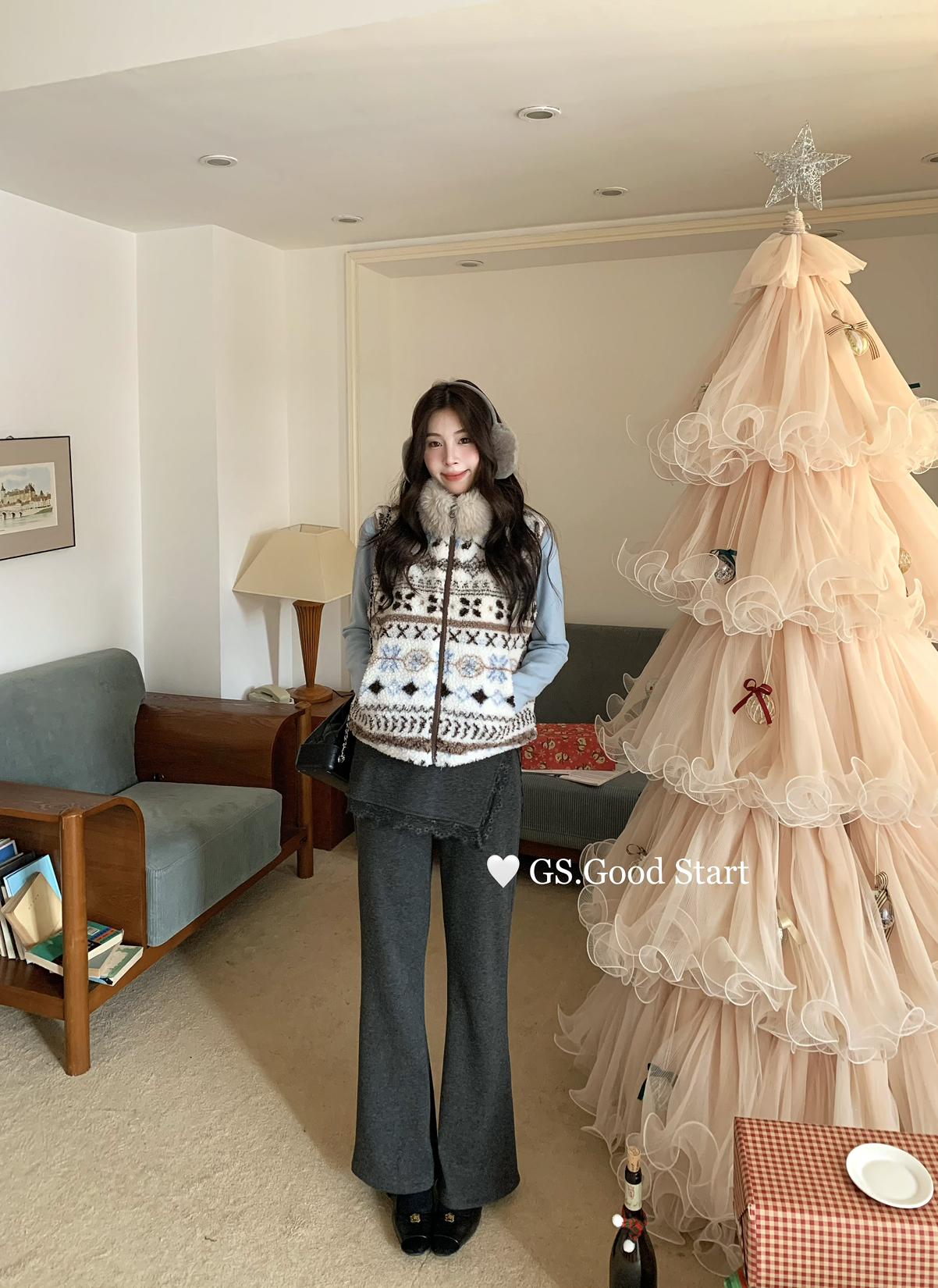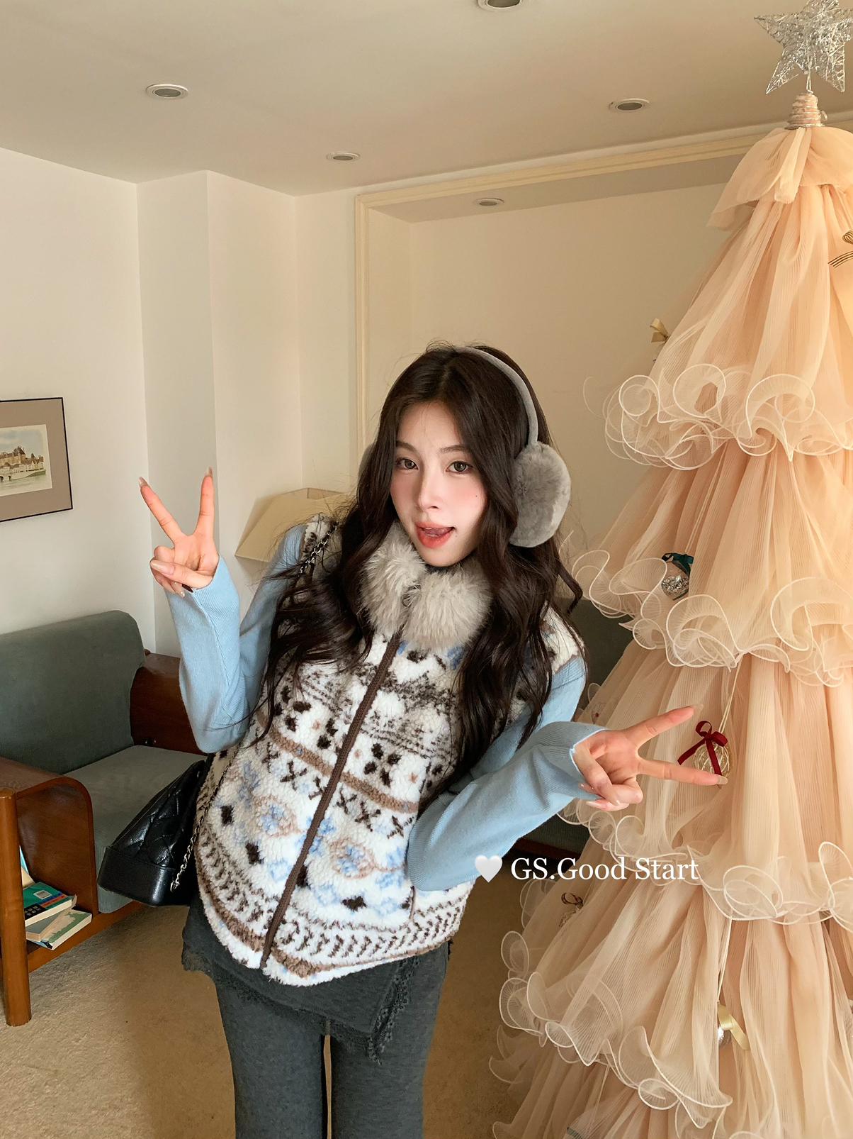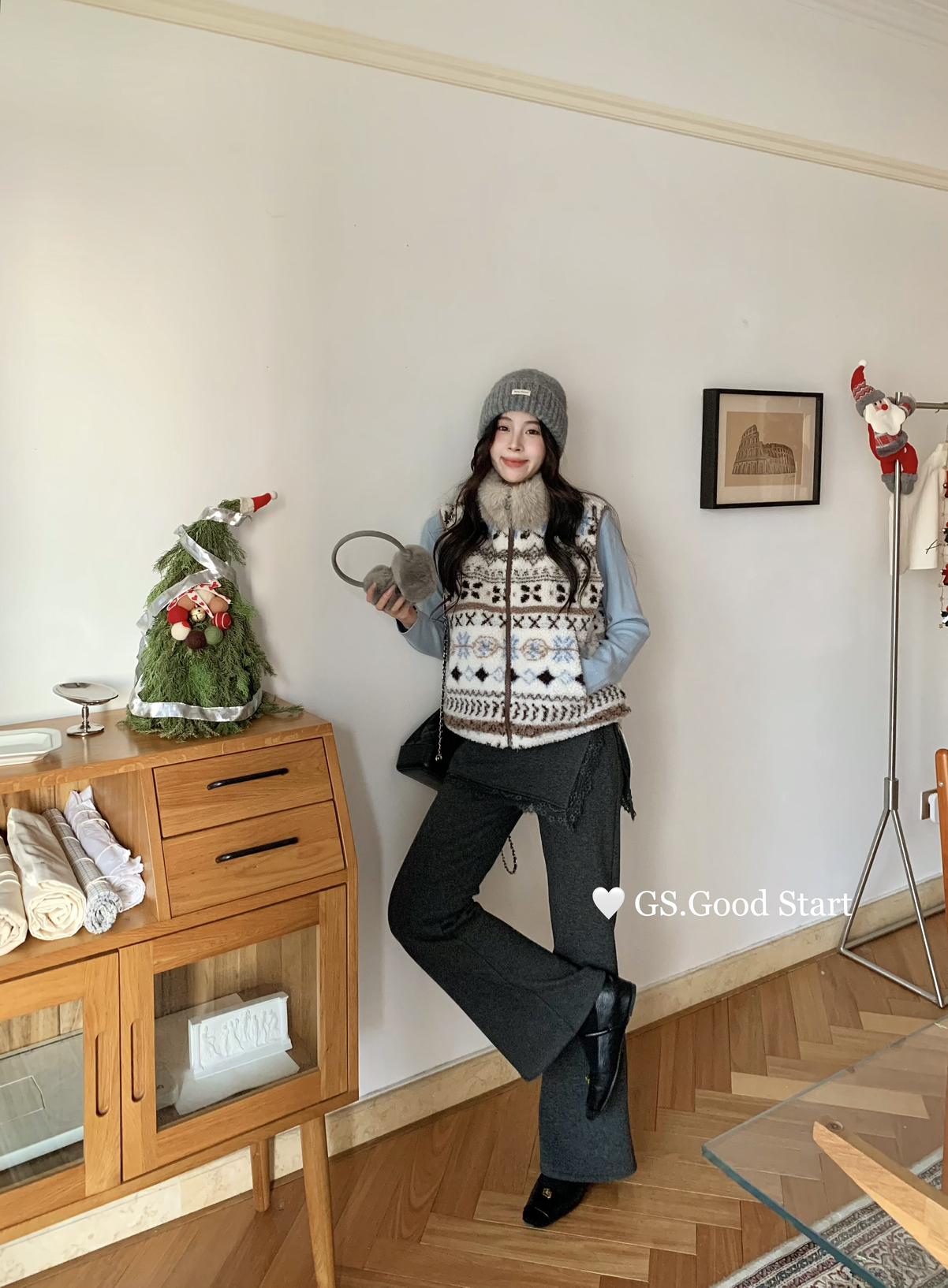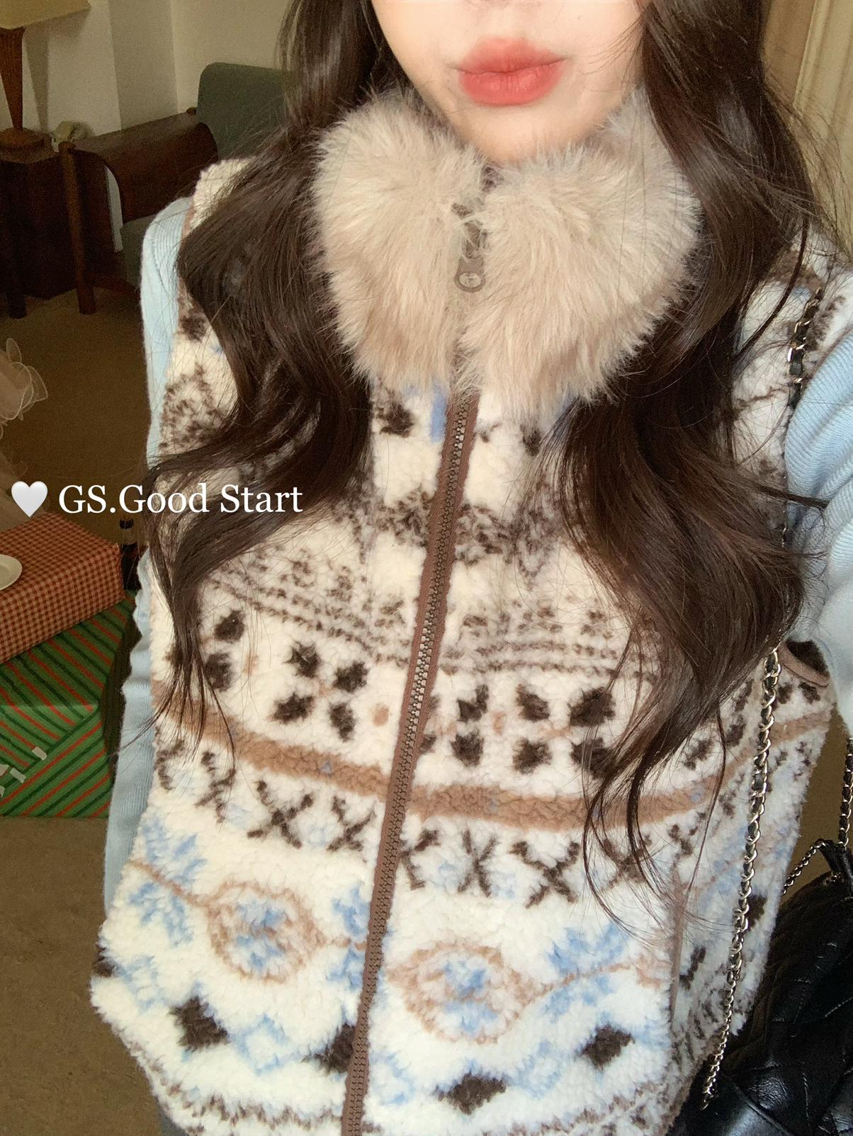 【C8102】很火的提花面料!立刻安排上~出片敲絕!甜美減齡費爾島仿羊羔毛馬甲(冬)