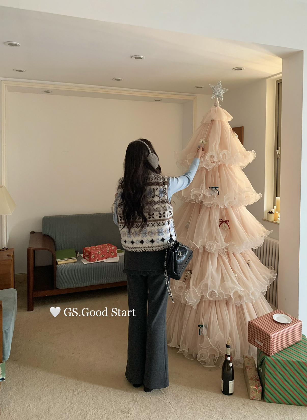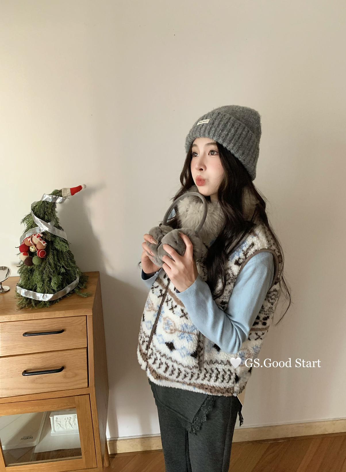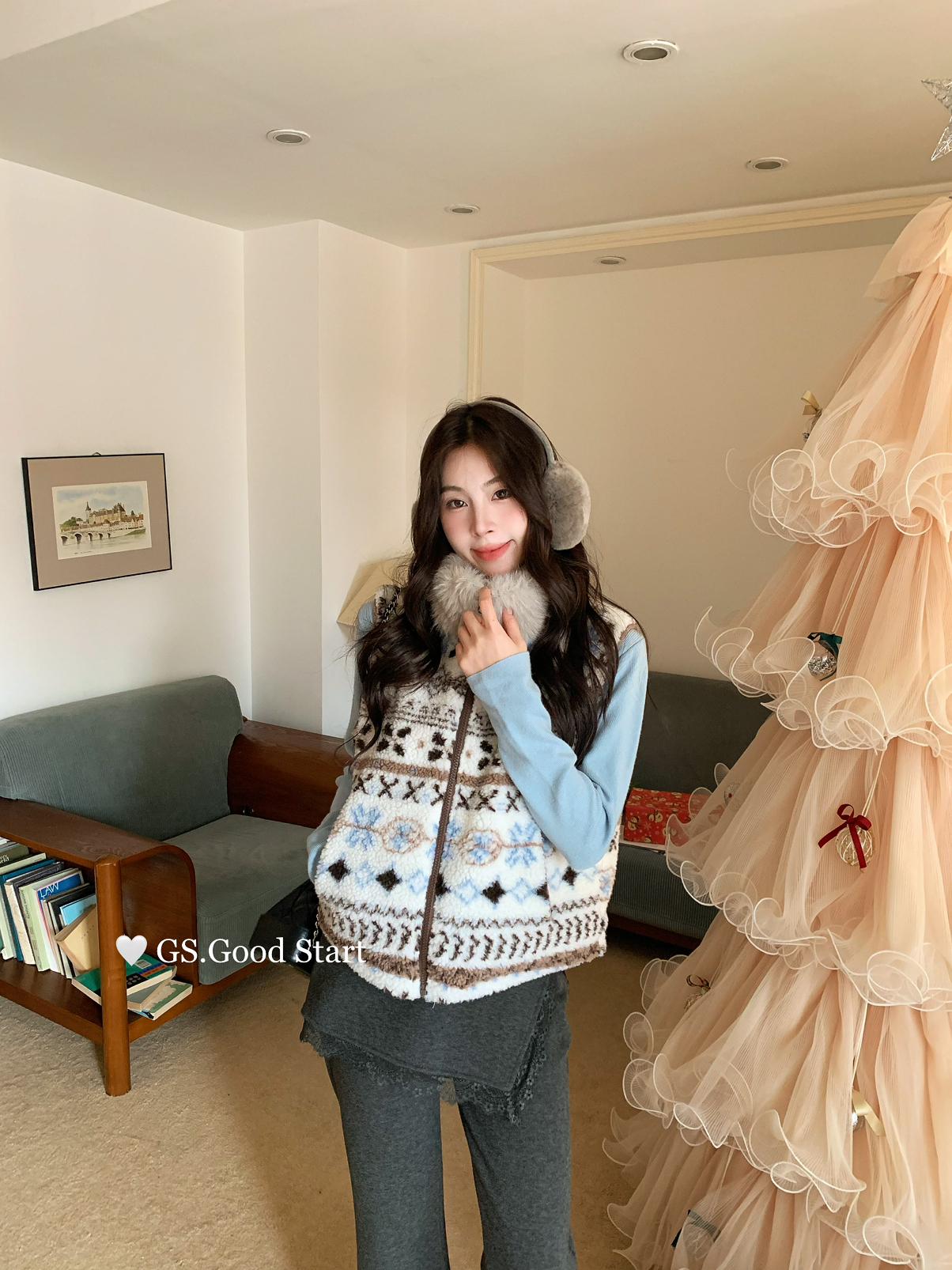 3. 【C8102】很火的提花面料!立刻安排上~出片敲絕!甜美減齡費爾島仿羊羔毛馬甲(冬)