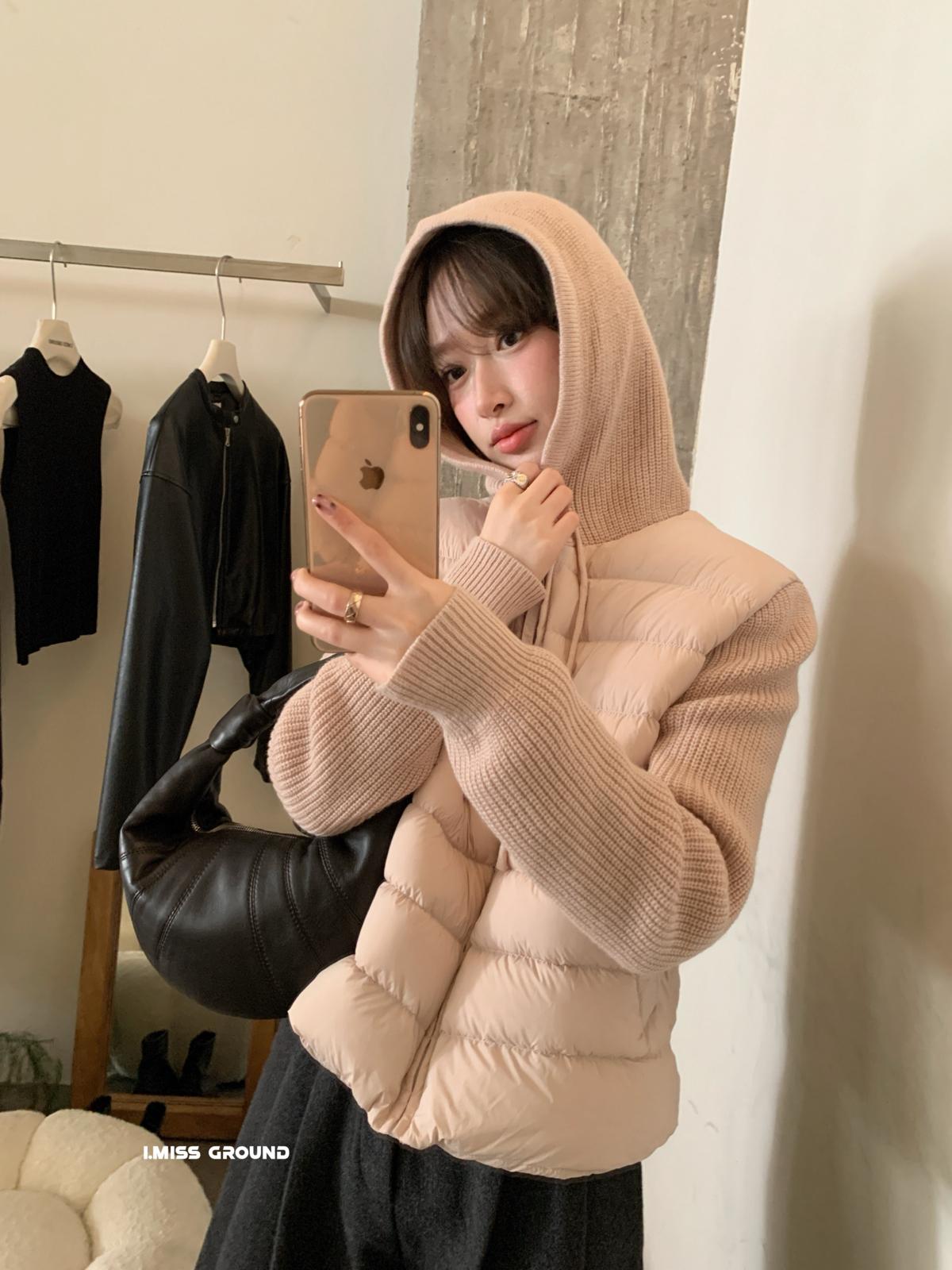 【C8103】爆款!可溯源新國標高品質泡芙感毛織拼接排骨保暖羽絨服外套