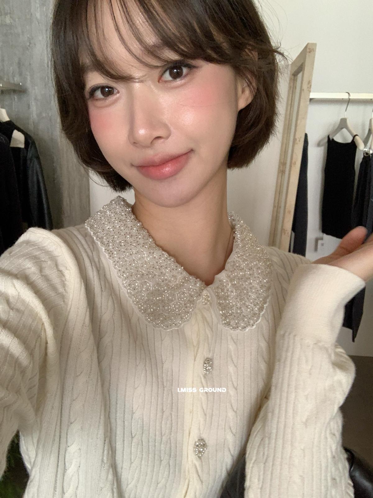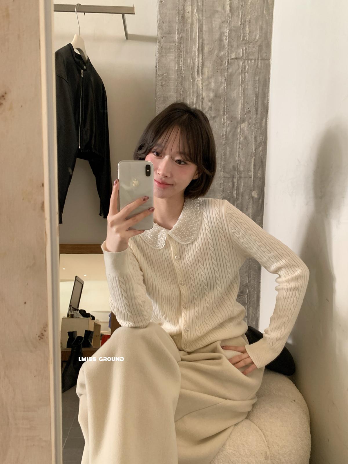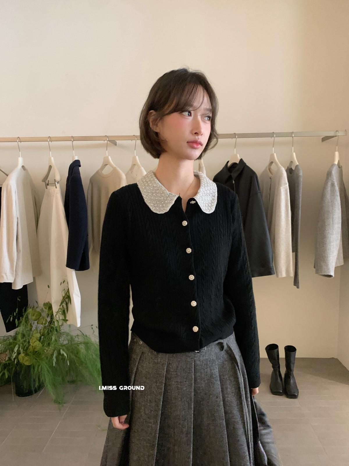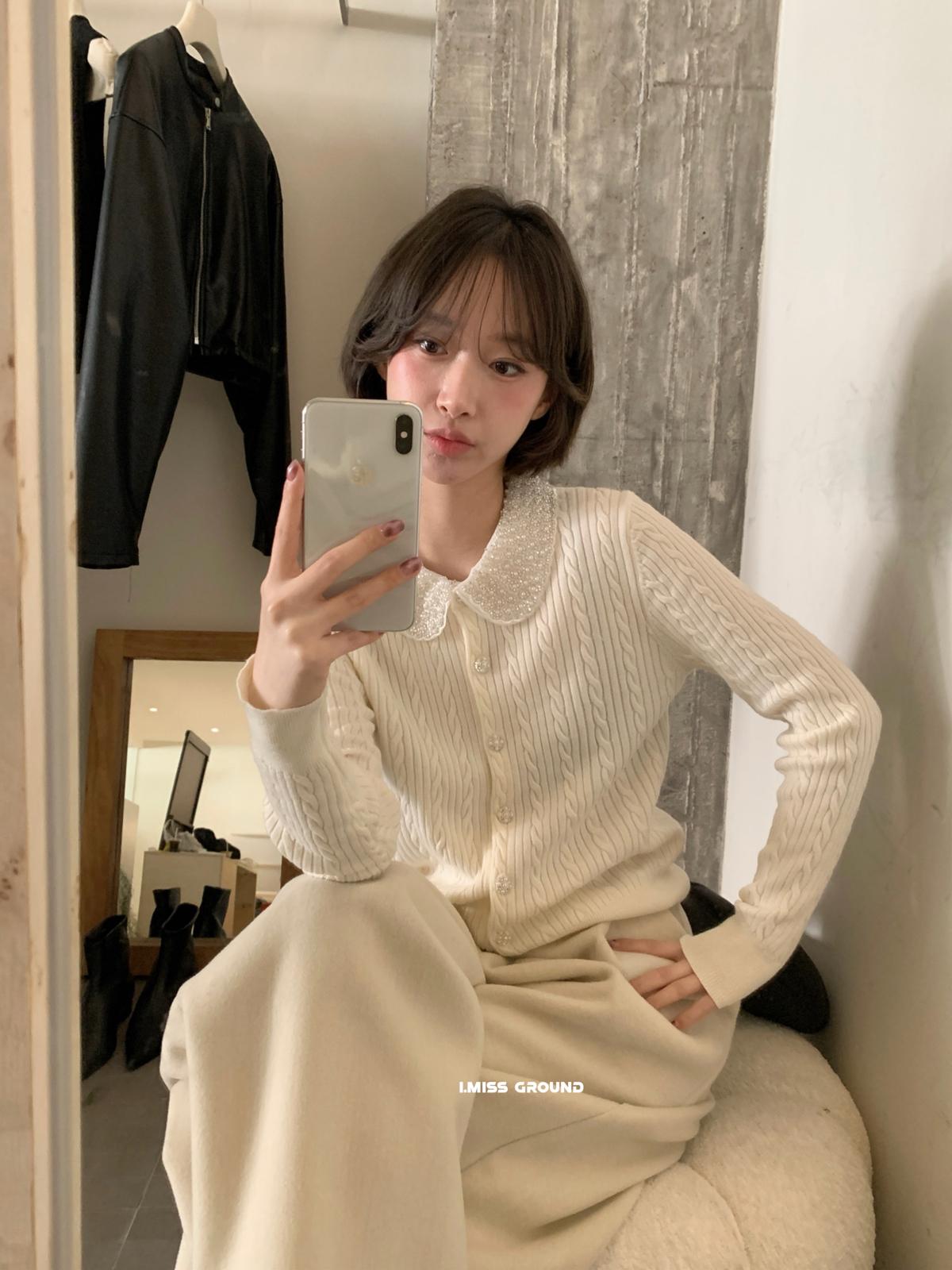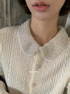 【C8107】絕美!重工珍珠領麻花羊毛針織開衫(含33%羊毛)